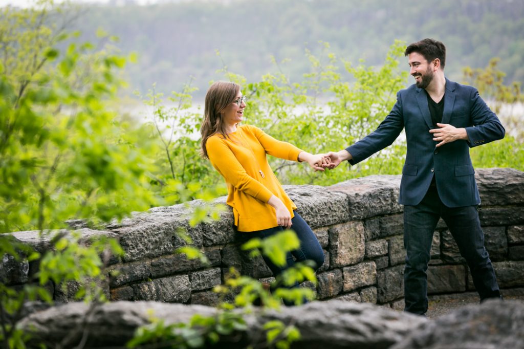 I think most of my clients can relate to Emily and Ben. They aren’t into posed photos, and are not interested in traditional, mushy demonstrations of affection. Rather, Emily and Ben are a fun loving couple with a few kisses here or there, but much more at home trying off their karate moves or high-fiving for the camera. (Reminds me a bit of Nina and Thom’s engagement session at the Brooklyn Botanic Garden, no?) Originally, the couple had not even scheduled an engagement shoot. But with their wedding day drawing near (on July 22), Emily and Ben both thought it might be a good idea to do an engagement shoot as a test run for their bride and groom portraits.