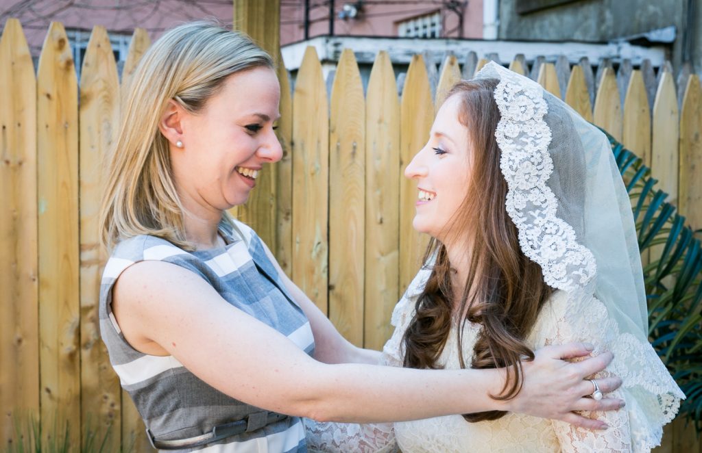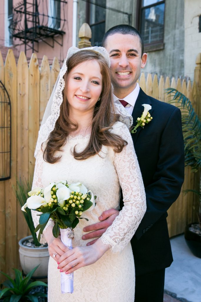 Hillary and Michael wanted their ceremony to be a relaxed, intimate affair. As such, there was no better place to hold their ceremony than their backyard. They own a brownstone in Brooklyn that has been in their family since the 1940s. Their separate ceremony was a great way to have a private exchange of vows, but still enable them to celebrate on a grand scale with friends and family.