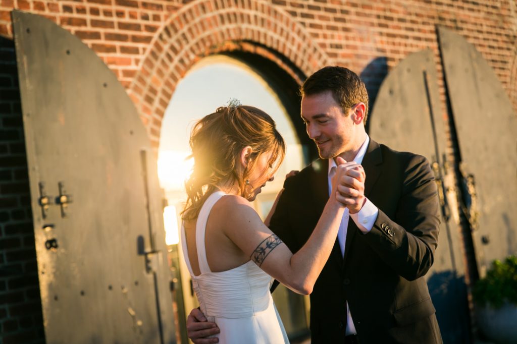 So with my words of warning out of the way, let’s get on to the good stuff. This was really a fun wedding. Devin and Lindsay planned an event that was truly unique to their tastes. The day started with a ‘first look’ in the courtyard of Atelier Roquette. From there we went to the Brooklyn Waterfront Artists Coalition pier at 499 Van Brunt Street in Red Hook. Timing could not have been more perfect as we hit the tail end of golden hour for portraits of the bride and groom. Note it is a long walk from the pier to the venue, and the couple wisely invested in an Uber to get from point A to point B.