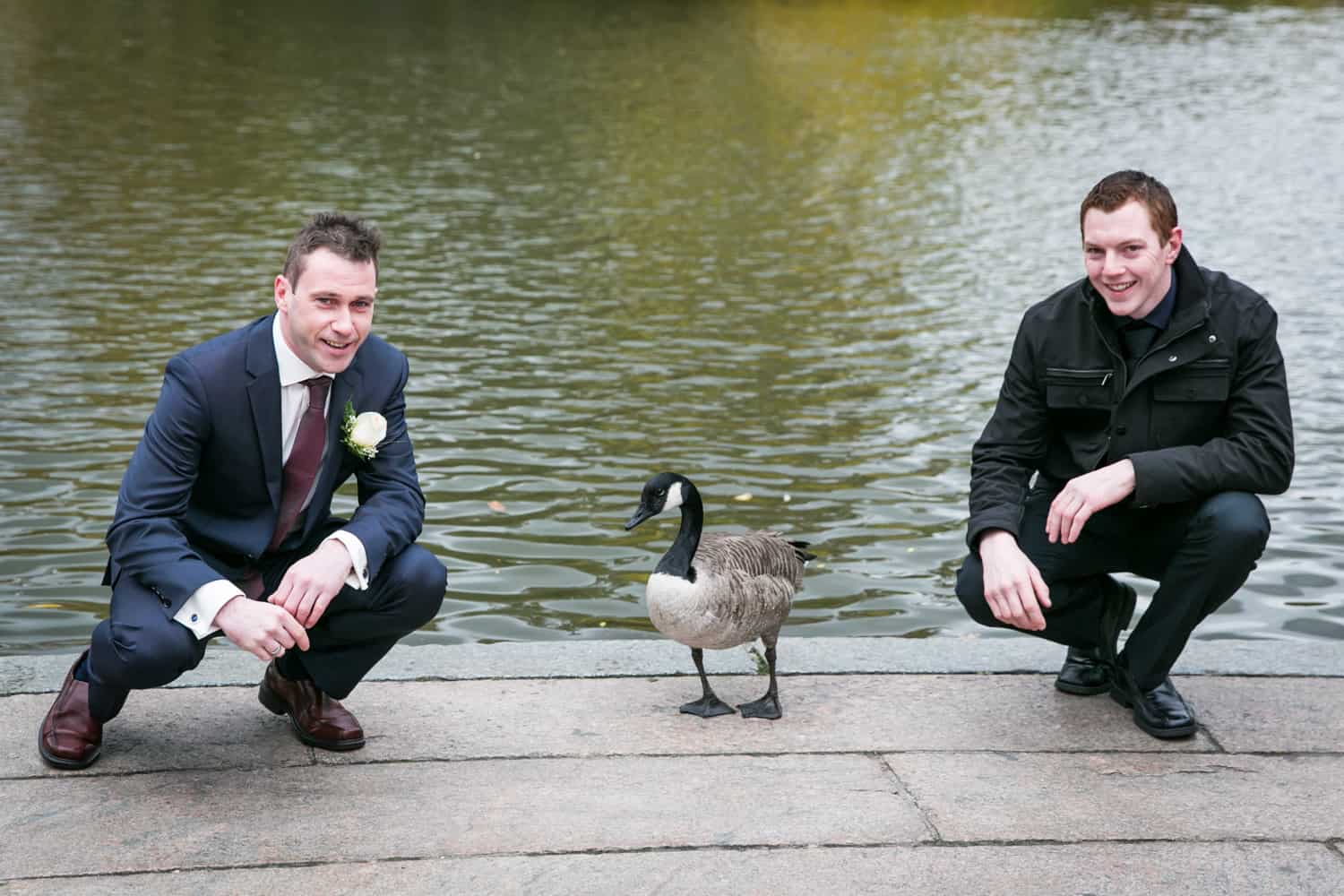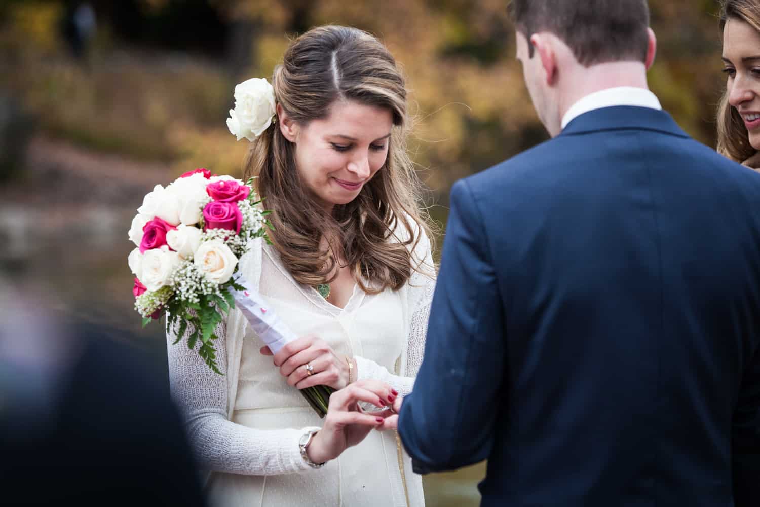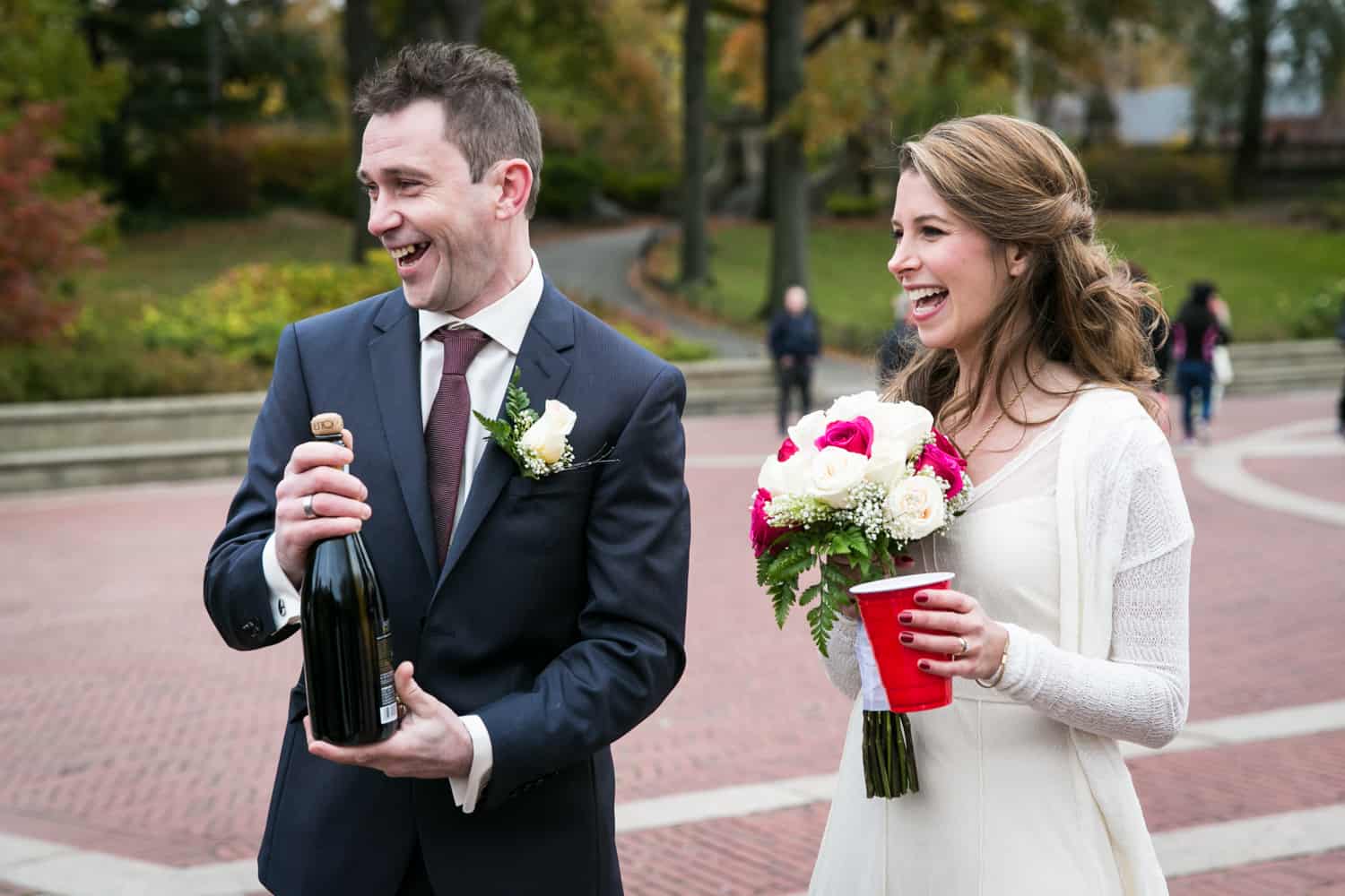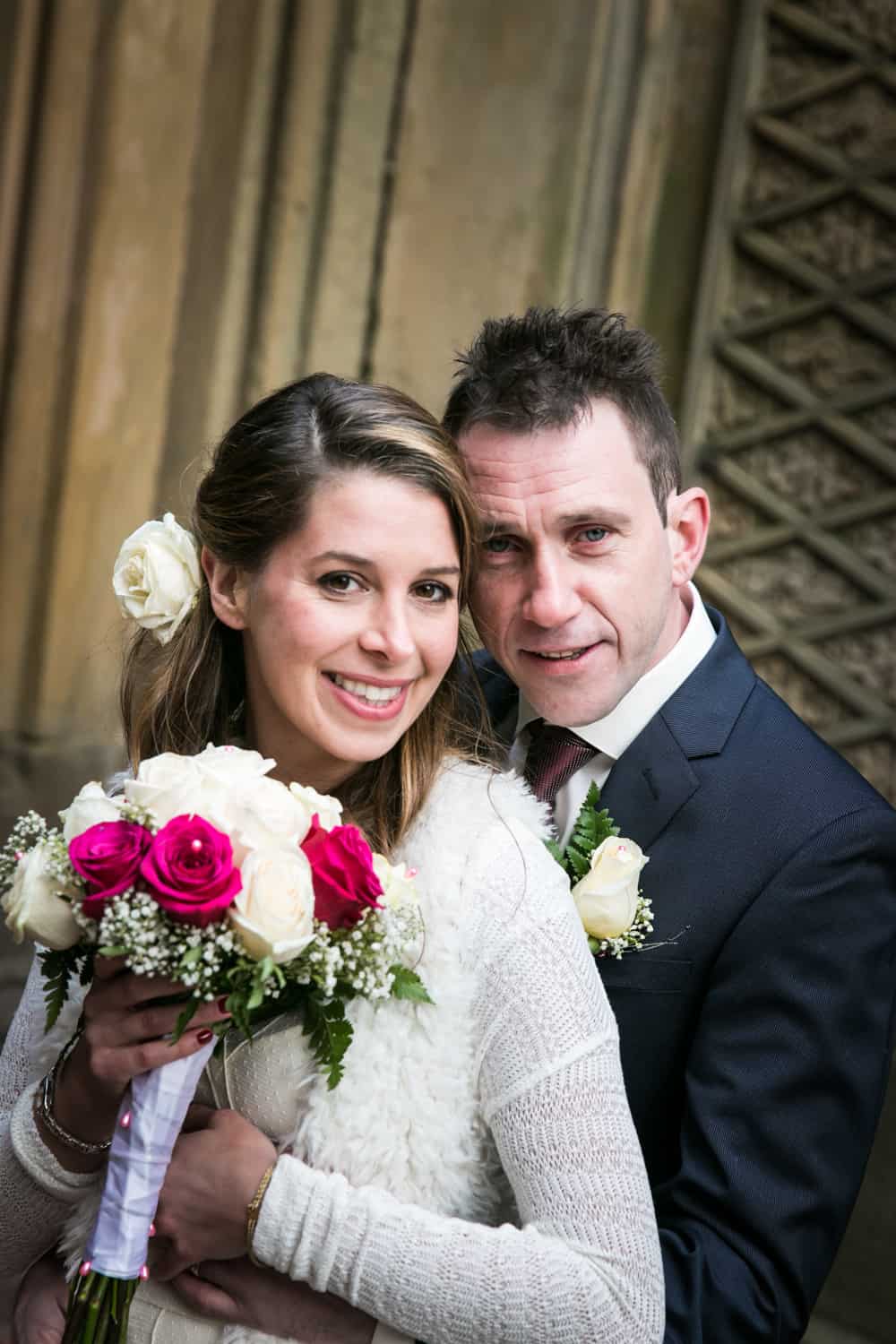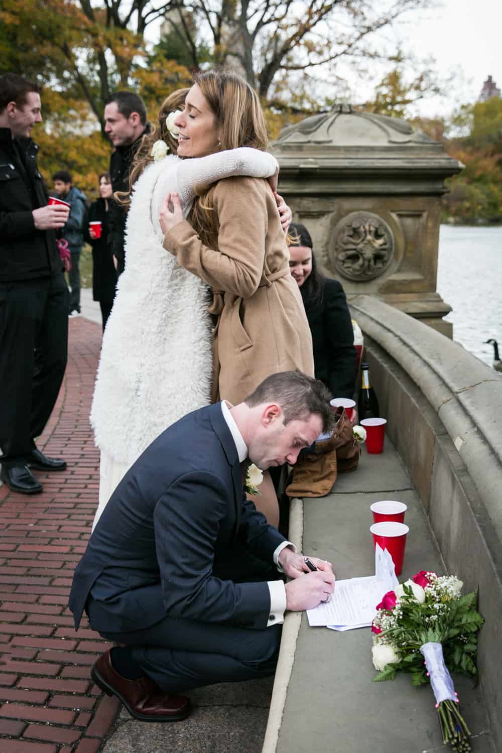 While the couple is planning a larger church ceremony in the spring, along with a party in Ireland for Jim’s clan, this was a chance for their nearest and dearest to get together and watch the couple say their ‘I do’s.’ Check out the fancy horse and carriage which brought the bride and her friends to Bethesda Terrace, as well as the Scottish bagpipers who just happened to be in the park at the same time as the wedding. A little touch of home (UK) for Jim. Congrats to Becky & Jim, and enjoy the photos!