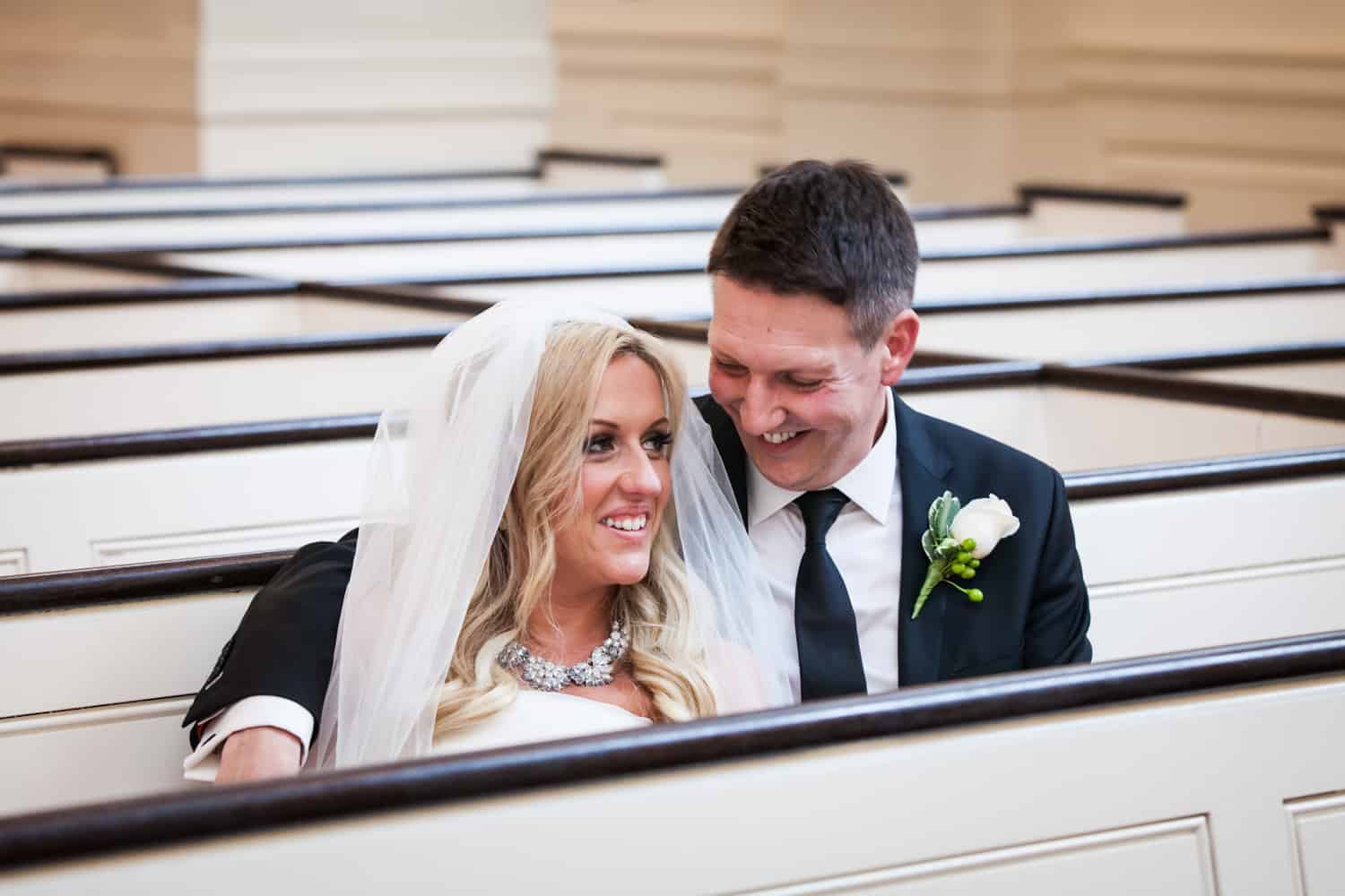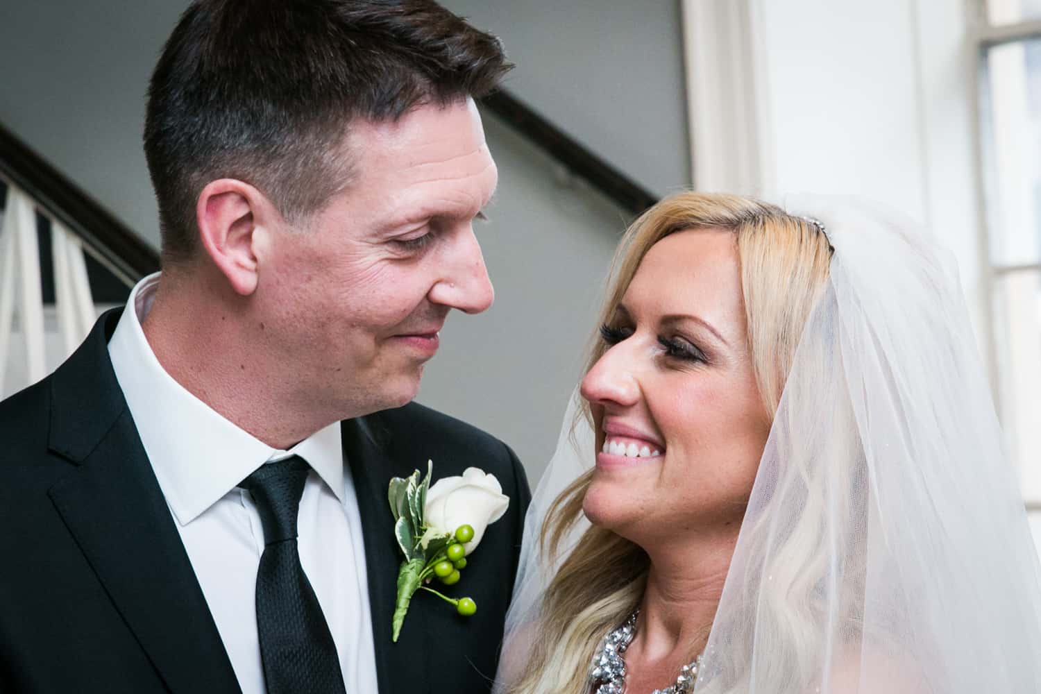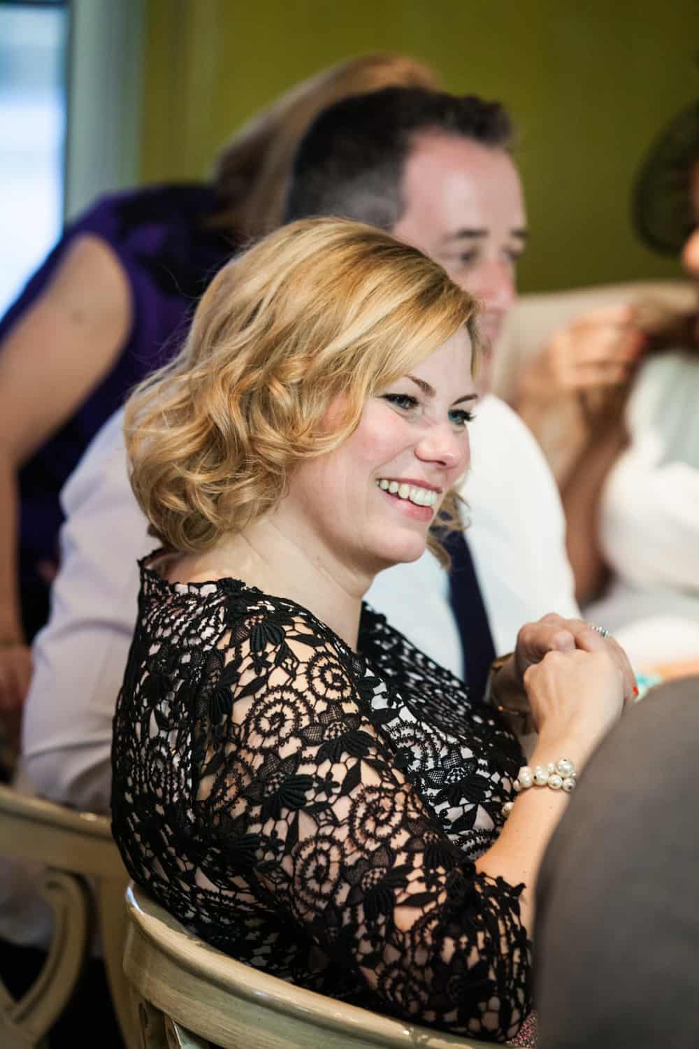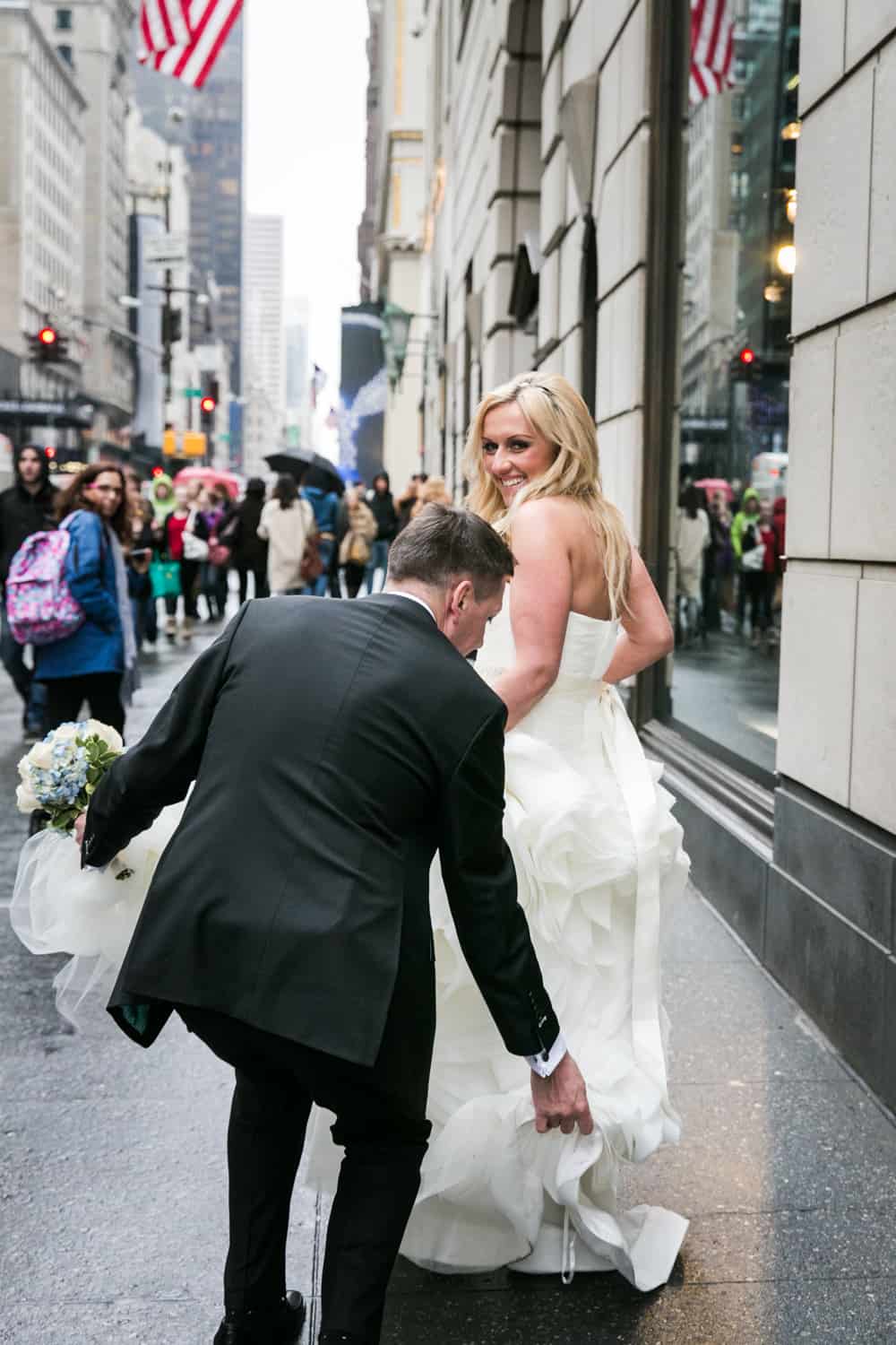 Carol and Chris’s wedding day began in classic New York fashion at the Plaza Hotel where the couple got ready. After zipping into her dress, Carol attached her veil and we headed uptown. The ceremony was held at All Souls Unitarian Church on the upper east side, and was simply beautiful. With only 22 guests, the wedding party had the sanctuary all to themselves. But why hire the church choir when you can get David Letterman’s Late Show Gospel Choir? The choir was captivating, and their voices filled the space. It was a bit like having a theater performance during the ceremony.
