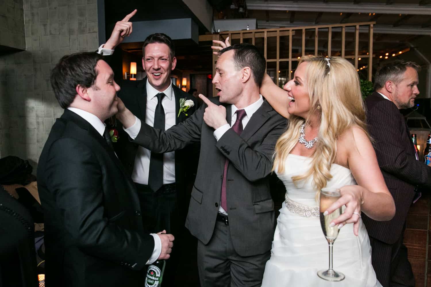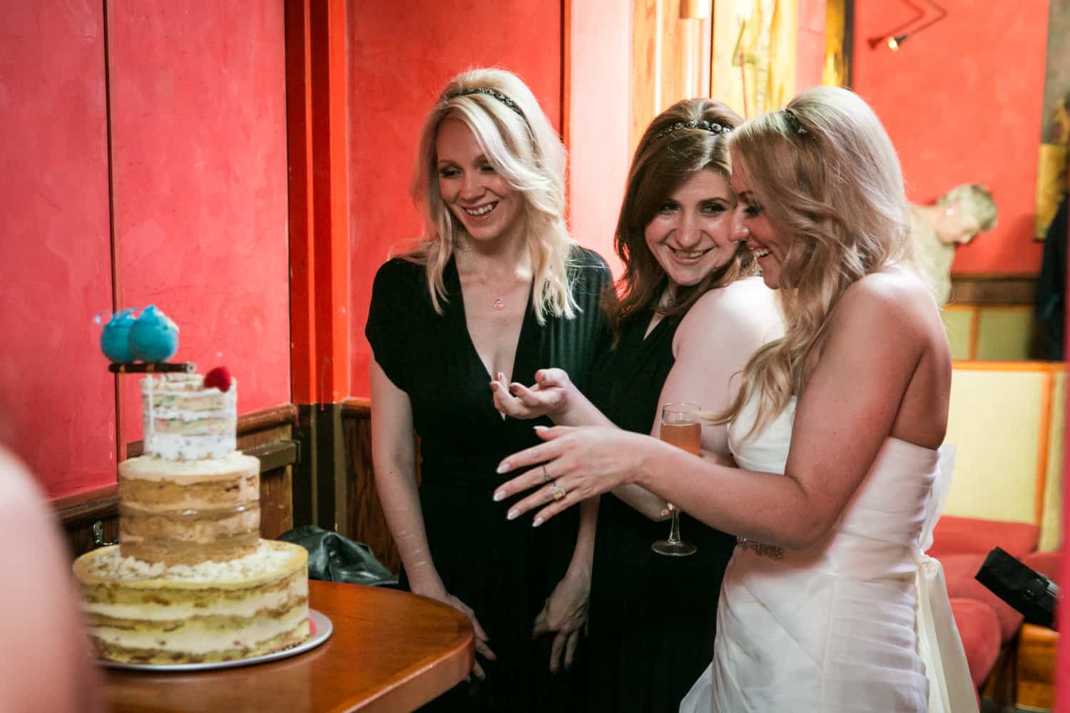 A few words of advice as an outside observer of this terrific event. First, definitely plan your wedding so that it reflects your taste. If you are not a big cake kind of girl, then go for pie, cupcakes, or whatever floats your boat. You can do traditional things in an non-traditional manner. Second, moving the party from place to place is a great way to keep the energy alive at your party. For the move from Bergdorf Goodman to the two after parties, Carol and Chris provided a party bus to get everyone from point A to point B. If you have older family members going with you or people from out of town who don’t know their way around, providing transportation is a must. Finally, keeping the party small enabled Carol and Chris to make their wedding dreams come true within budget. Having a guest list of 35 or more would have made this wedding impossible from both a financial and logistical point of view. Think small and mobile for the ultimate party.