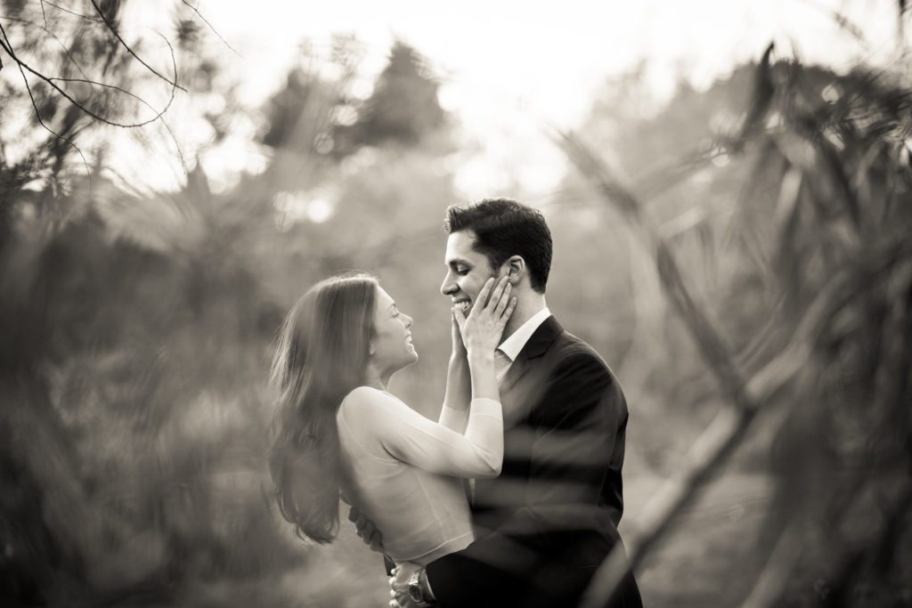 When I am taking a photo at a 200mm focal length, I need to back up from my subject. Waaaaaay back from my subject. When I’m shooting engagement portraits, this can actually work in my favor. Too often it’s difficult to capture a natural expression because unconsciously the couple feels like I have invaded their personal space. When you notice the camera, you act differently: either hamming it up, or freezing up. (I personally become stiff as a board.) So by putting more distance between my subject and me, it becomes easier to forget about the camera.