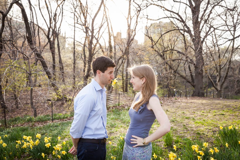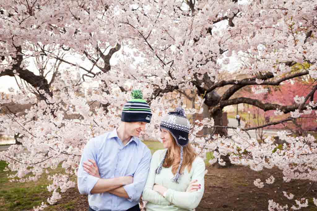 We started their adventure at Bow Bridge, then walked along to the Ladies Pavilion. (Jason and Julia are top notch rock skippers, by the way.) After photos in front of Turtle Pond and the Belvedere Castle, we ended with some stunning cherry blossom shots that show off the trees (and this lovely couple) at their best. And while I would never openly advocate picking the flowers, I think we all can agree the daffodil here was put to good (photographic) use. Enjoy the photos!