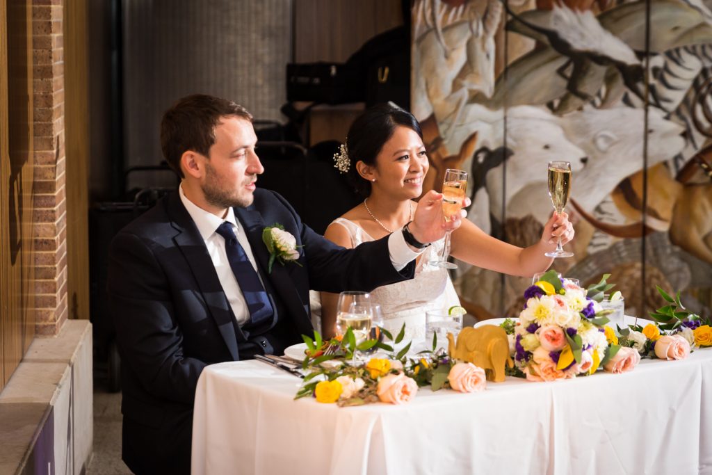 Guests enjoyed a cocktail hour tour through the Madagascar exhibit, followed by hors d’oeuvres with the sea lions. For the reception, guests were given precious little succulents in owl-shaped pots. I tried out a new lighting set up for Nicole and Oren’s wedding, and I have to say, the extra lighting added an additional spark to the dance floor photos. For this dance-loving crowd, it was just the extra pizzazz Nicole and Oren’s wedding photos needed.
