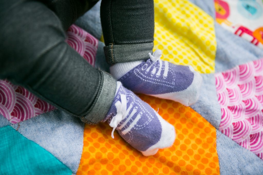 Simple is best. As Miriam explained to me, she selected two outfits for our shoot by thinking about what would be easiest on little Ella. Ella has a closet full of cute outfits, and Miriam was tempted to bring all of them, but this would have meant tiring out Ella sooner. An irritated baby is not a smiley baby, and so Miriam elected to pare down the wardrobe selection to two precious outfits.