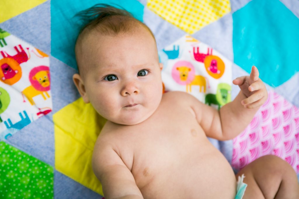 For your shoot, know what works and what doesn’t for your baby. Have a range of movement options (trying to crawl, reaching for things, kicking feet, etc.) available and make these known to your photographer.