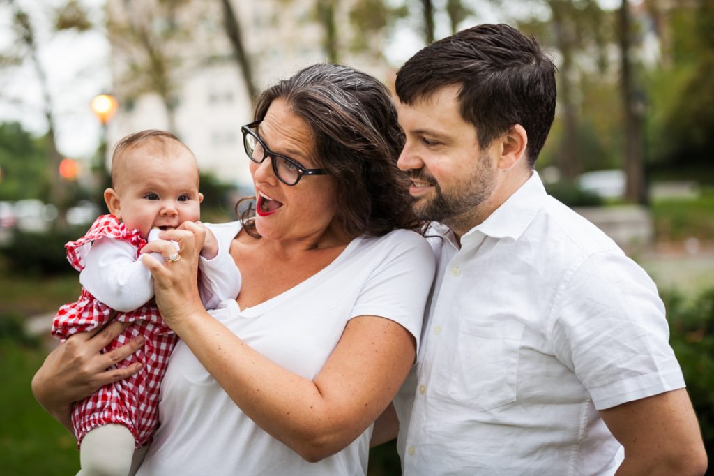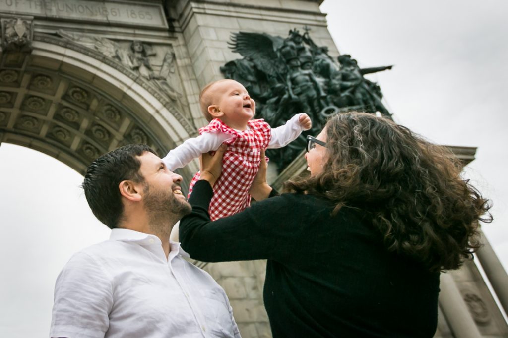 Happy baby equals an easy photo shoot and Saturday morning’s family portrait at Grand Army Plaza with Miriam, Jon, and baby Ella went off without a hitch. Want to know my top portrait tips as a Brooklyn baby photographer? Then read on in today’s blog post!