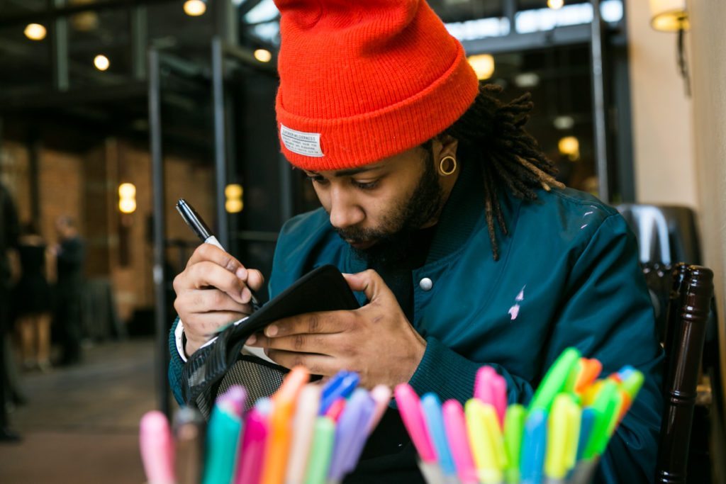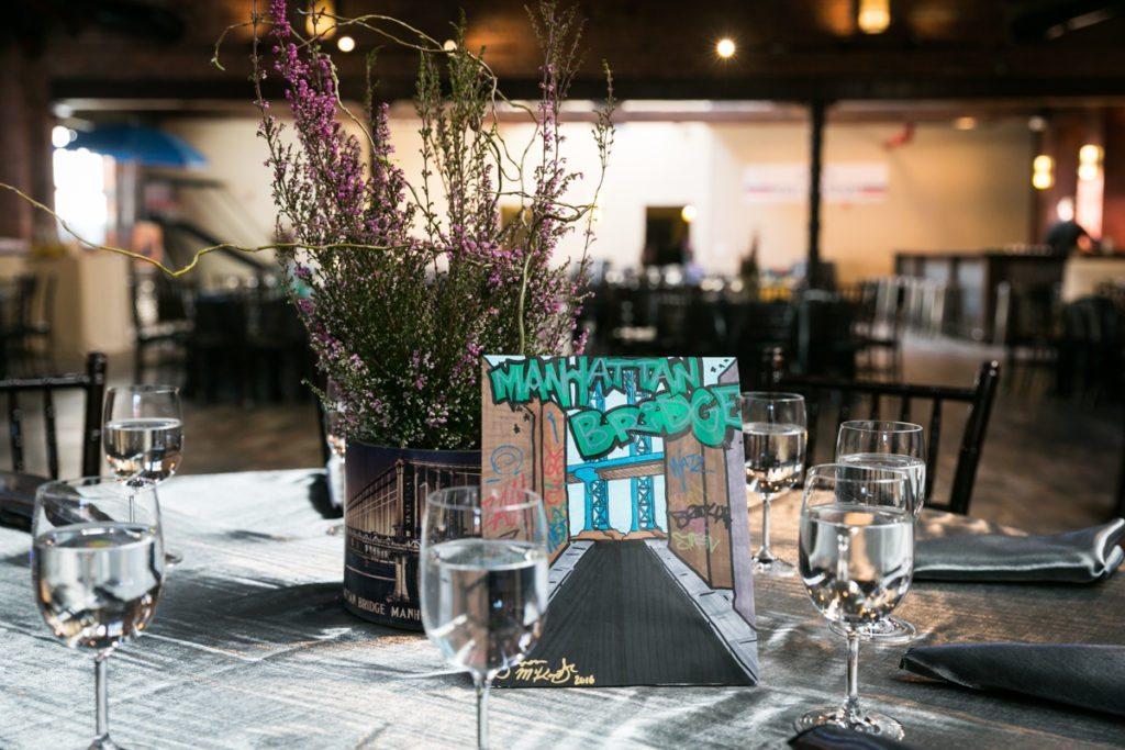 Guests were given New York landmark table assignments, and the centerpieces were all handmade by graffiti artist, Steven McKenzie. Steven also created all of the trucker hats given to all of the guests as they left the party. The colorful designs were truly unique, and were a great way to tie in the theme of the event.