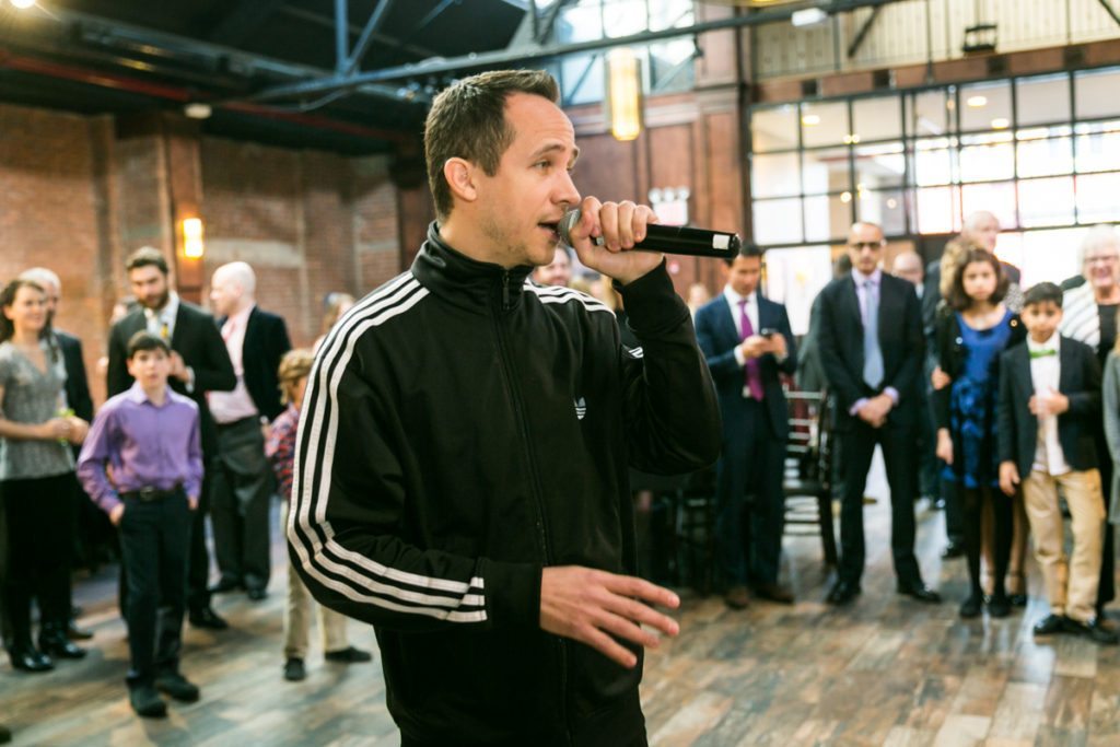 Events for the day included a basketball hoop set up in the back corner of the space, and plenty of games coordinated by the DJs for the party, Mikey and Marc. The DJs were fantastic. They played great music, seemed to really enjoy interacting with the kids, and got the guests on their feet and dancing. Marc even wrote and performed a surprise rap to honor Zack’s big day.