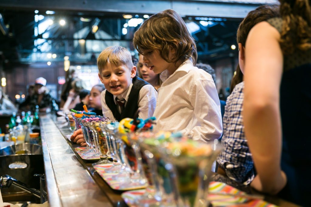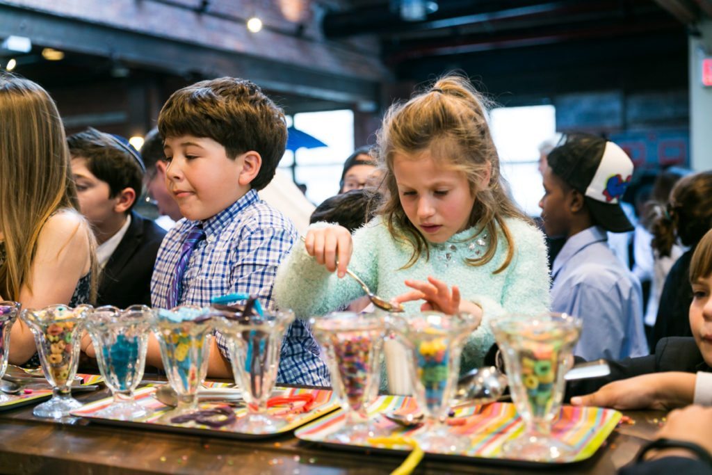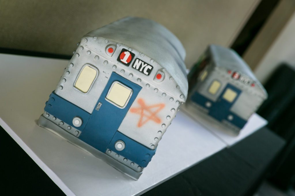 Dessert was a milkshake bar that the kids went absolutely crazy over. There were a variety of flavors, and then a myriad a colorful, candy toppings that the kids could add at will. And of course, this NYC bar mitzvah ended with a cake in the shape of the subway.