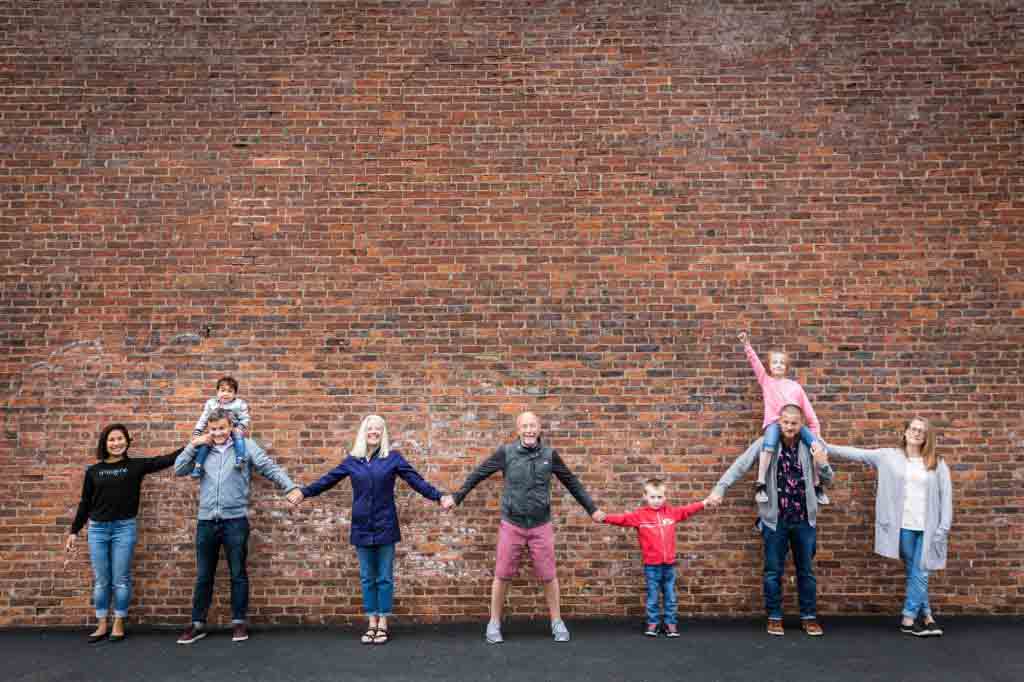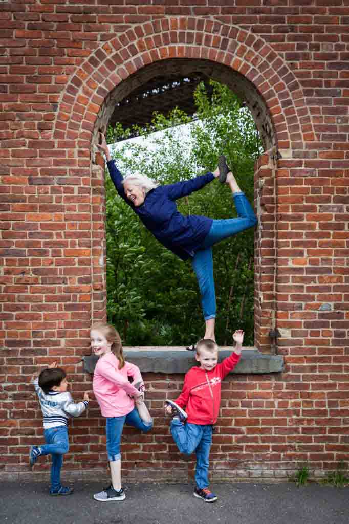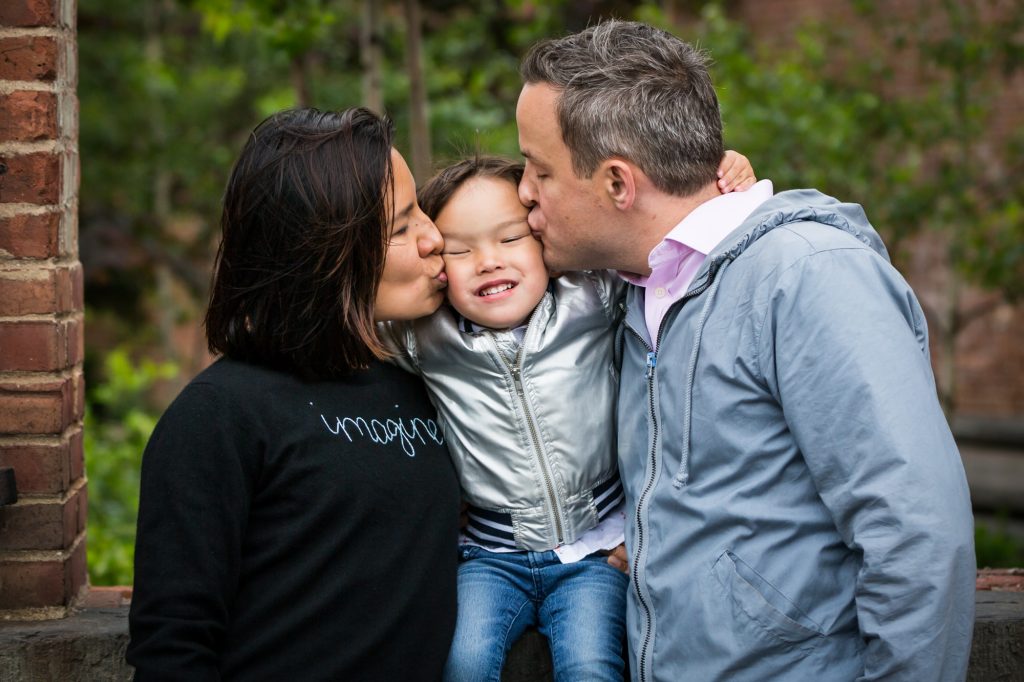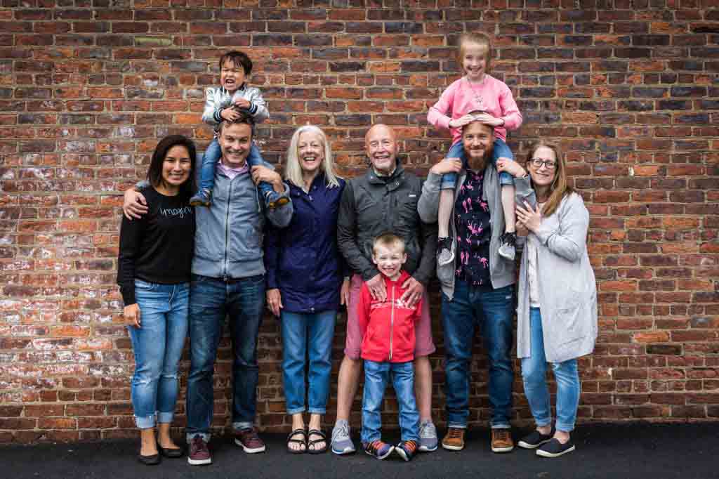 The grandmother is an avid yoga practitioner, and I could not let those skills go to waste. This photo at St. Ann’s Warehouse is one of my all-time family portrait favorites. Likewise, this photo on the back brick wall of the theater is another favorite of mine. So learn from Nick and his family and don’t let a little bit of cloud cover get you down. You can still make lemonade out of lemons, so to speak, and get some great photos even on a cloudy day.