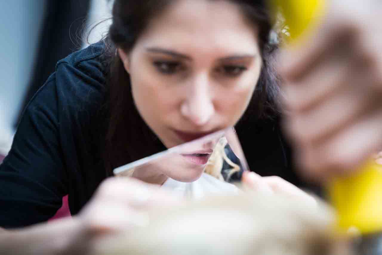 Zack then took her out to dinner at her favorite vegetarian restaurant, under the guise of a nice evening together before she started rehearsals for her next show. He was nervous throughout, still a small fear in the back of his head that she might inexplicably say no. Throughout the meal, Zack kept brushing his chest pocket to make sure the ring hadn’t somehow fallen out. After dinner, they went for a walk through Central Park, where Zack conveniently had a photographer-friend waiting on standby. As they were passing over a stone footbridge, he turned her to point out a pretty building (and to better position her for the photographs) and then dropped down to one knee. She said yes.’