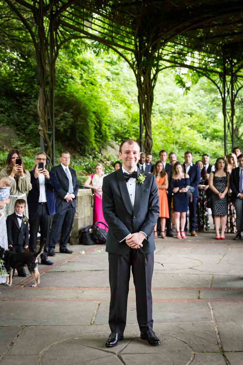 The walled garden is my all-time favorite spot within the Conservatory Garden. You may have to wait in line to get a clear shot by the koi pond that doesn’t also include a reflection of extra tourists, but it is worth the wait. In addition, the walled garden has several side pathways that you can have all to yourself for photos. If the garden gets too crowded, then move to the outside walkway. I used this space for photos of Zack and his family prior to the ceremony.