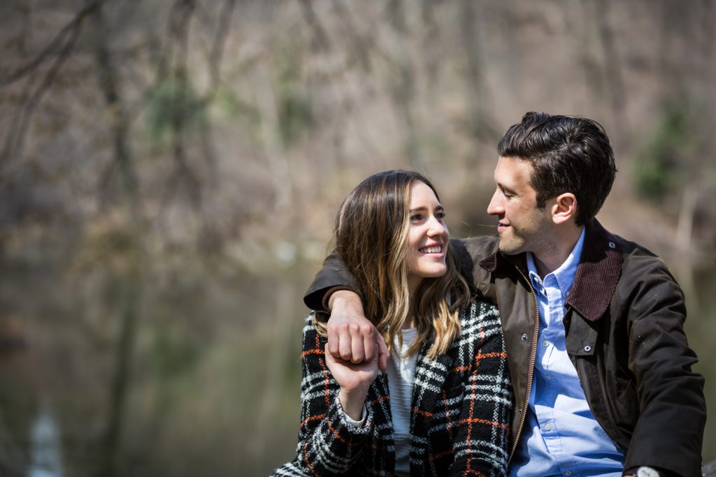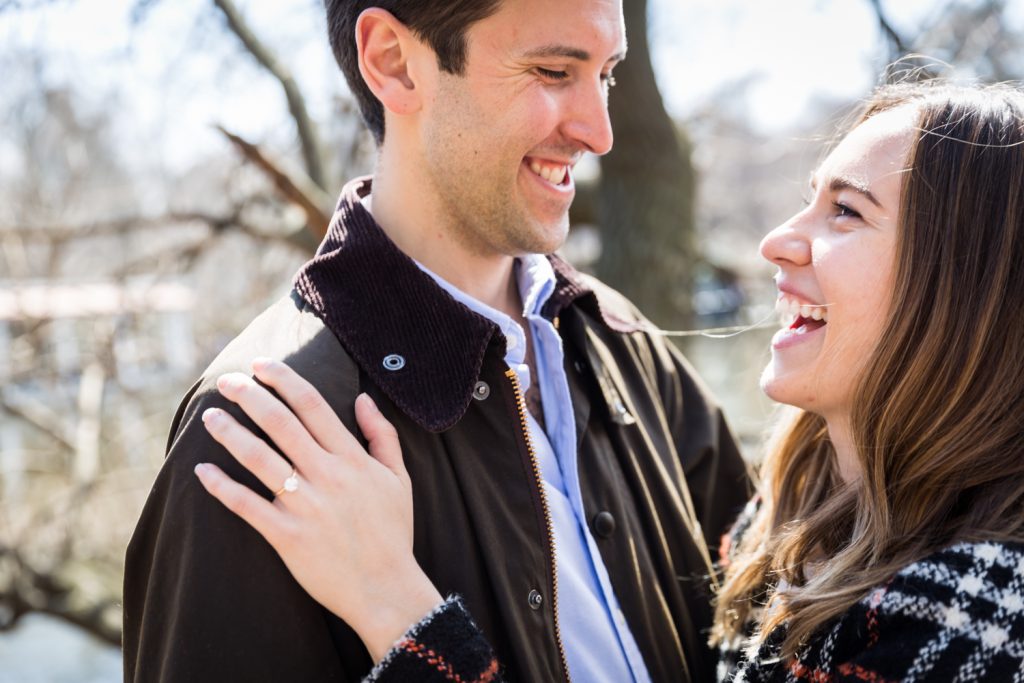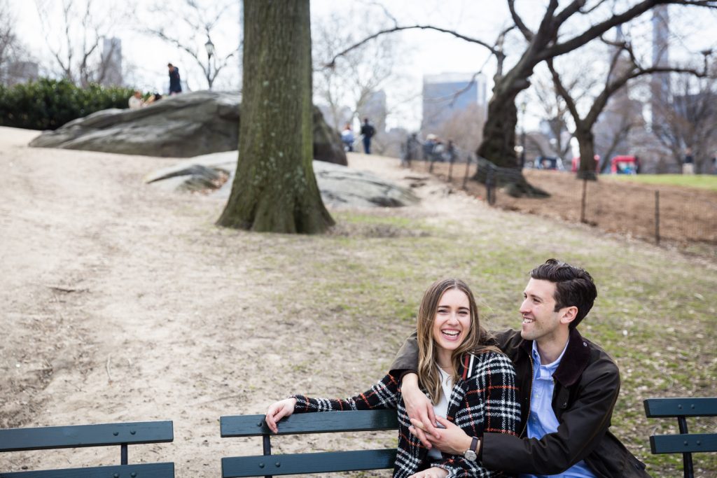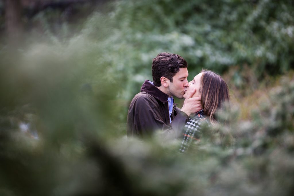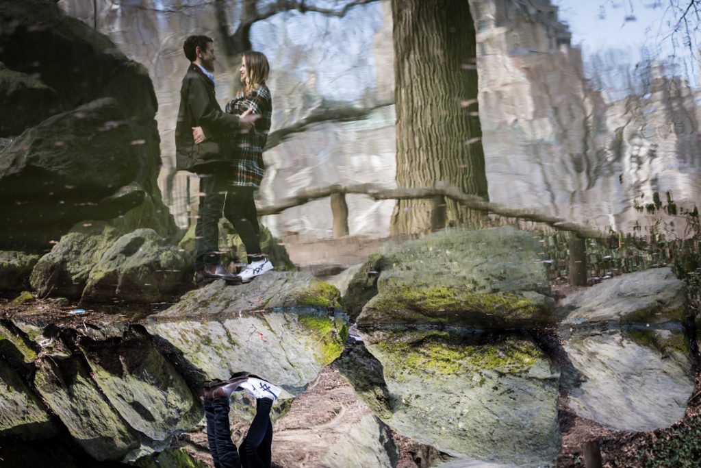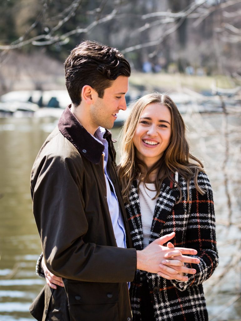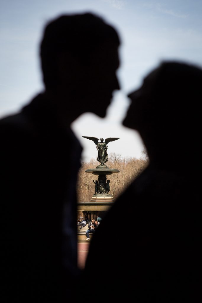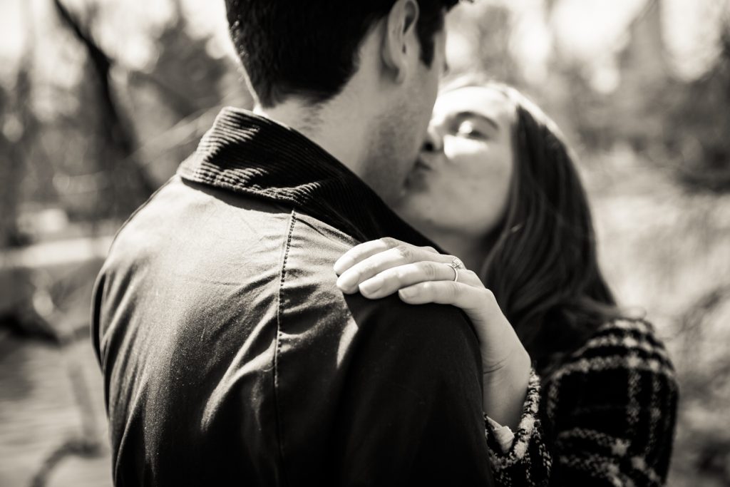 There are no rainy day backup locations in Central Park. A proposal in Central Park is entirely dependent upon the weather. Aside from the Dairy and underneath the Bethesda Arcade, there are no truly covered areas in Central Park. This means that if it rains, you need to have a backup spot not located in the park. Bear in mind that private restaurants – such as the Loeb Boathouse or Tavern on the Green – generally don’t look kindly on photographers interrupting the meals of other patrons so these spots are out. For Matthew’s proposal to Anna, we briefly talked about the Lake Viewing Area in the Ramble, but this is just taking cover under the trees. If it was really raining then Central Park wouldn’t be an option, period.