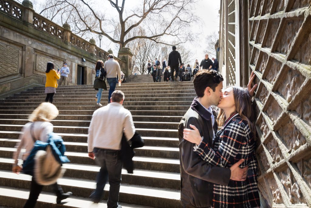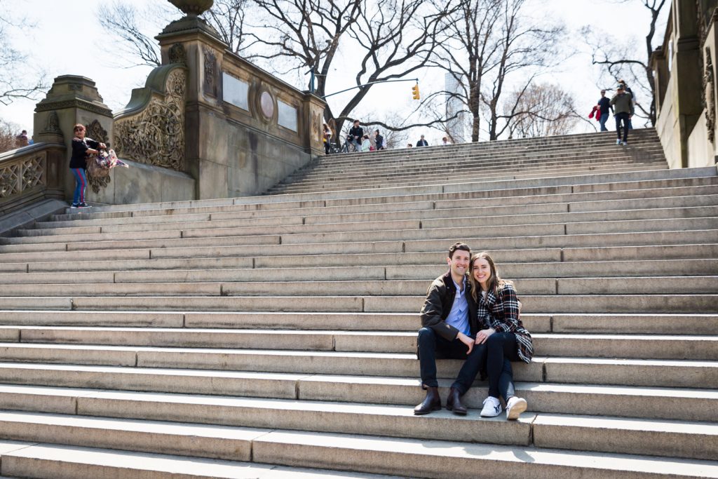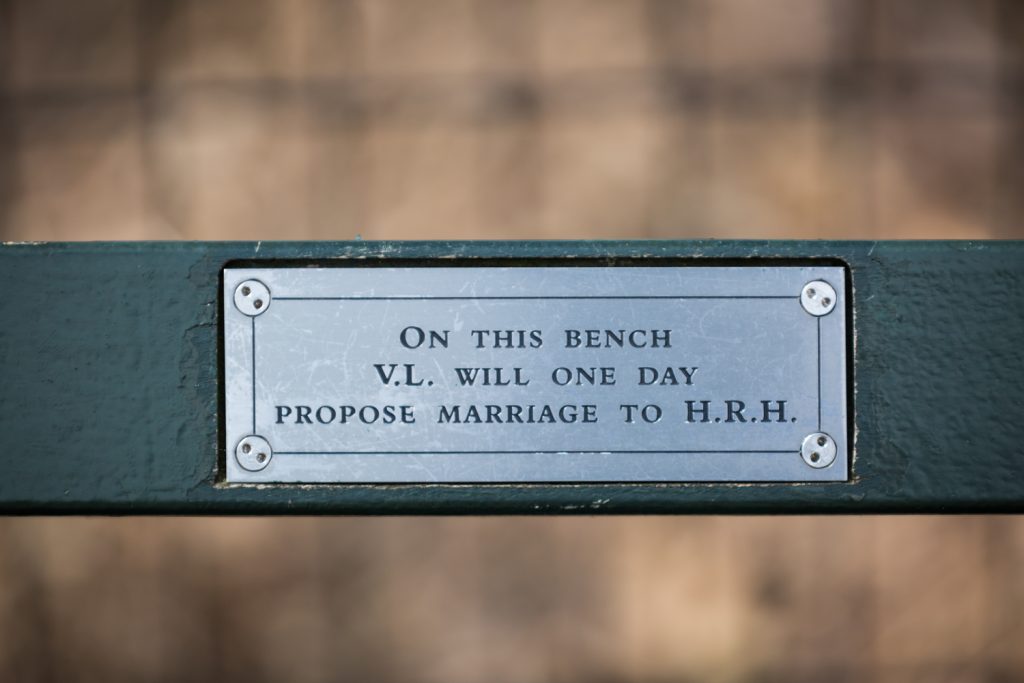Have a plan in place for where you want to take photos after the proposal. Central Park is a big place, and has several options when it comes to photo backdrops. Remember that anything from 72nd Street and below will be crawling with tourists on the weekend (or really any time after noon). The Bethesda Fountain area, in particular, is always jam packed with people so bring your patience if this is the direction you decide to go. There is a certain charm to having so many tourists with you as you take photos, but just know that they can’t be avoided in this area. Above 72nd Street, however, tends to be much less crowded. So if you have any issues being the center of attention in a crowd full of people, then northern Central Park is the place to go.