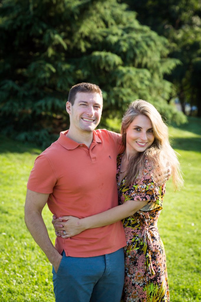 From the rock garden we then ventured over to waterfront – the money shot at Hudson River Park. The waterfront is beautiful. It’s not the New York City skyline view from Queens, but the New Jersey view is lovely nonetheless. For our 8:00 a.m. photo shoot the riverfront area was a bit too bright out for my taste. To hit this area at the perfect time of day requires scheduling session exactly at ‘golden hour’ – either just after sunrise or just before sunset. Bear in mind, however, that bright sunlight can create great shadows, so don’t be afraid to use these shadows to your advantage during your shoot. Also, definitely make use of the NYC skyline view as you look away from the waterfront. While the view over the water may be too bright in the morning, the view back towards the city is just glorious. Case in point, these photos above of Ruben and Joanna alone were taken in the meadow area behind the waterfront, looking away from the water.