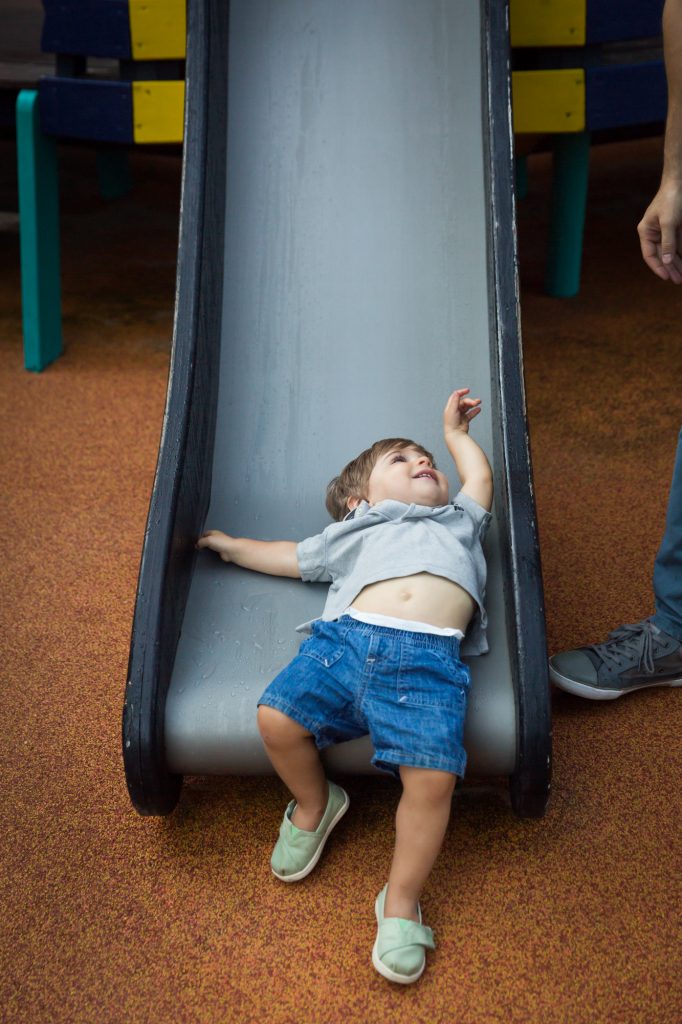 Next up is to check out the rock garden area. When I was at Hudson River Park with Ruben and his family, the grass in the first shady area was very wet thanks to morning dew. I didn’t want anyone to get to dirty at the very start of the session, so I saved my individual shots of Ruben’s son for the rock garden area. This was a great solution as Ruben’s son found the perfect rock to perch on for his individual photos. The rock garden area does not have a lot of shade, but if you stick to the rocks on the edge of the area, the tall foliage can give you a little bit of protection from the overhead sun.