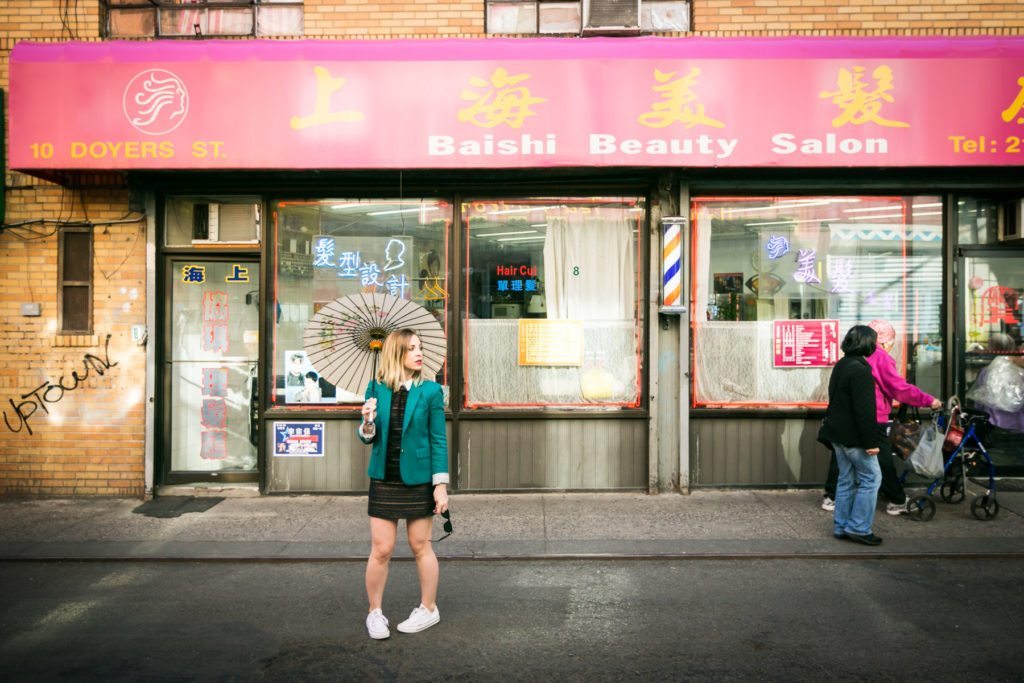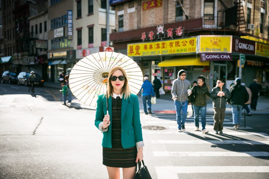 Let’s get your weekend off to a fashionable start, shall we? As promised, I am sharing with you photos from a second fashion shoot I did — this time in Chinatown, NYC. I have been wanting to shoot in this part of town for years, and thanks to model Amanda, the photos finally became a reality. There’s just something about the fact that when you are lost in the deepest part of Chinatown, it feels like you have been completely transported to Asia. Our Chinatown in NYC is large enough to have its own zip code, and it is truly a marvelous place to explore.