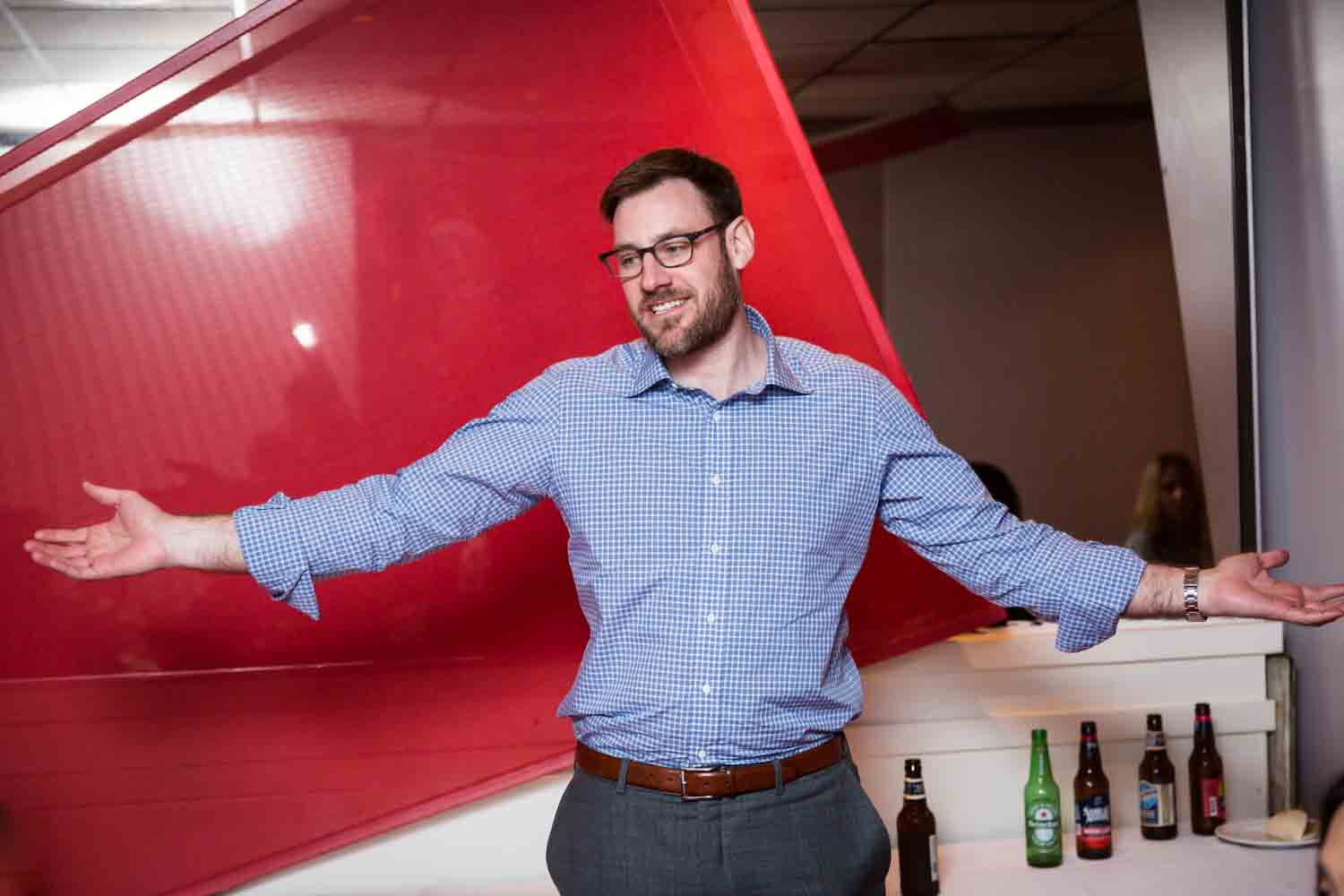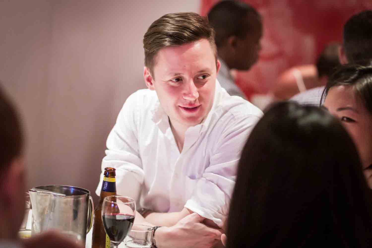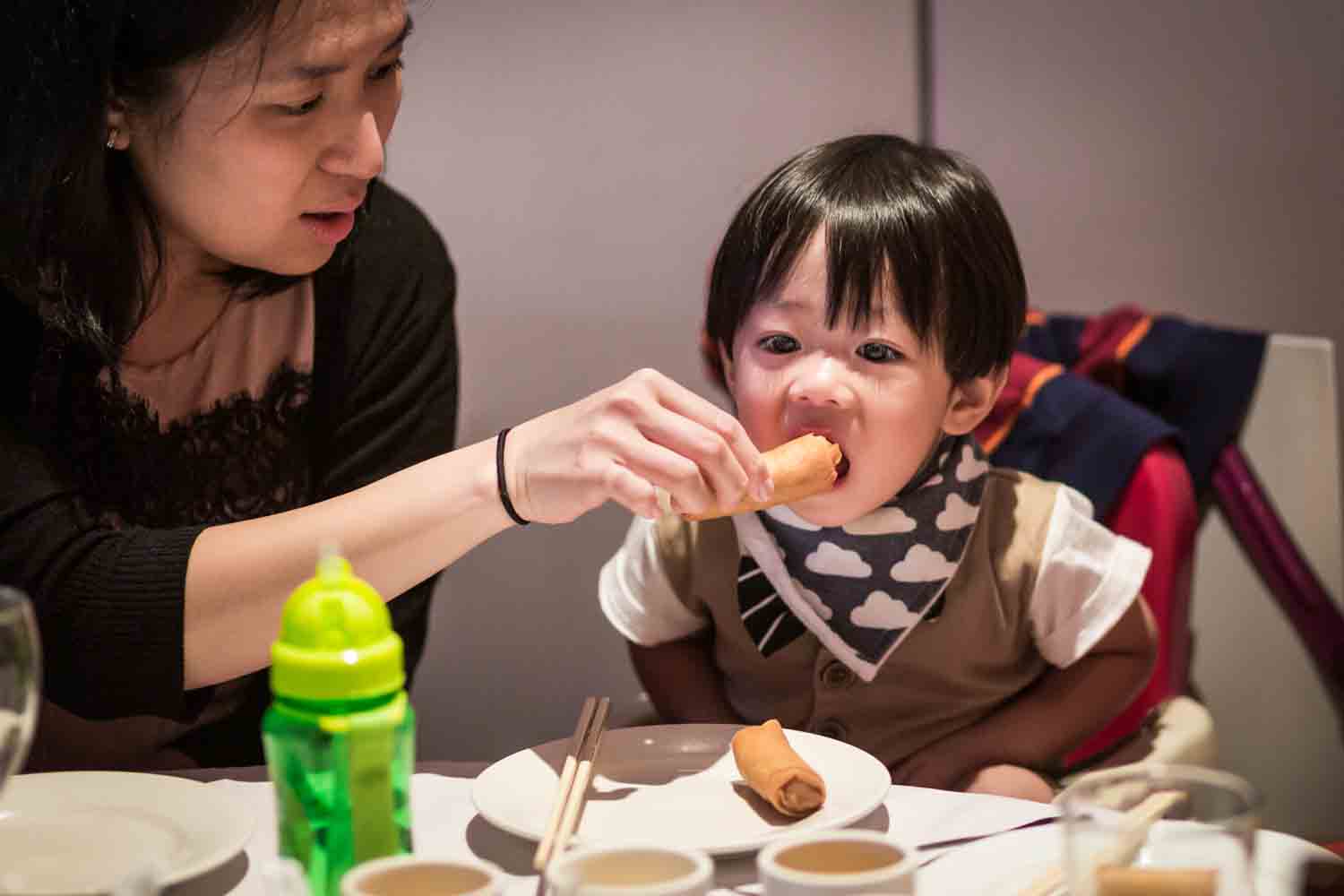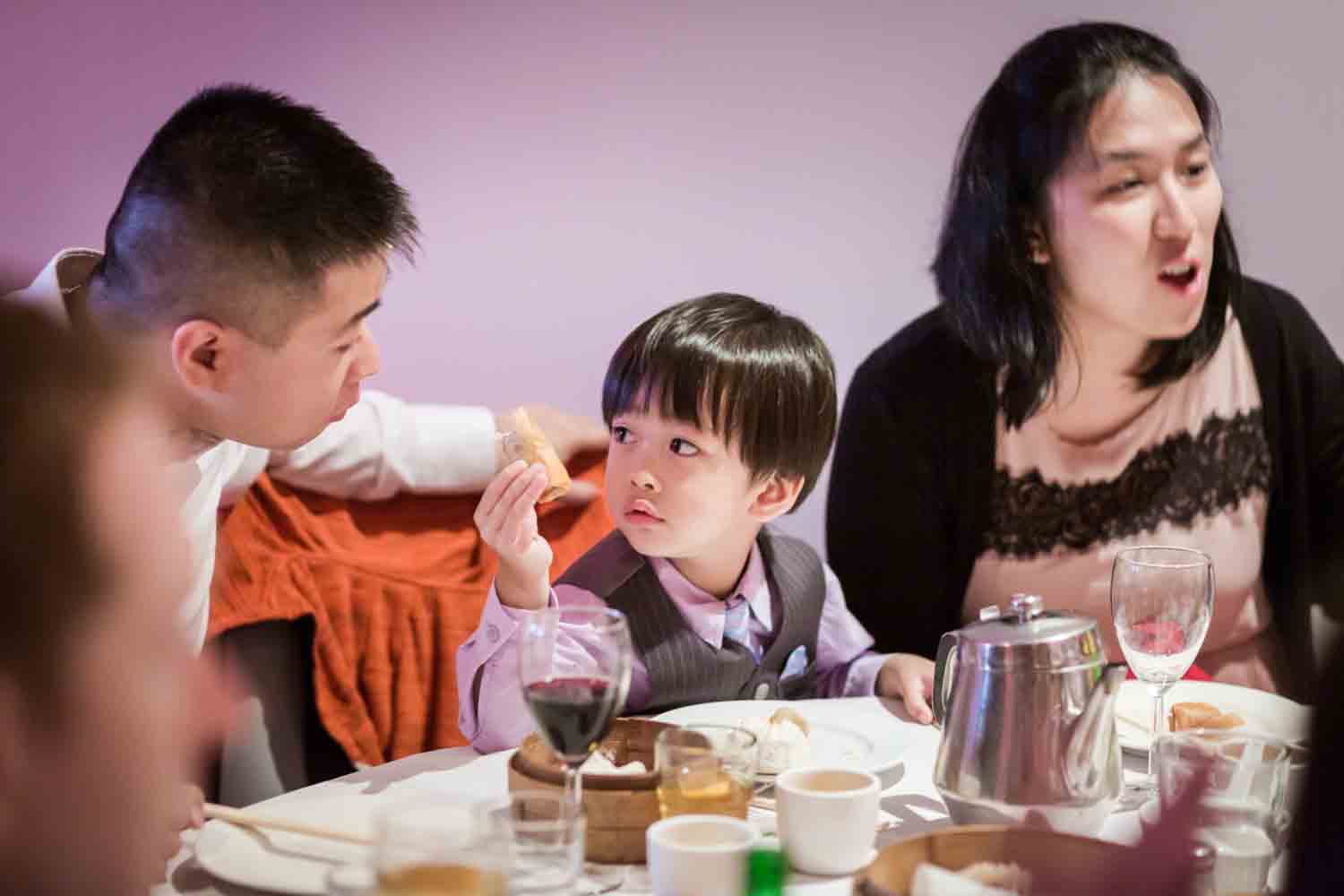 Organized by Blaine’s parents, the dinner was a wonderful nod to Genny’s Chinese family heritage. The wedding party took over the entire second floor with seating organized with all of Blaine’s family together, Genny’s family together and then friends and bridal party at a separate table. Having eaten dim sum here myself, I can vouch that the food at Dim Sum Go Go is delicious. And while I don’t normally eat during a short event such as this, owner (and family member) Veronica was kind enough to sneak me a Peking duck sandwich. It was scrumptious, and I will be back for more.