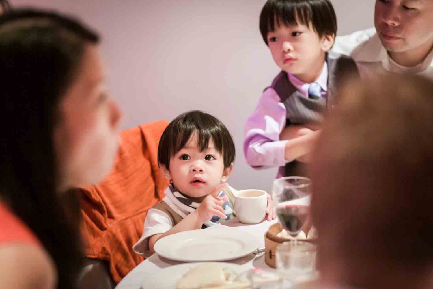One other lesson from this Chinatown rehearsal dinner was that this event was designated as family time with the entire family (including kids), while the wedding was an adults-only affair. There are mixed views on having a wedding with only adults invited. On the one hand, an adults-only wedding allows the parents to have a night free and they get to truly enjoy themselves. On the other hand, if you have friends or family with kids who can’t get a sitter, then they may have to sit out your wedding. Only you can make that decision for your own wedding, but you do have options. If you are going to go the adults-only route and are hosting a wedding with out-of-town parents arriving who might not know a local babysitter, then look into a babysitter service for the evening. I did a simple Google search and came across a dozen names of such agencies.