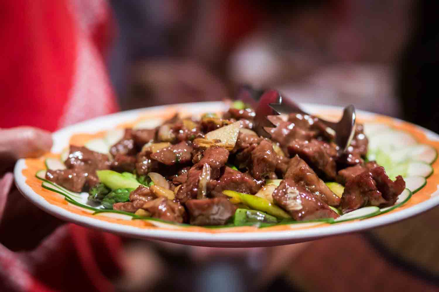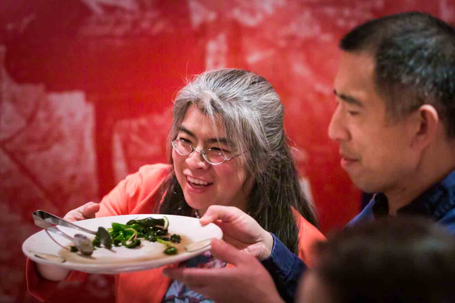 In case you are unfamiliar with the concept, dim sum is defined as a style of Chinese cuisine prepared as small portions, usually in steamer baskets. Dim sum is very popular on the weekends for brunch, especially here in New York. While the dishes served during Genny and Blaine’s rehearsal dinner were set directly on the table, in normal dim sum service, a waiter drives a small cart filled with dishes from table to table. You decide what dishes you want, and pay per dish. Dim sum is the perfect way to sample lots of different food. Even better is when you can share your items with other people at your table.