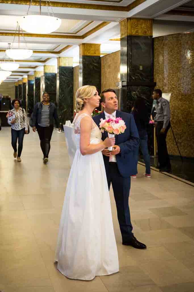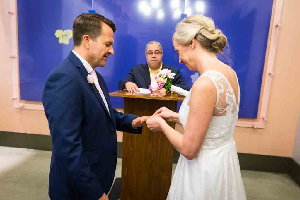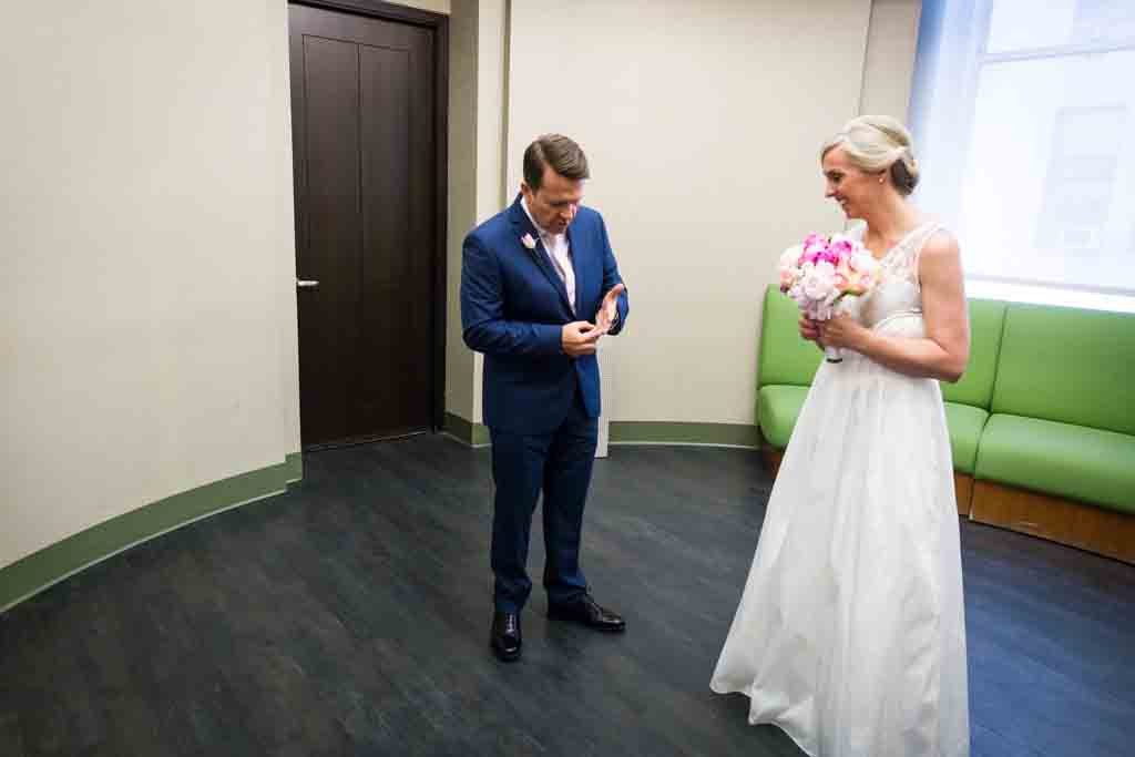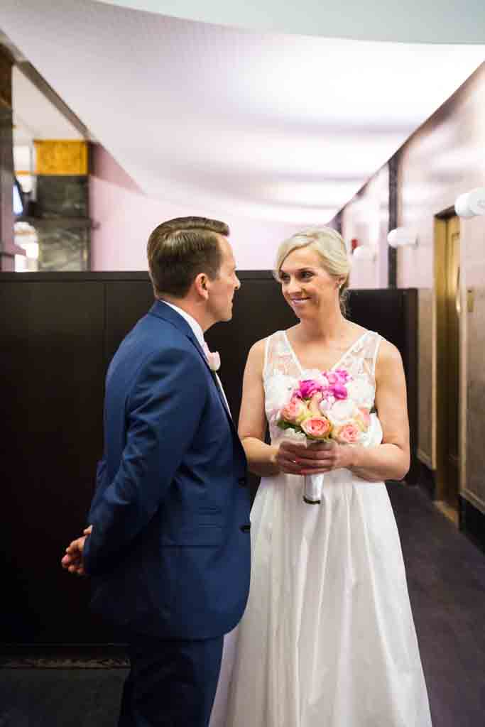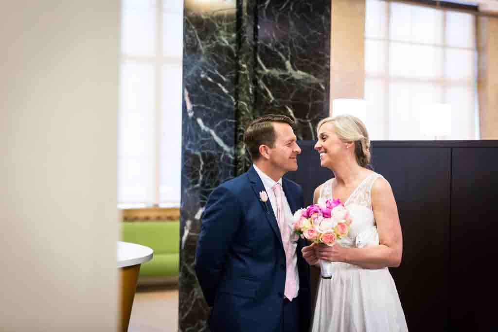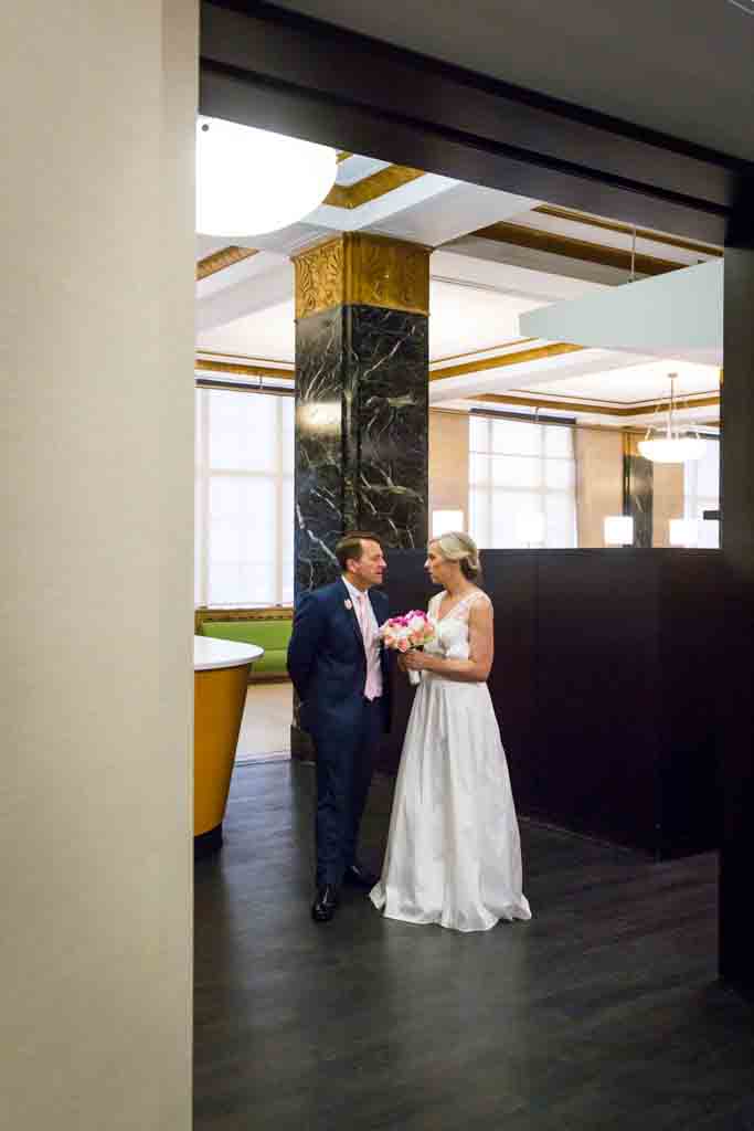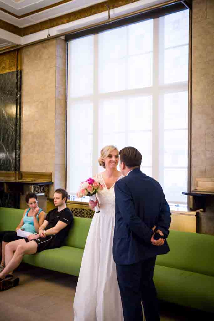 Zoe and Chris looked great in their coordinating wedding outfits. As is usual at City Hall, there was a mix of everything – attire-wise – for the couples around us getting married. On our visit there were lots of understated cocktail dresses, but I have seen everything including many full-on meringue wedding dress and veil get ups.