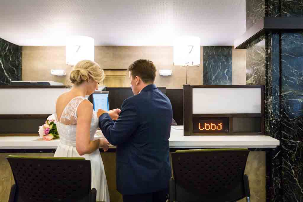 The first and most obvious change at the City Clerk’s office is an increased level of security. You now have to go through a metal detector, just as you do at the airport, so expect an increased wait time at peak periods. This means if you are planning to get married on a Friday, plan for an even longer time. Also, once you go through security, the only way out is through the doors at the end of the office. For me, this means waiting for clients just past the information desk. I’m a little harder to see when you enter the building, so make sure we both know you are coming through security to ensure that I get photos of you at the information desk.