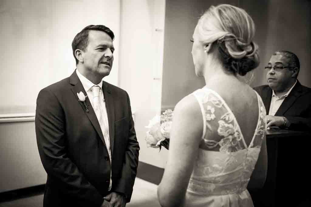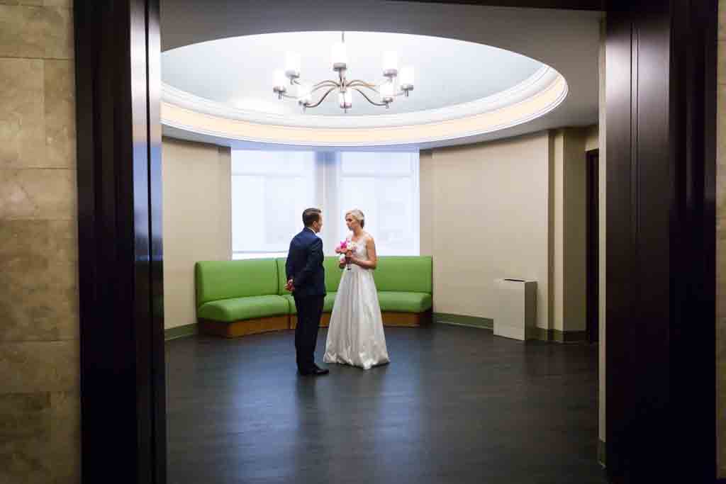 A sad new development at City Hall was the horrible customer service we received during Zoe and Chris’ elopement. The guy at the front desk was delightful as usual, and the security staff could not have been nicer as I went through the metal detector. But that was it. The attendant who handled Zoe and Chris’ paperwork was, frankly, downright rude. Also, our officiant – though I have worked with him on several occasions where he was much more congenial – was noticeably rushed during the ceremony even though there was not a crowd waiting at the door. I’m not sure what the situation was, but make sure you are ready to go the minute you step into the chapel. Our officiant was hell-bent on getting these two married…with or without the photographer.