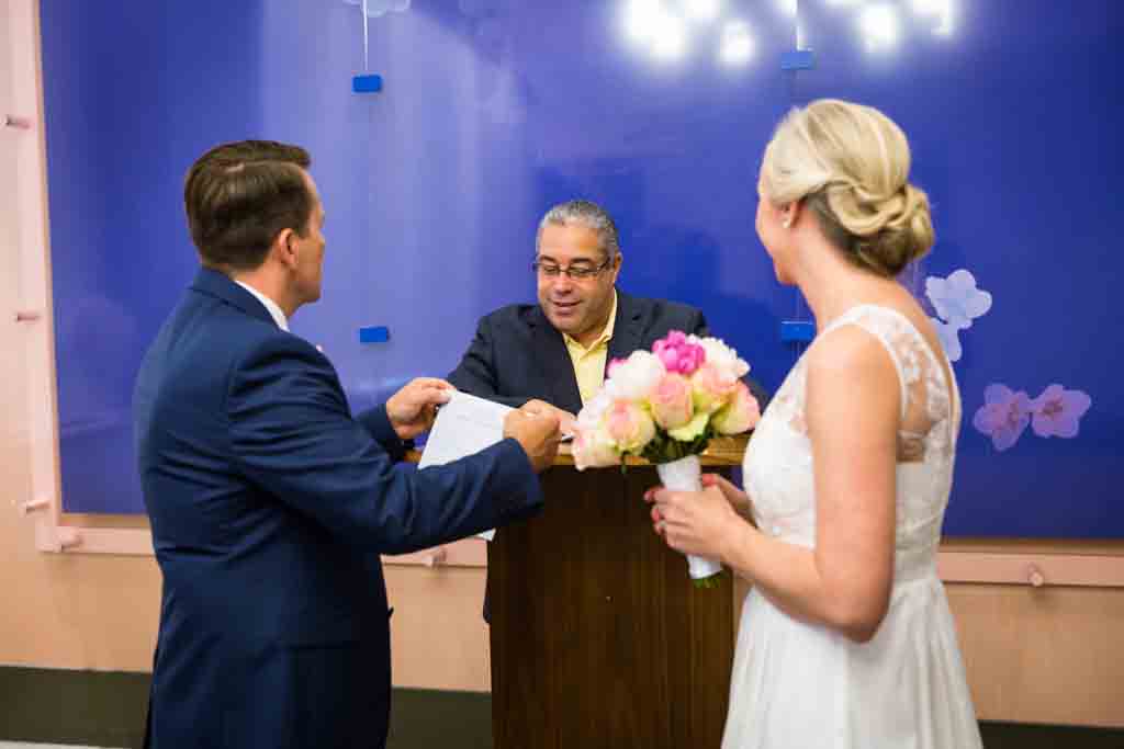 The wedding itself could not have been speedier, however. We breezed through the wedding on Tuesday, and were walking out the door after about 40 minutes. Compare that with the two hours it normally takes to elope at City Hall on a Friday. By the way, I served as the witness for Zoe and Chris’s nuptials. I was so excited! I haven’t served as a wedding witness since Karen and Ted tied the knot in 2012.