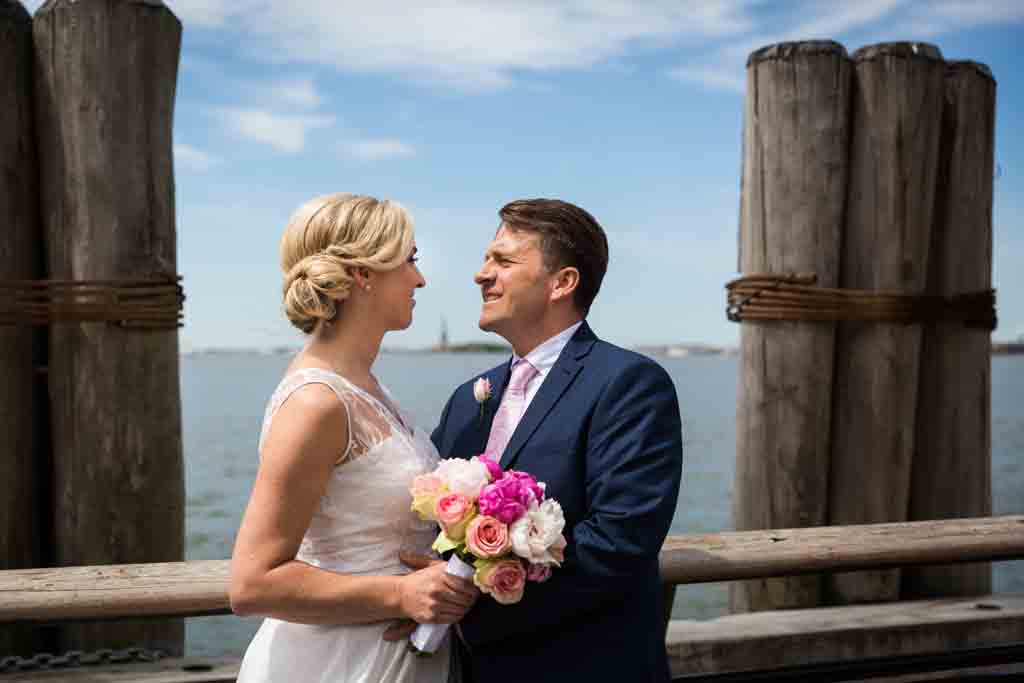 After the short and sweet ceremony, our next task was to get some great portraits. Zoe and Chris had expressed to me their portrait priorities were to include the following: the massive bronze doors outside the City Clerk’s office, a tree (for a bit of greenery), an iconic NYC taxi, and the Statue of Liberty. I am happy to announce we achieved all four photo goals.