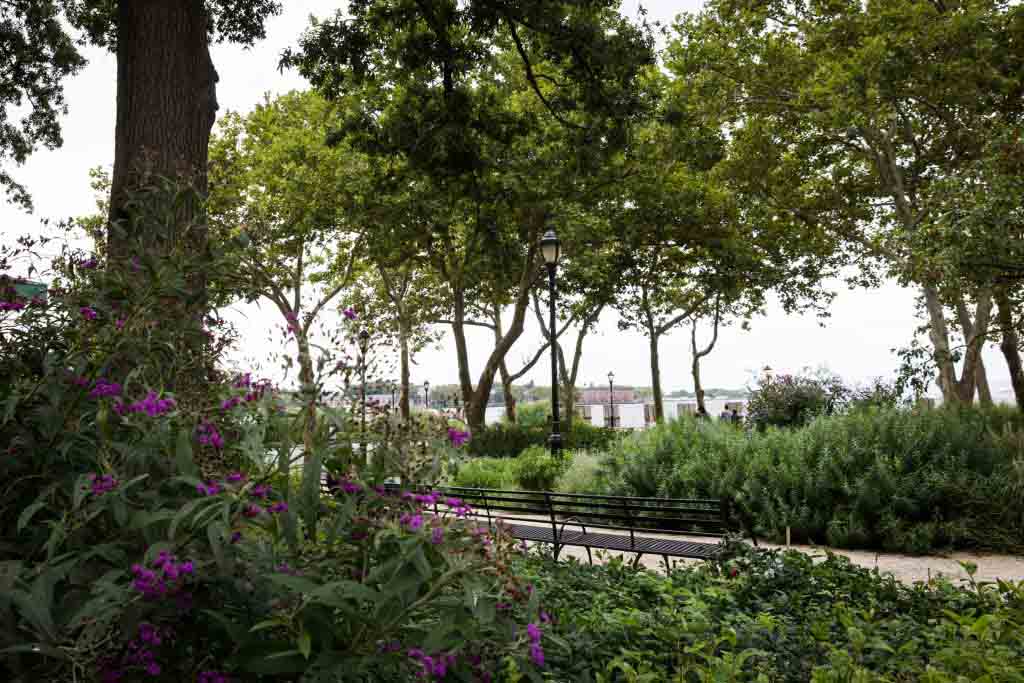 If you plan on heading towards Battery Park, then be prepared for a lot of tourists and very little shade. There are breathtaking views of the Statue of Liberty all along the waterfront, however, it’s a crowded platform along the edge of the park. My recommendation is to grab a few grand shots of the waterfront, and then move to the smaller, or lesser-known areas of Battery Park including Robert F. Wagner Jr. Park and South Cove Park. On the upside, there are some lovely gardens within Battery Park. If you visit when the leaves are still on the trees, then you should have enough shade just inside the park, but come prepared with patience to deal with the tourists and office workers who frequent the area. By the way, there is a sea-themed carousel in Battery Park, if you want to add an extra touch of cheesy romance to your photo session.