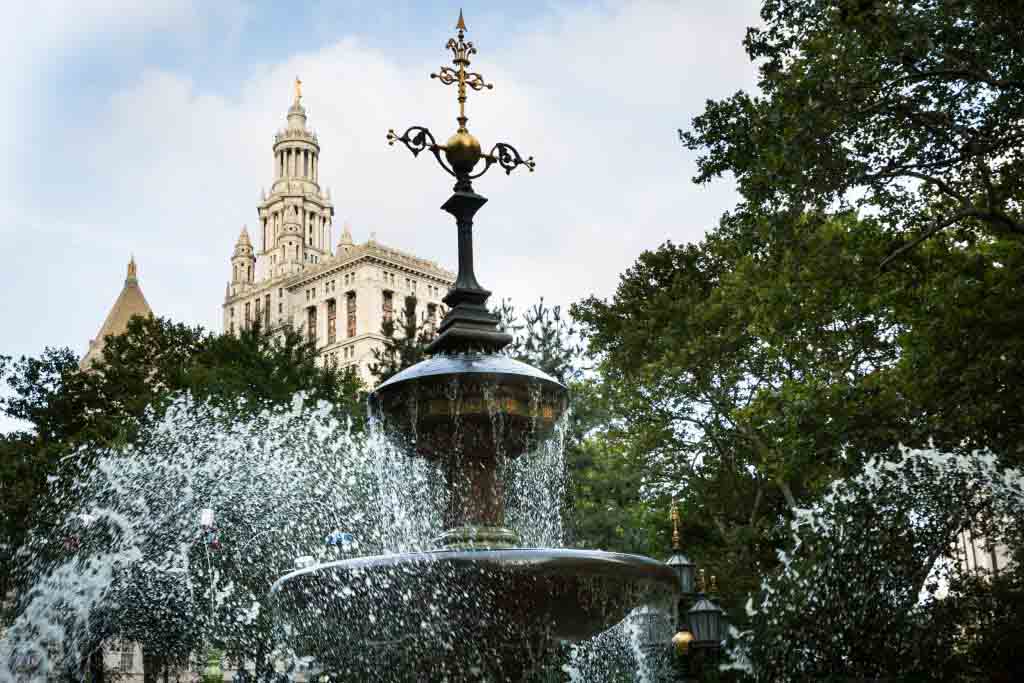 Please note, the steps of the New York Supreme Court building to the left of Foley Square are lovely — but are now off-limits. The courthouse steps make a regular appearance in episodes of Law and Order, but for the past few years the barriers are always up. When I first started taking photos down at City Hall, you could actually pose on the steps and get some beautiful wedding photos. Sadly, those days are gone. A few things to watch out for in the park include ugly fencing around one side of Foley Square and hideous scaffolding that has been present for about a year along Worth Street. The sooner the City gets done with construction, the better.