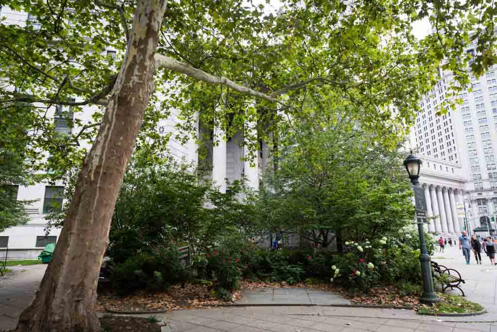 The only benefit to the little wedding garden is the fact that it is located directly across the street from the Marriage Bureau. This area will work in a pinch, especially for photos if you have family members with mobility issues. My personal preference, however, is to move over to Foley Square where you have a bit more space, or to try a different location all together.