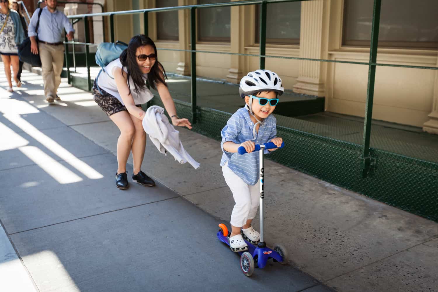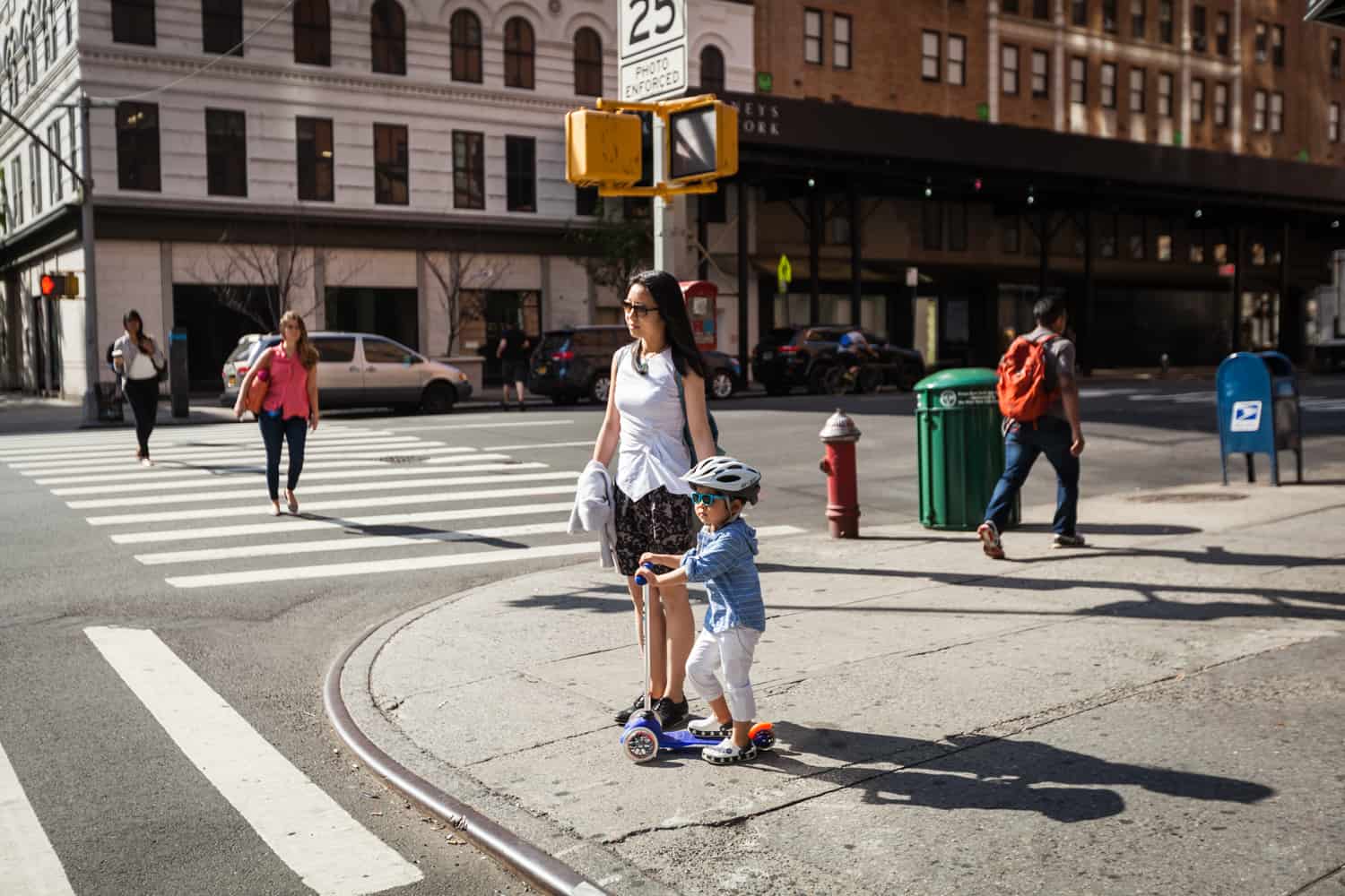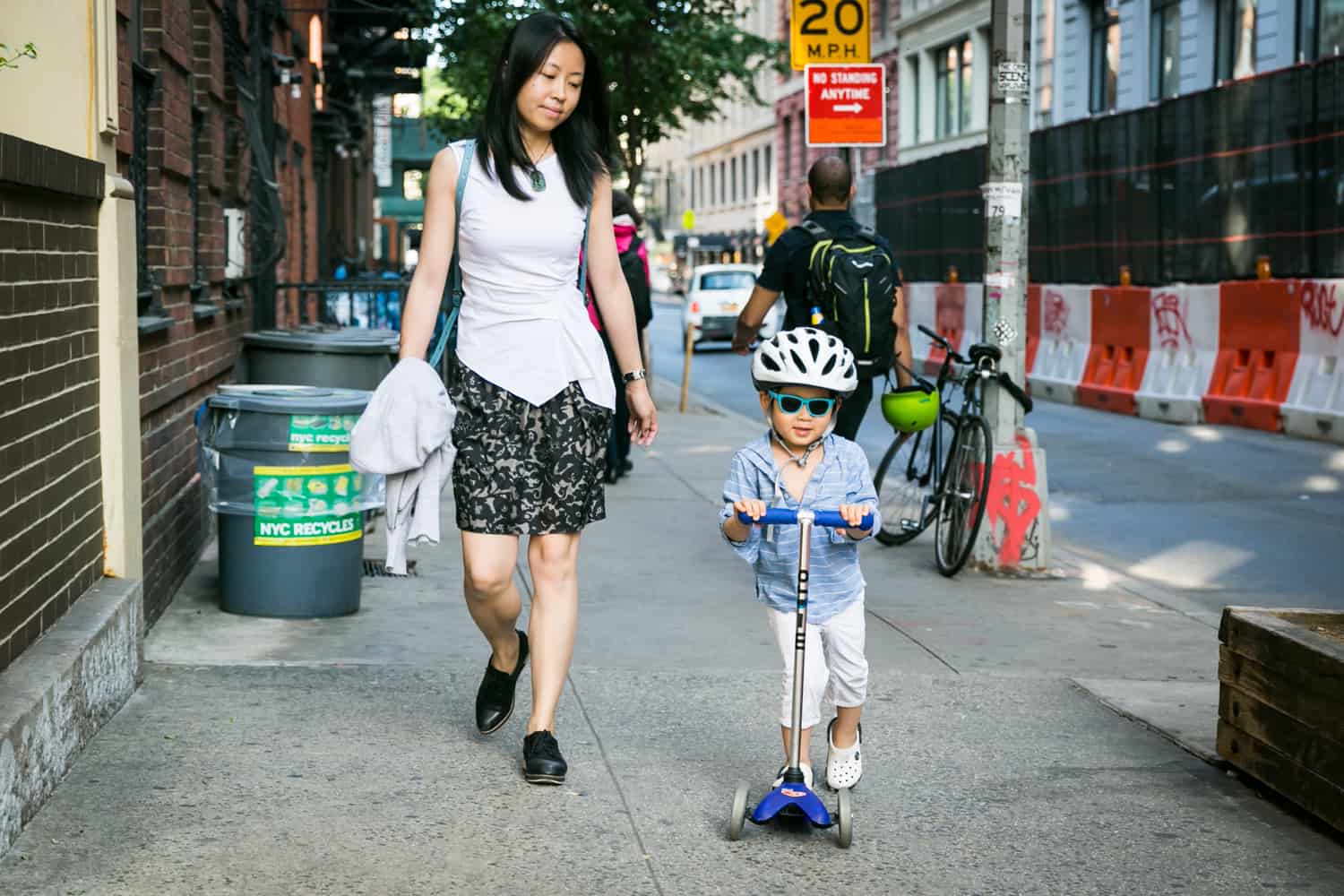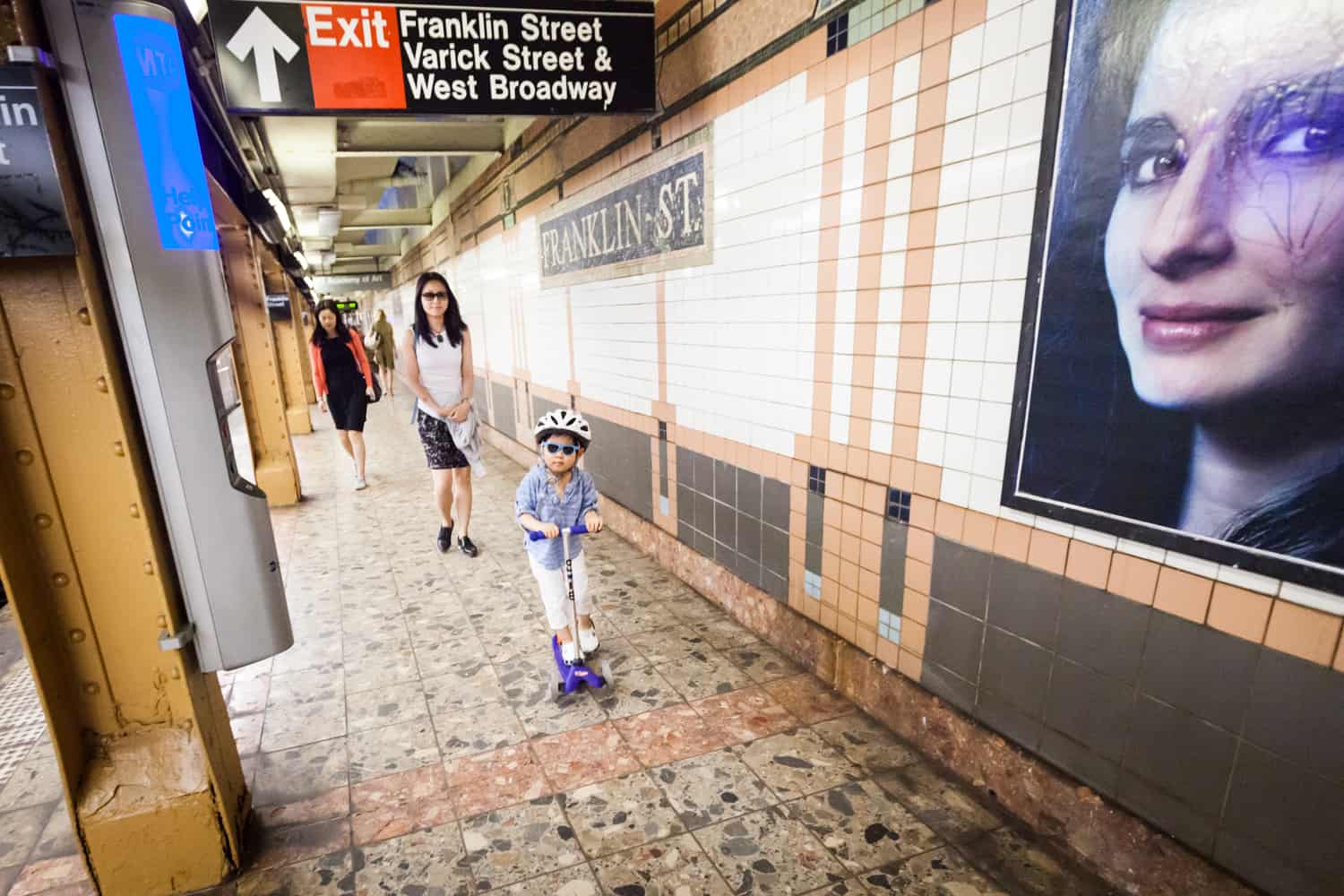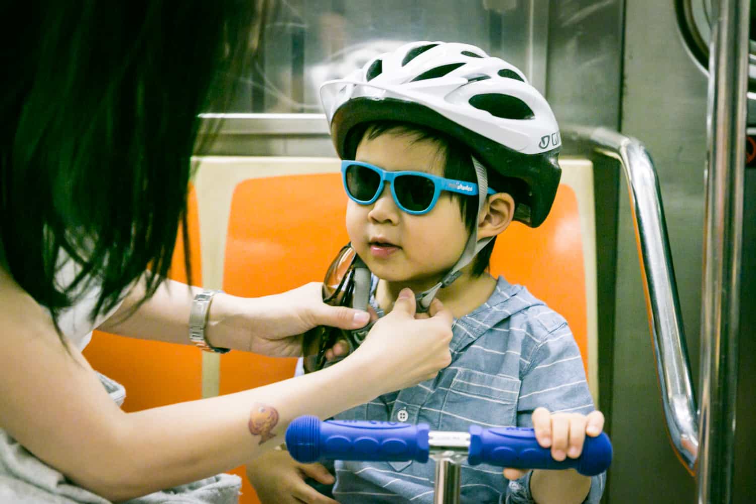 After getting ready herself, we headed out the door to Sara’s workplace. Rather than walk, Luca’s preferred mode of transportation is his trusty scooter. Helmet on, Luca led his mother and I onto the 1 train as we traveled down to Tribeca. The other subway riders luckily found us to be an amusing sight and not too much of an annoyance.