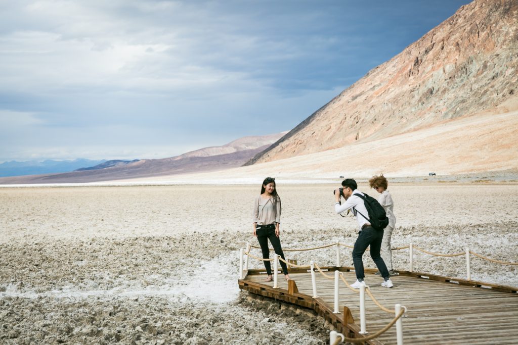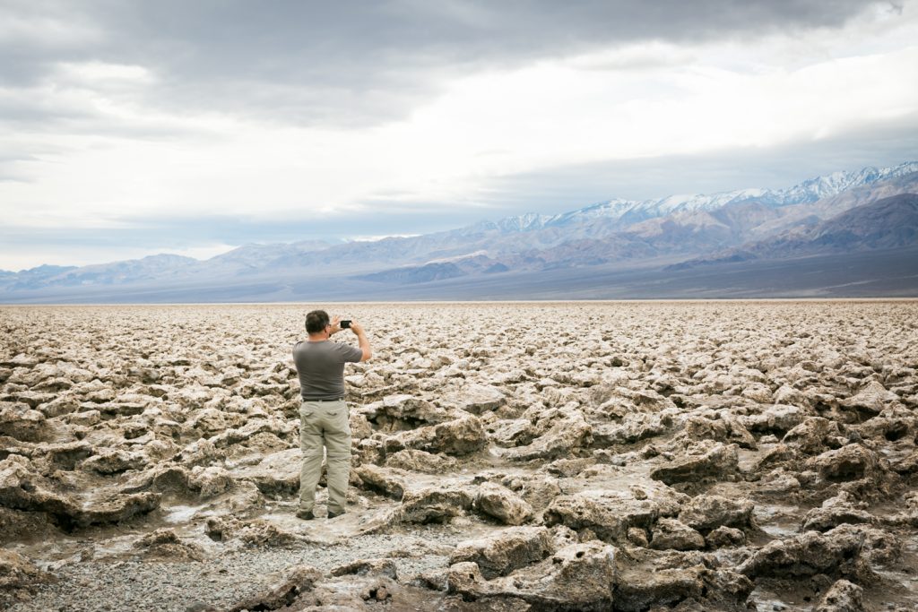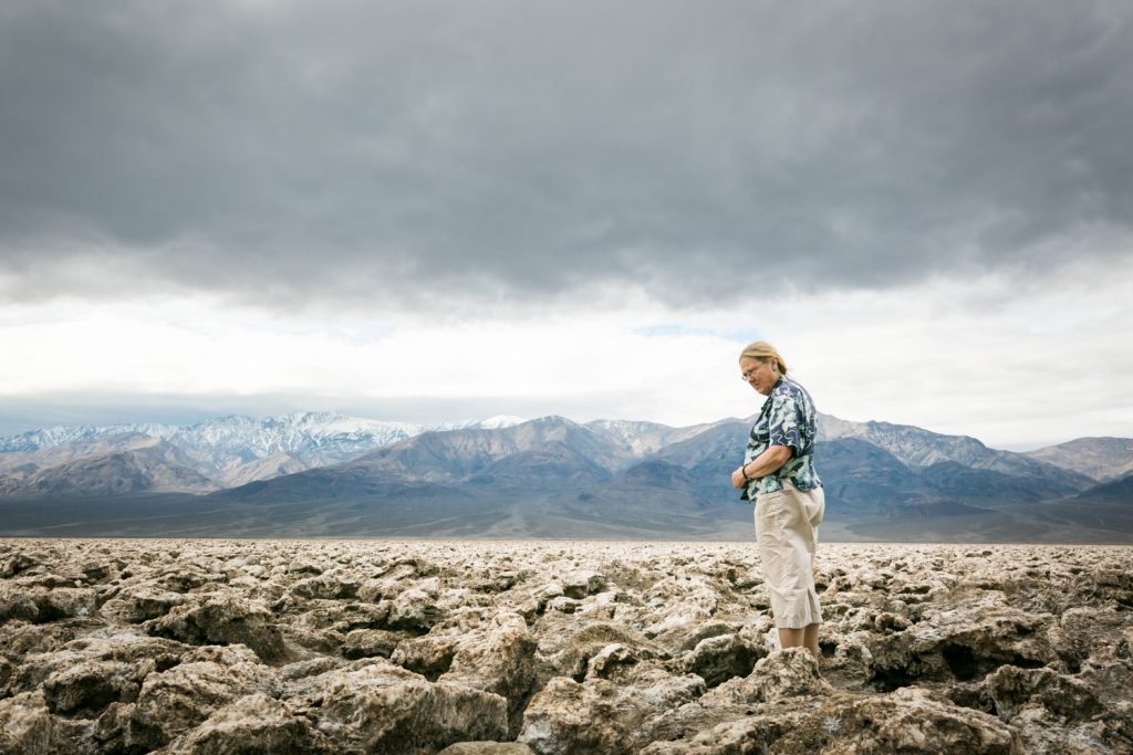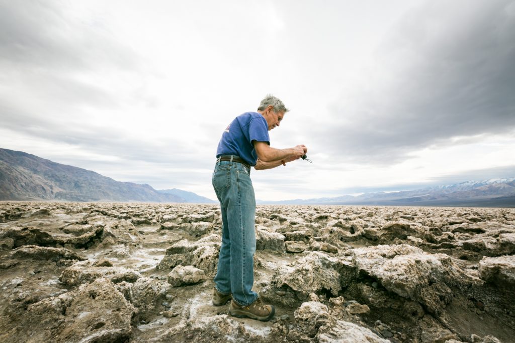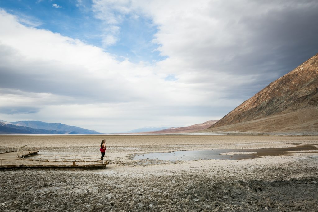 My first day in Death Valley, I visited the Devil’s Golf Course and Badwater. I should note that I previously visited Death Valley about four years ago. The salt formation on the ground at the Devil’s Golf Course seemed a bit less jagged than I remember, and in talking to another visitor, we both came to the conclusion that this might be due to weather changes. In any case, while I enjoy taking landscapes, my real love is photos of people. As such, I made sure to document my fellow tourists. This guy in particular kept walking right in front of me. (To his credit, I was crouched on the ground trying to get a low perspective of the area so he might not have noticed me.) Walk in front of a photographer, and expect to get your photo taken. His wife was equally photogenic.