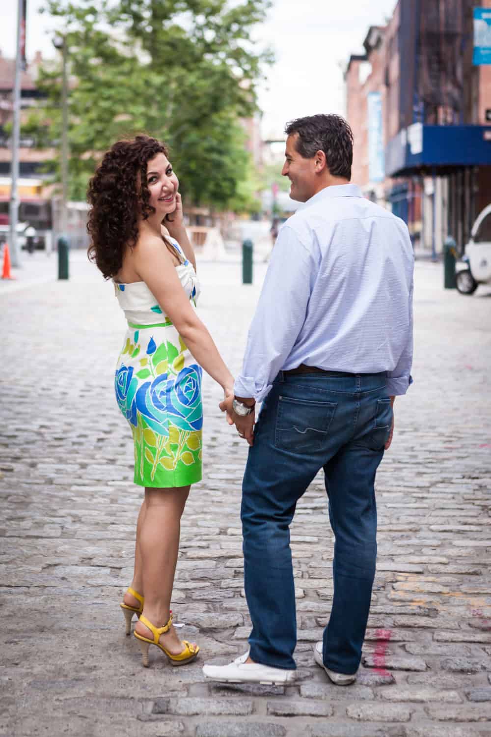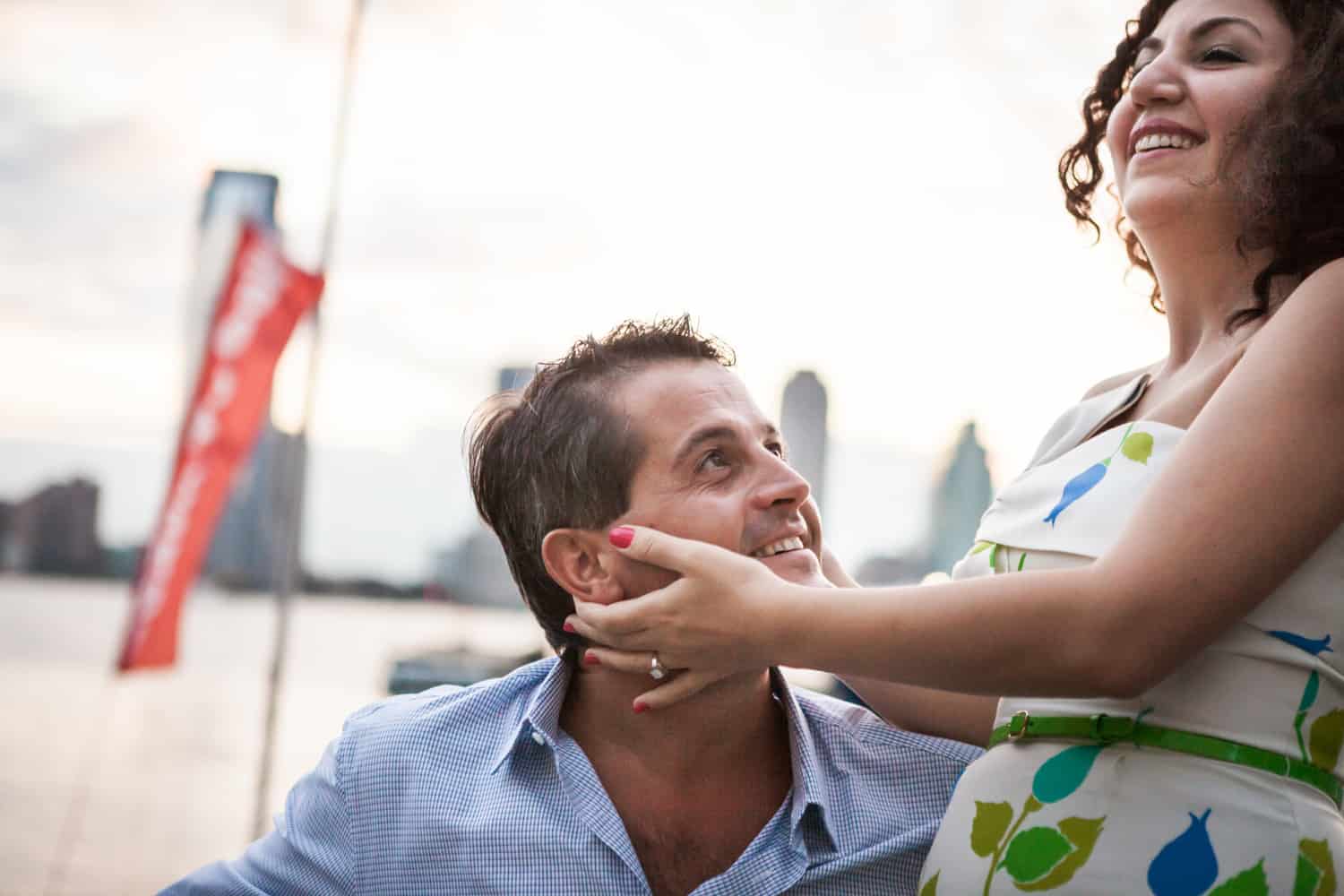 Pier 15 East River Esplanade – This is a magnificent spot for photos. First, you have great views of the Brooklyn skyline. But if you turnaround, you can get an equally great view of the Financial District skyscrapers. For Anna and Nate, this was the perfect opportunity to show off their dancing moves.