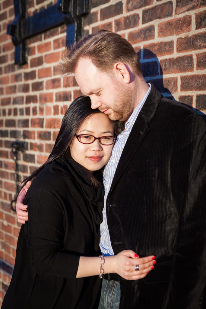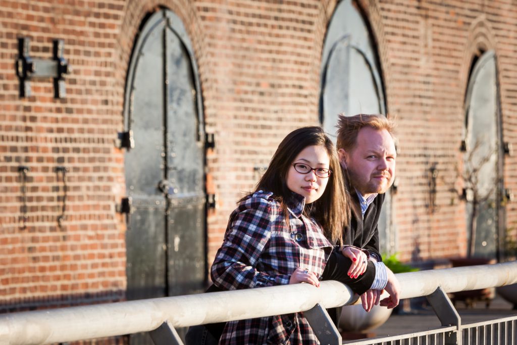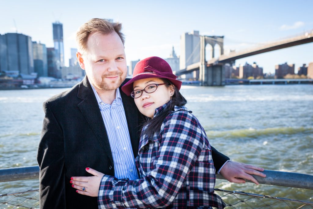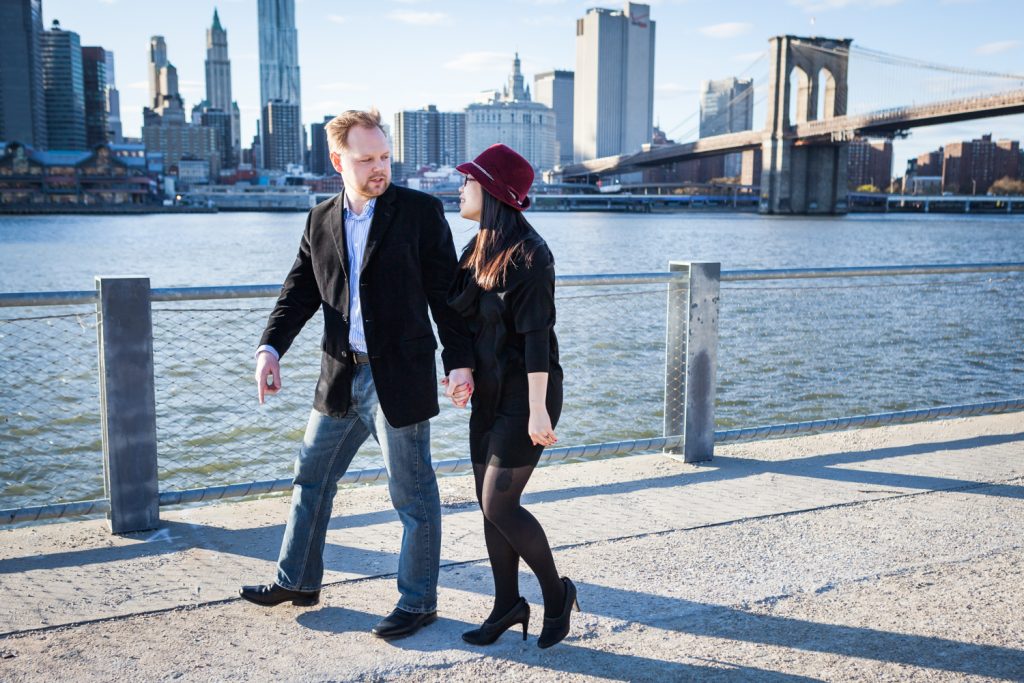We started off on the right foot for Catherine and Wes’s engagement shoot by scheduling our session during the week. As opposed to the crowds and chaos you will find during the weekend, we practically had Brooklyn Bridge Park all to ourselves. There were no tourists to obstruct our view of the bridge, thank you! We concentrated our efforts in the park near Pier 2, and this also assured we would not have to fight the crowds.