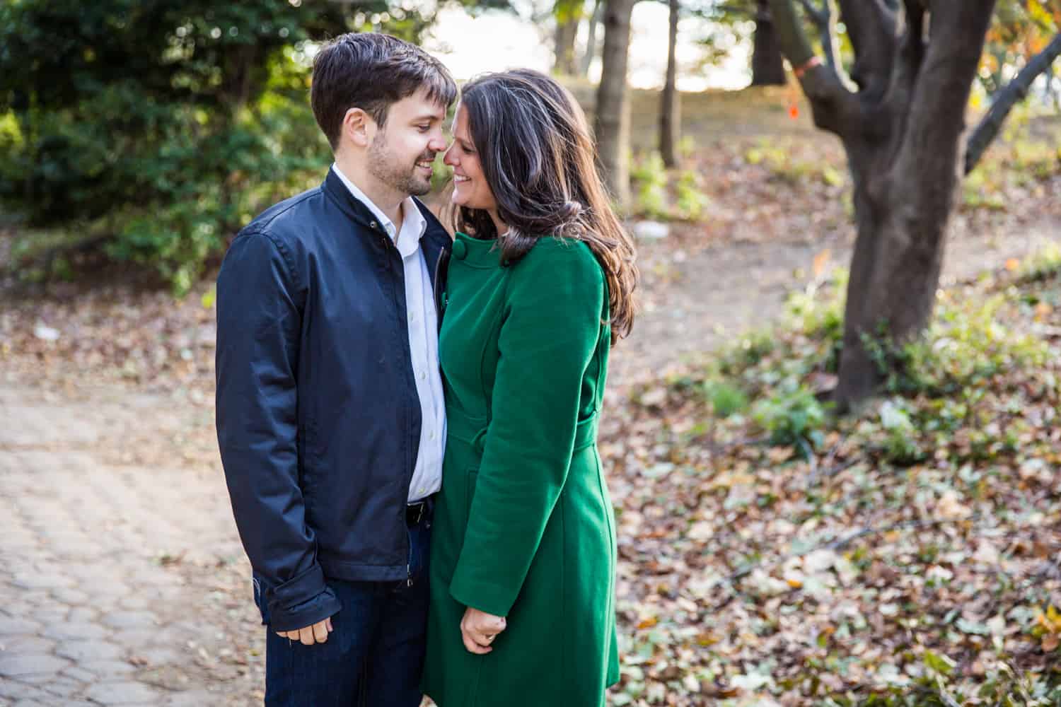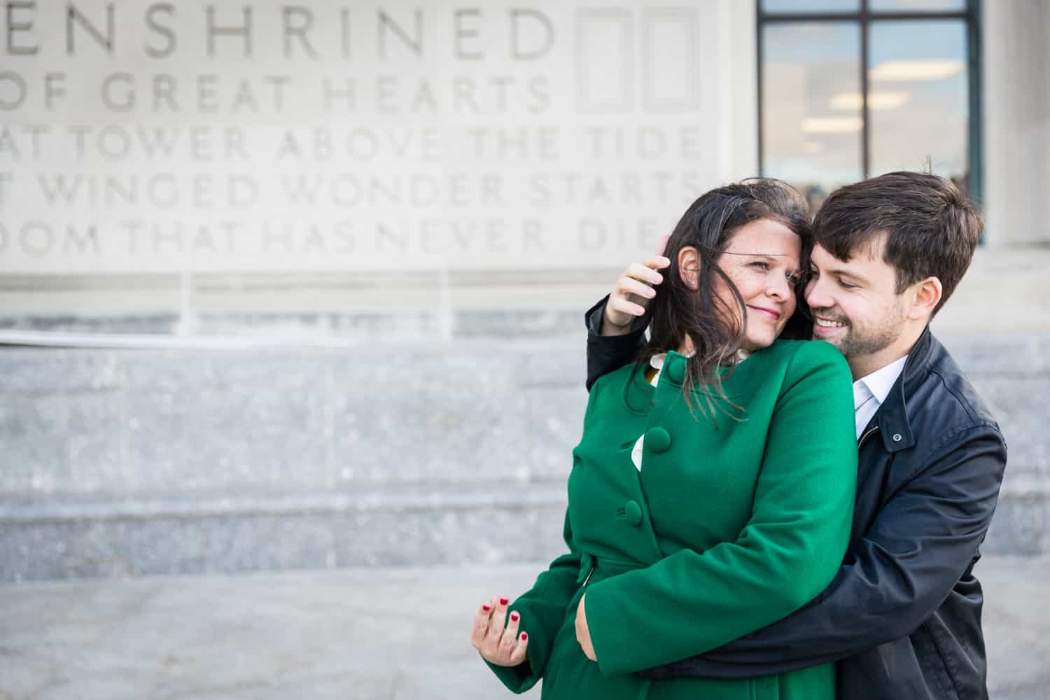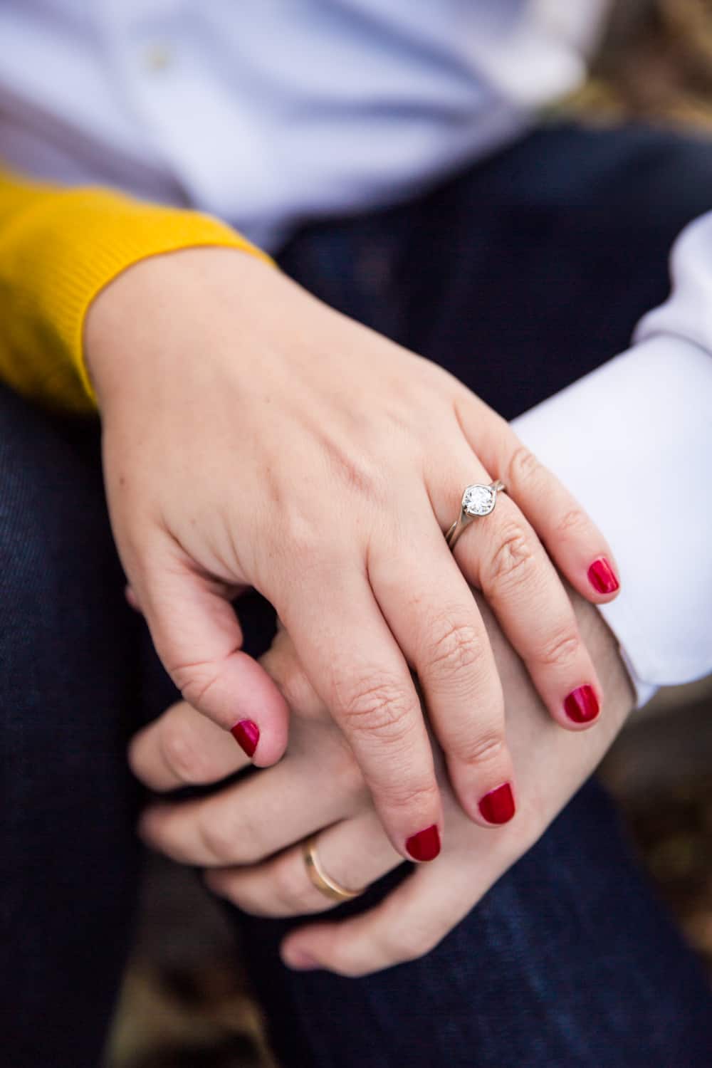 Miriam kept to one outfit, but thanks to the somewhat cool weather, she used her coat for a quick change of attire. This is a great tip for any of you looking to book an engagement shoot in the future. Changing clothes completely is time consuming, and there often isn’t a private space available. However, if you make a minimal change you can have maximum impact. Change your shoes or jewelry, or add (or remove) your outerwear for a whole different look.