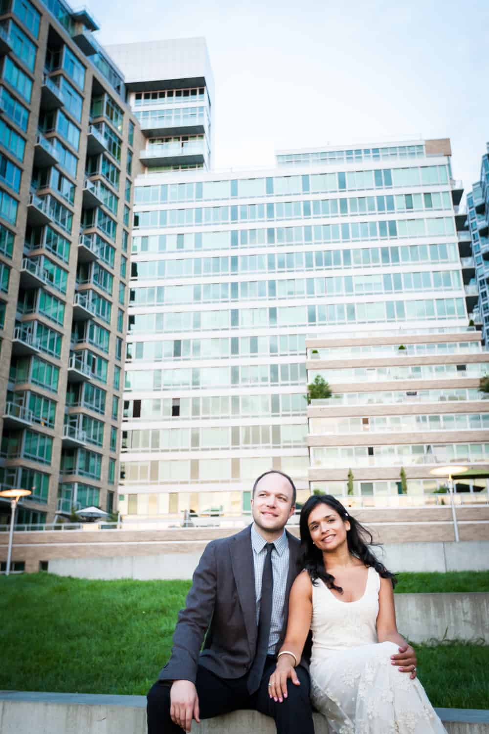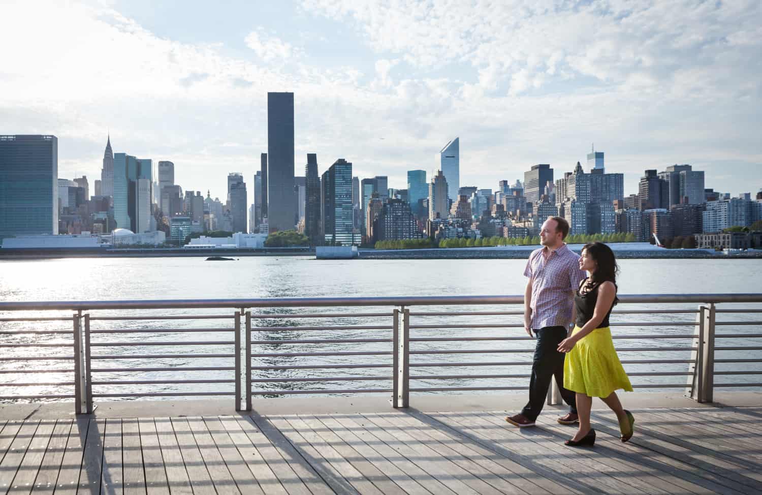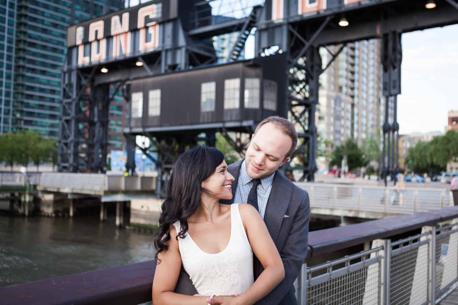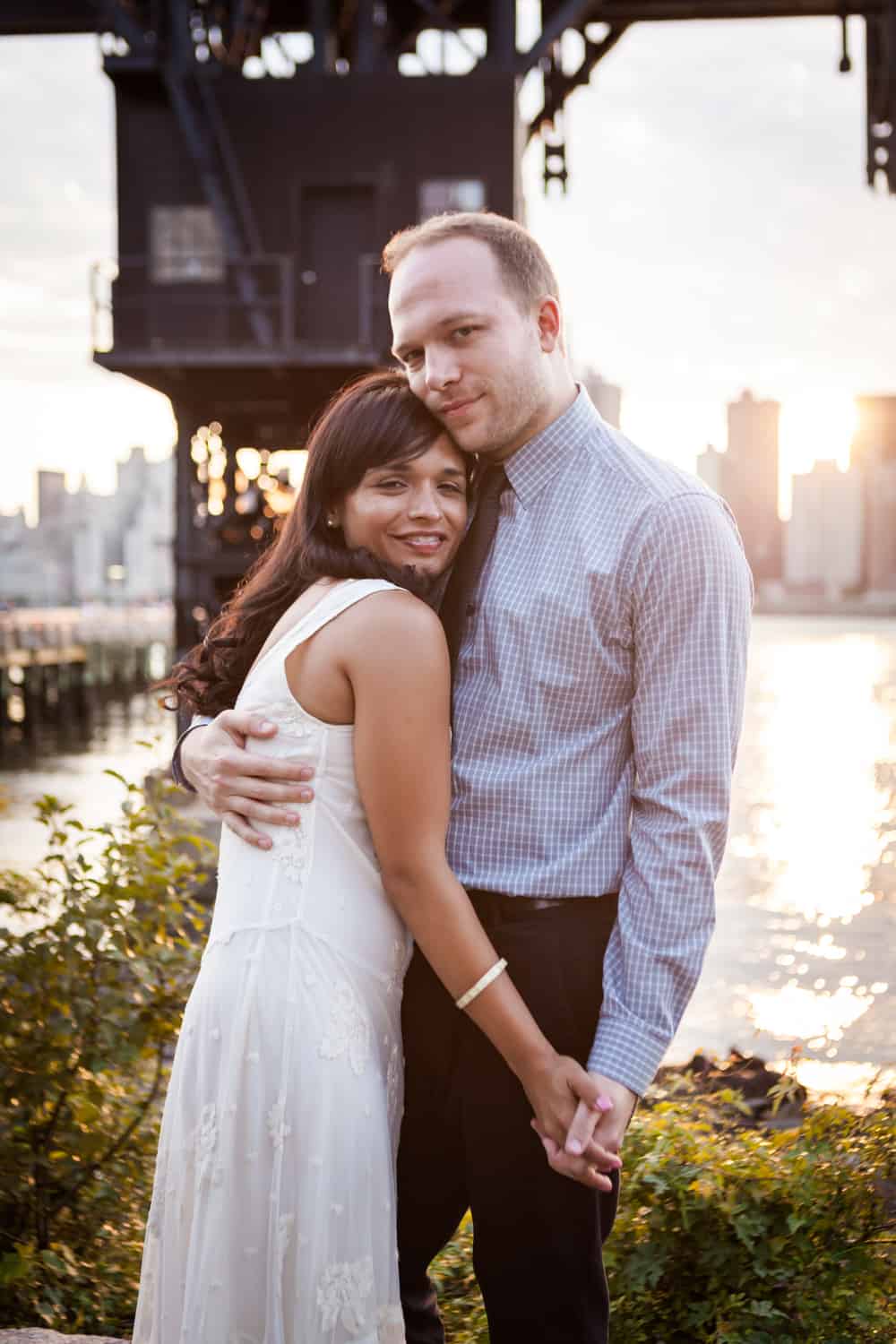 In addition to great weather for today’s photo shoot, Rupa and Ian also had the advantage of location on their side. Rupa and Ian live nearby to the park, so we were able to include an outfit change in the shoot. If you want to shoot at Gantry Plaza but don’t live nearby, there are public restrooms in which you can change.