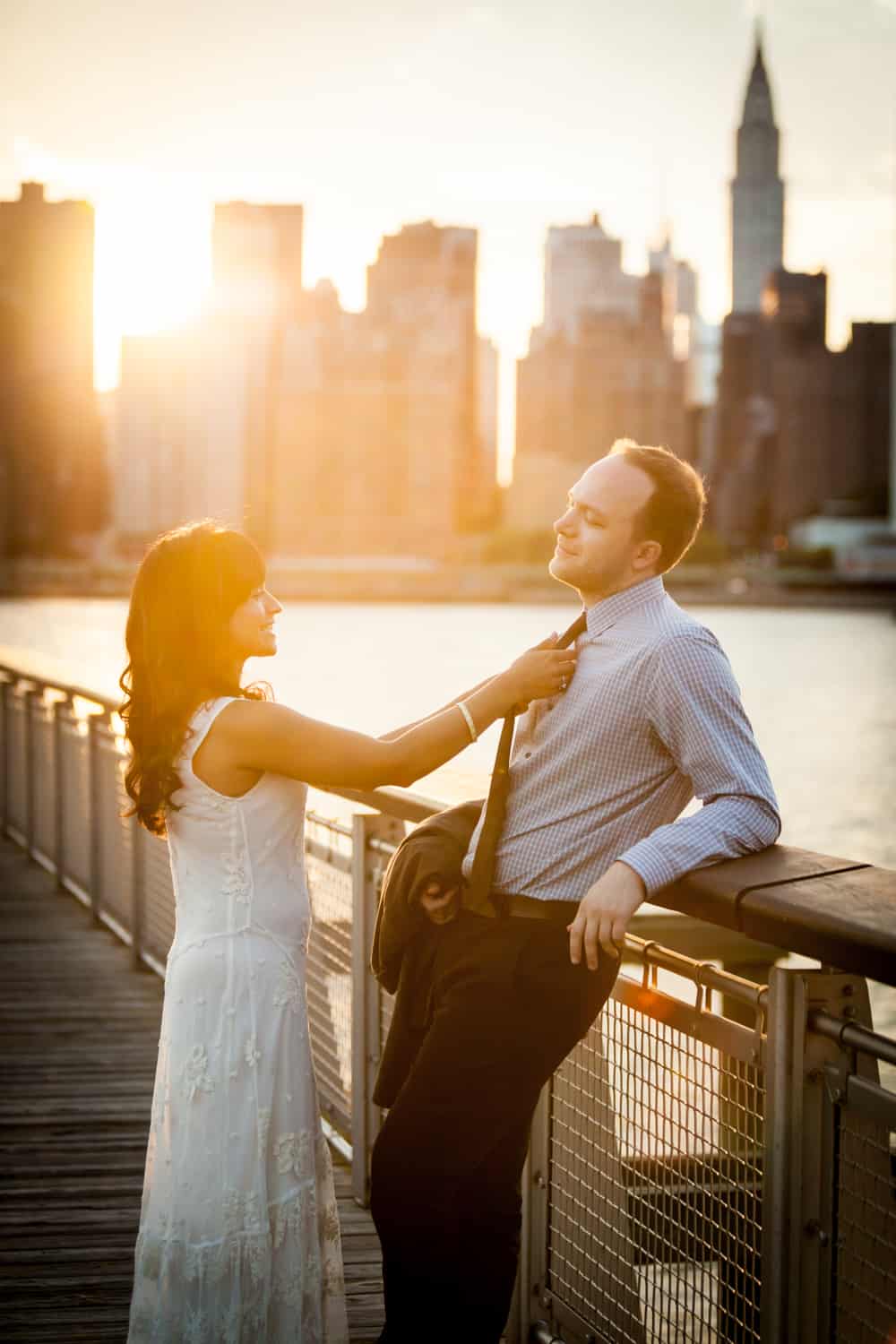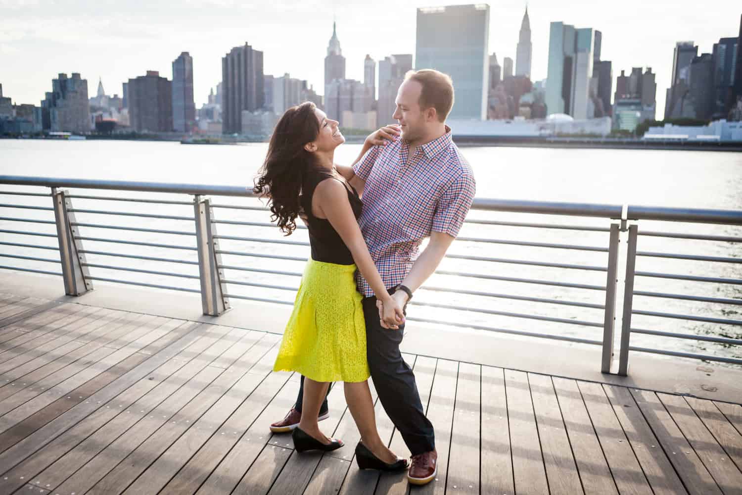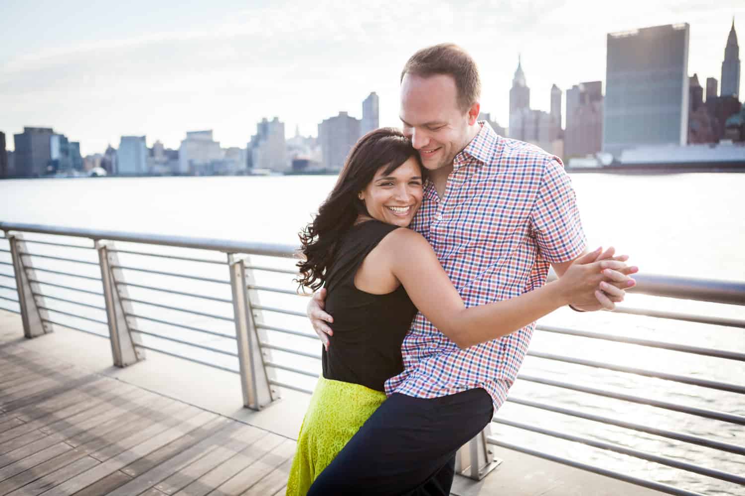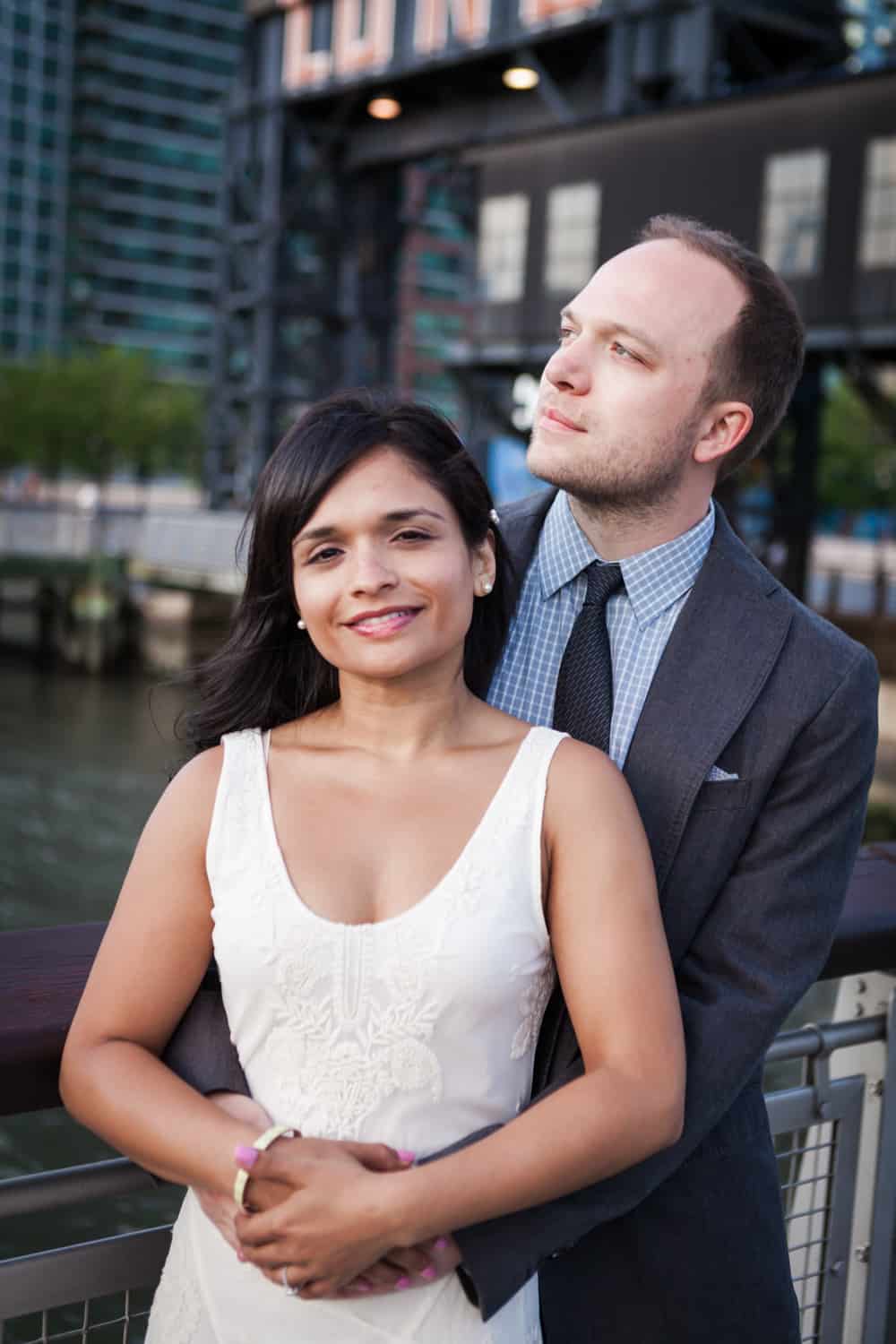 In addition to great weather for today’s photo shoot, Rupa and Ian also had the advantage of location on their side. Rupa and Ian live nearby to the park, so we were able to include an outfit change in the shoot. If you want to shoot at Gantry Plaza but don’t live nearby, there are public restrooms in which you can change.