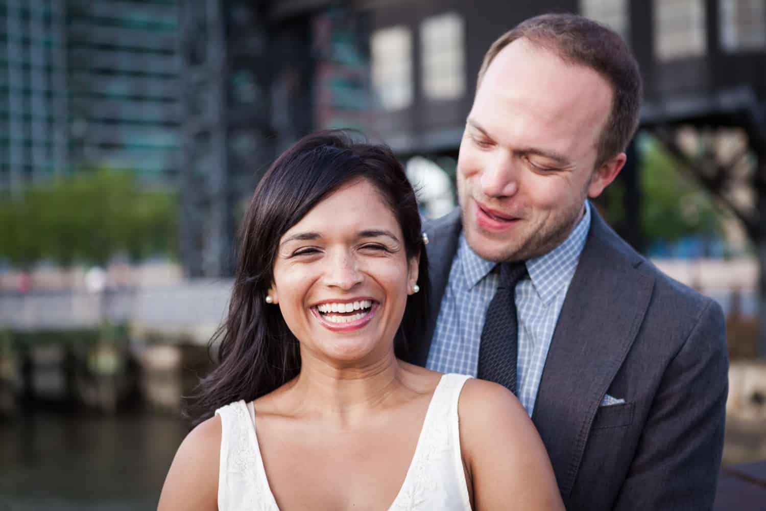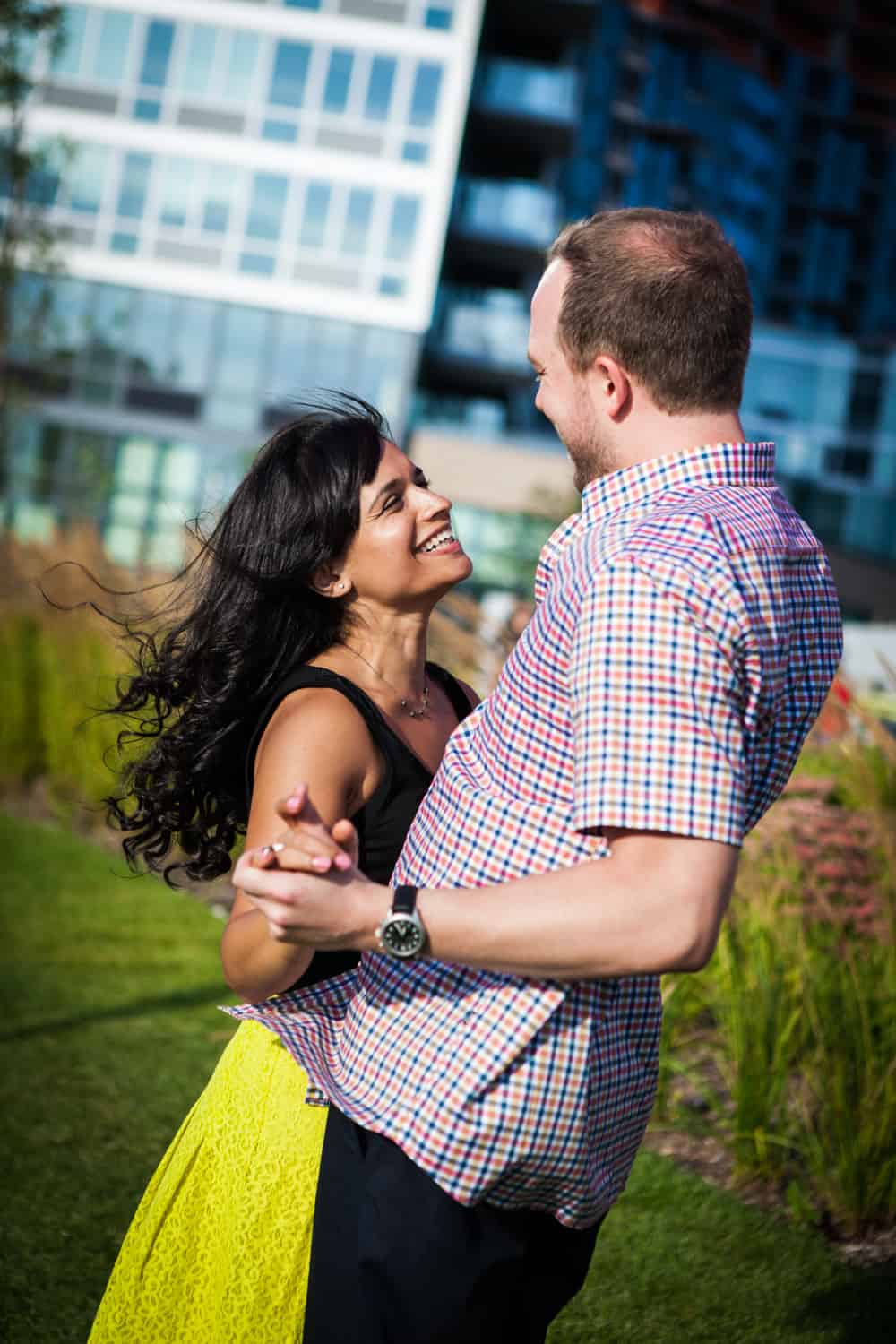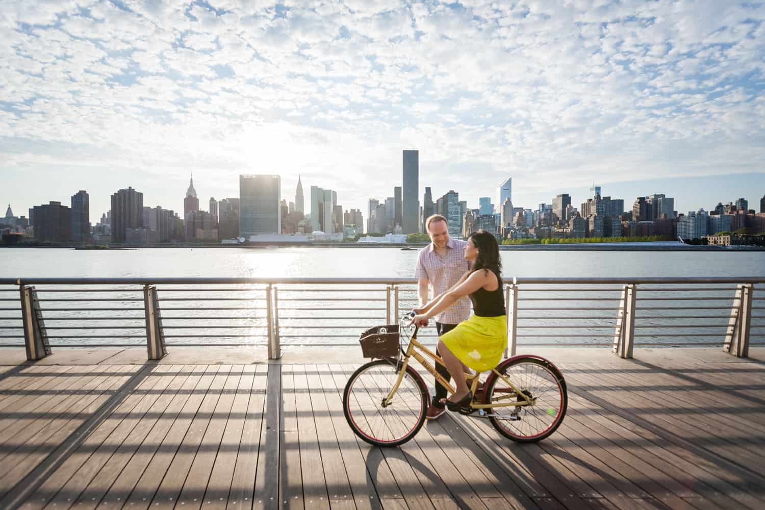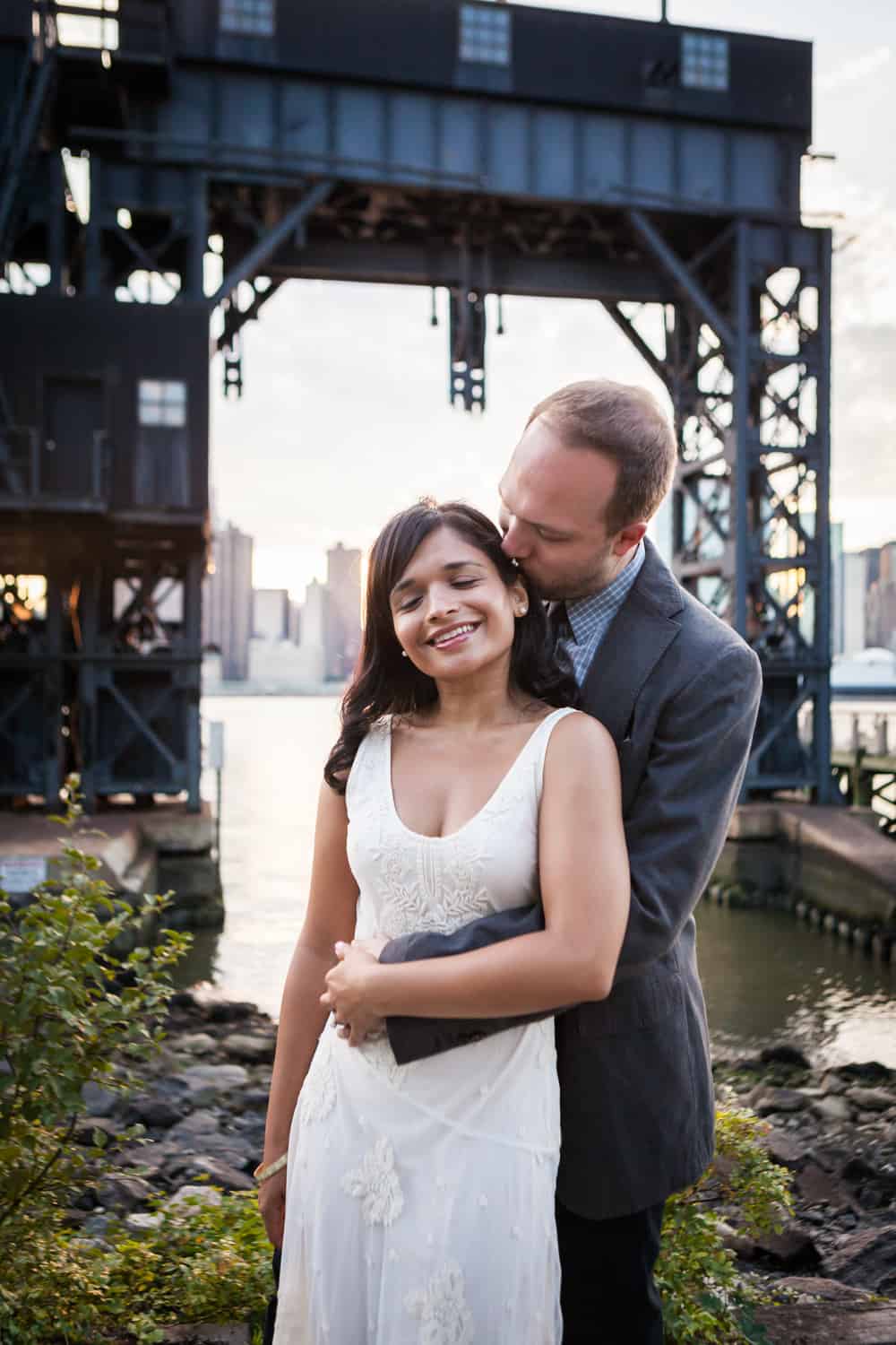 In addition to great weather for today’s photo shoot, Rupa and Ian also had the advantage of location on their side. Rupa and Ian live nearby to the park, so we were able to include an outfit change in the shoot. If you want to shoot at Gantry Plaza but don’t live nearby, there are public restrooms in which you can change.