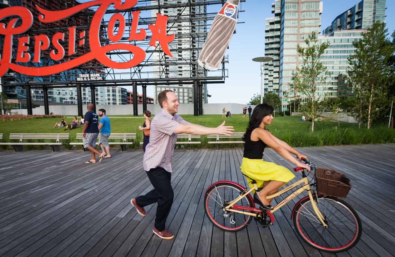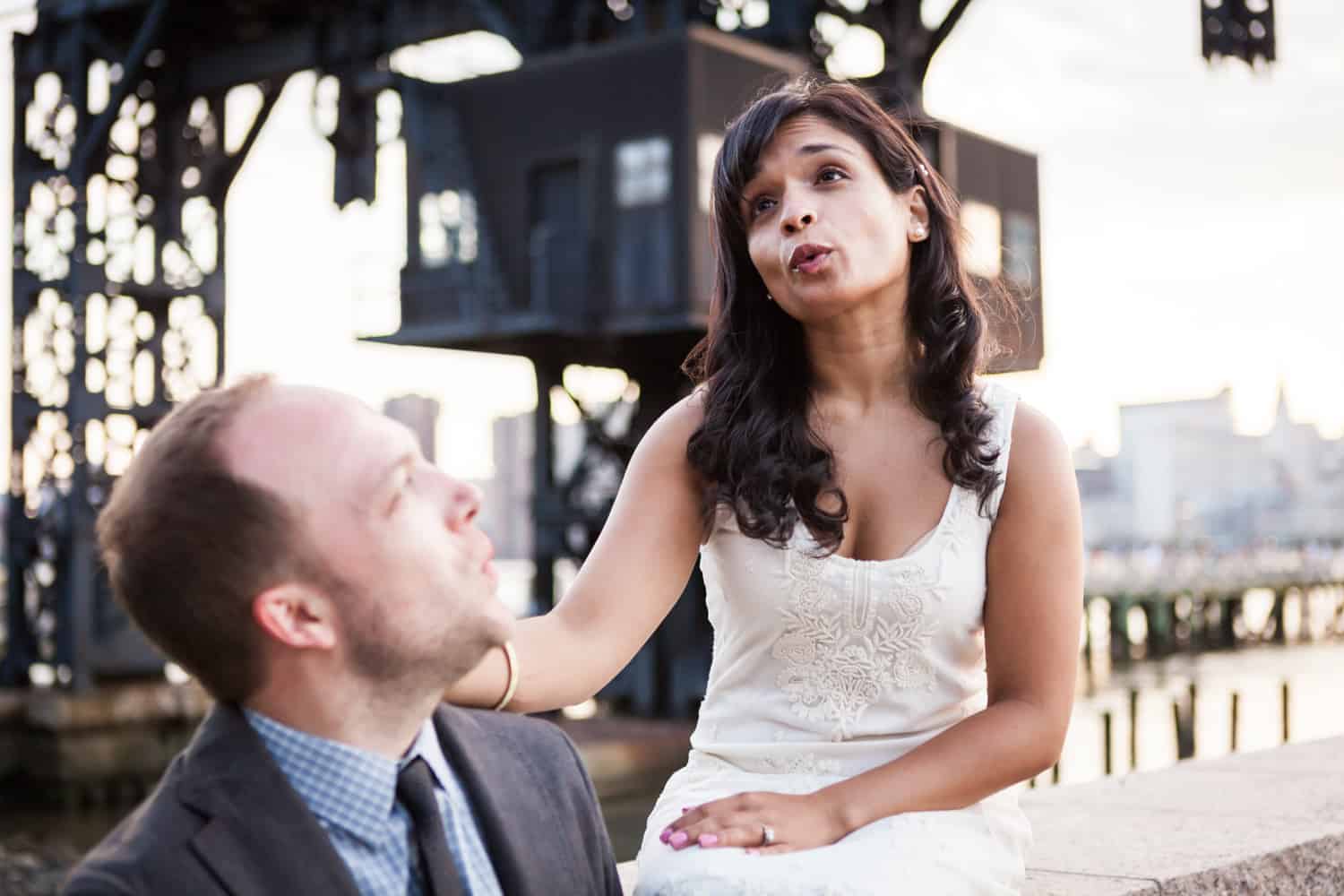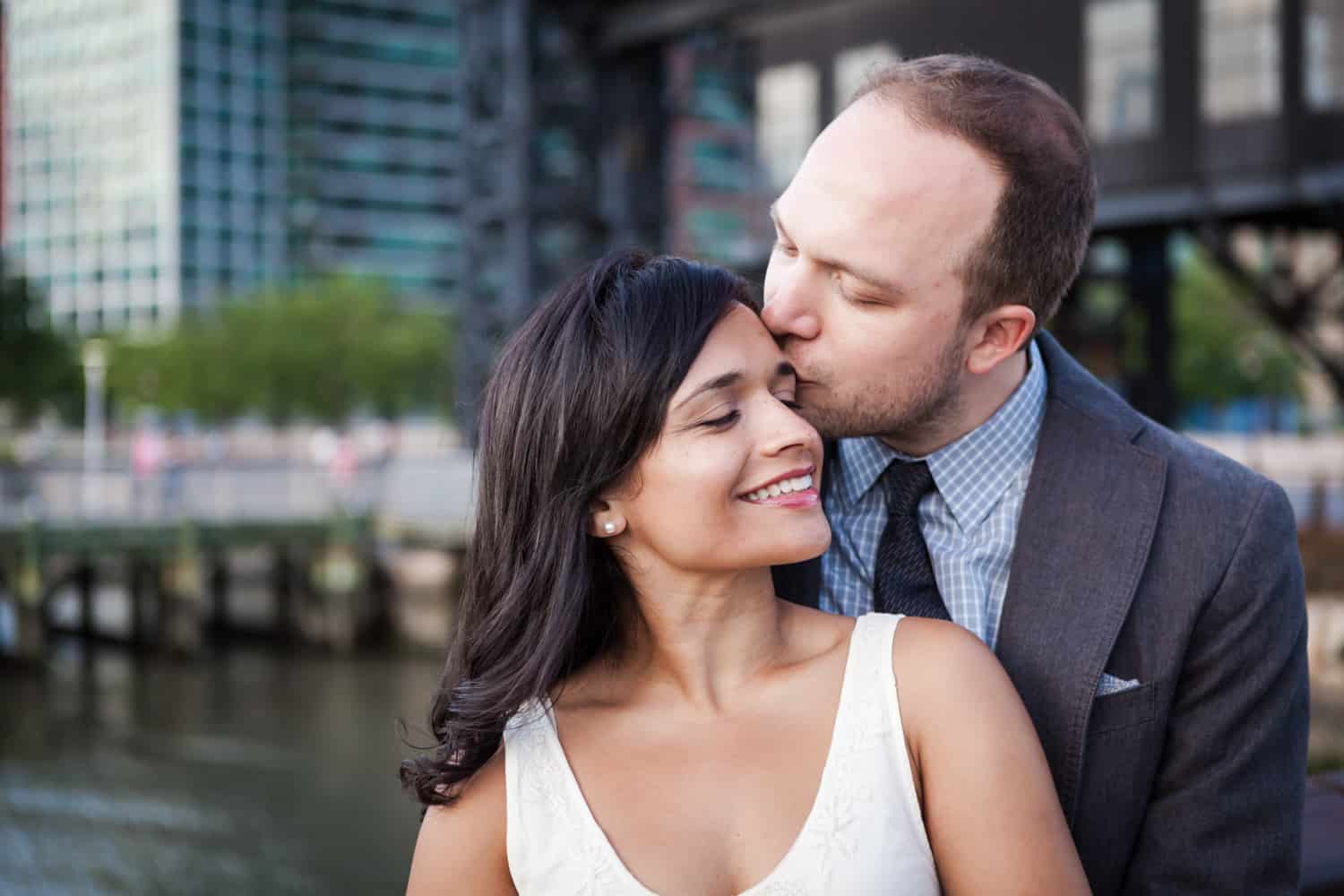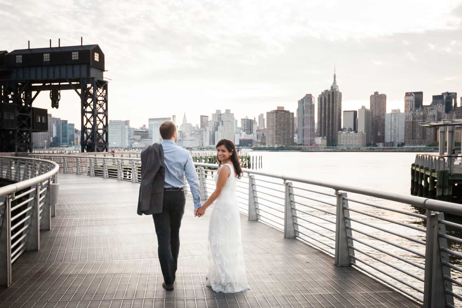 In addition to great weather for today’s photo shoot, Rupa and Ian also had the advantage of location on their side. Rupa and Ian live nearby to the park, so we were able to include an outfit change in the shoot. If you want to shoot at Gantry Plaza but don’t live nearby, there are public restrooms in which you can change.