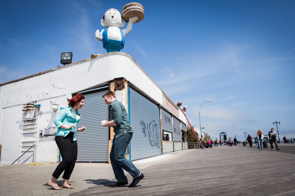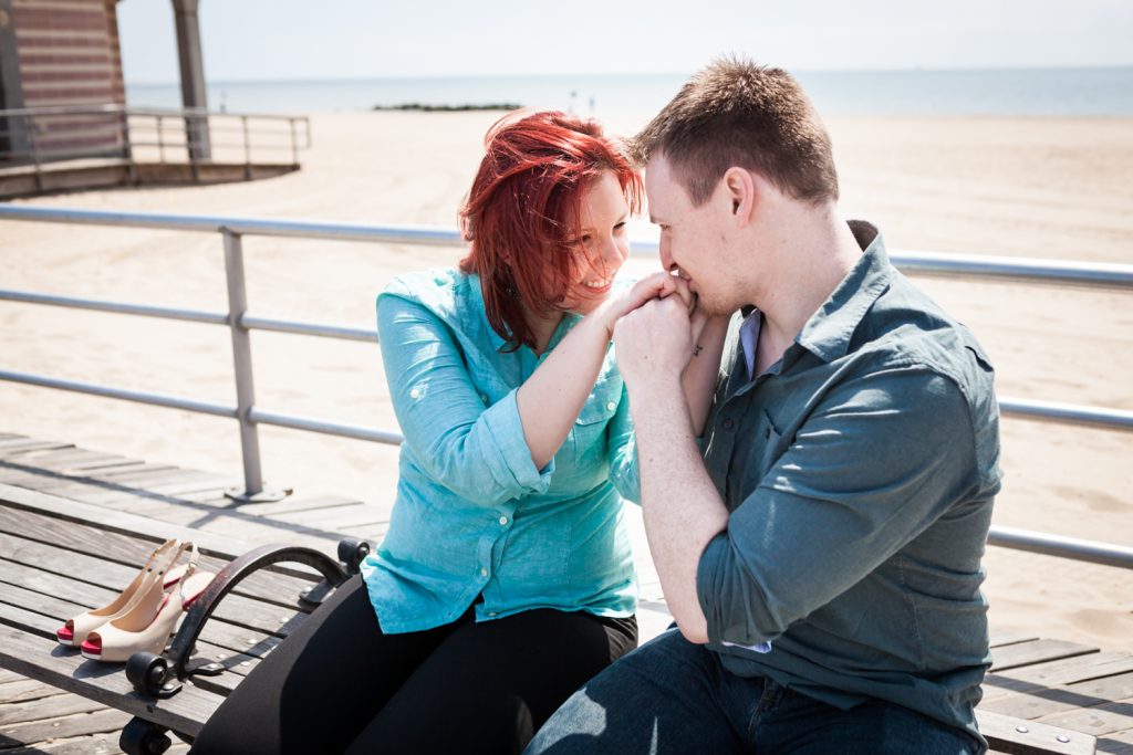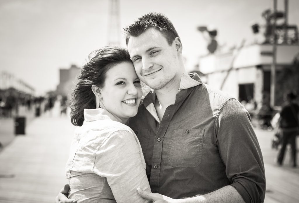 Here’s a few tips for anyone planning to take a few Coney Island engagement photos: the boardwalk is a great location for portrait shoots of all types. However, always keep in mind the crowd factor and schedule your shoot either early or late in the day. Also, plan to get a bit wet and sandy on the beach, so plan your outfit accordingly! For a more extensive list of Coney Island engagement photo tips, check out this article. Enjoy the photos!