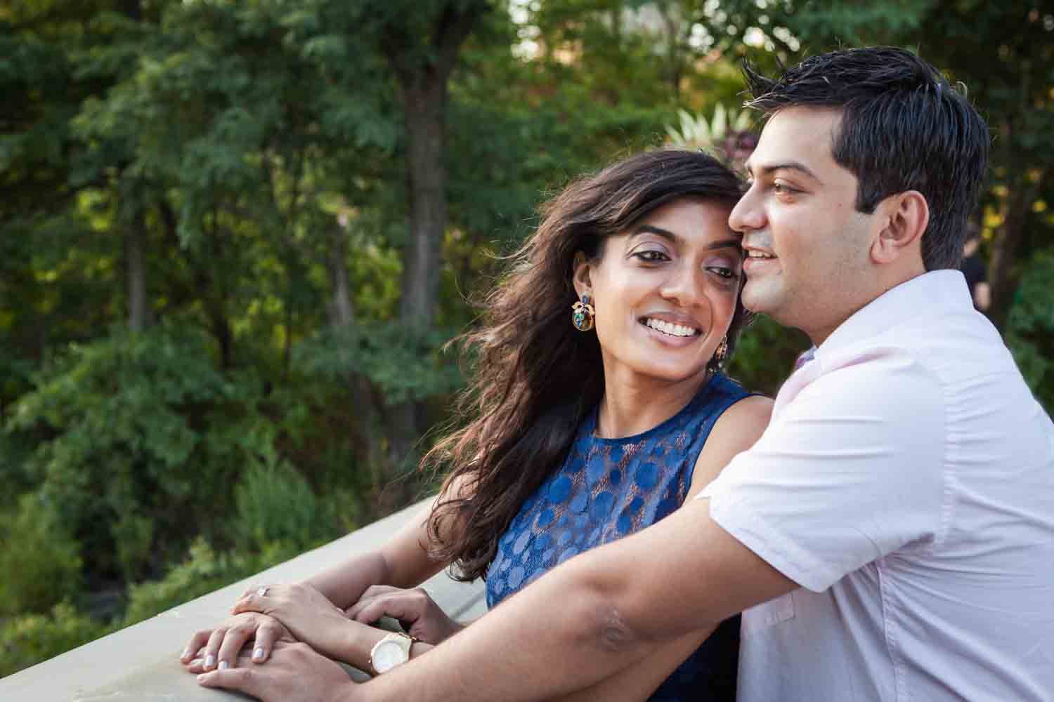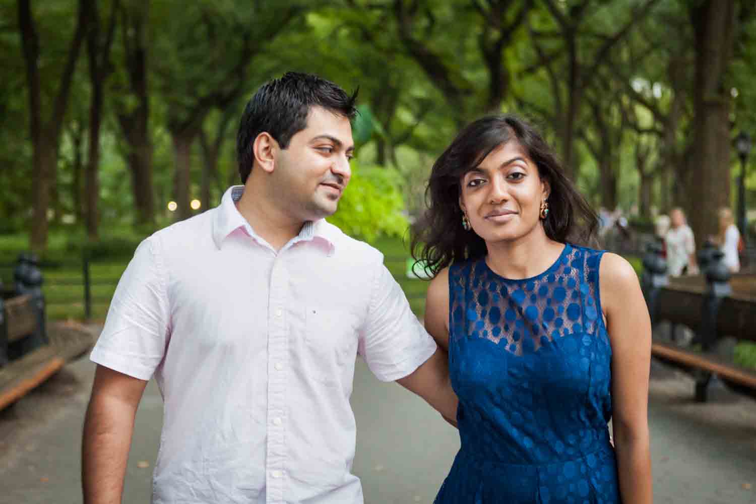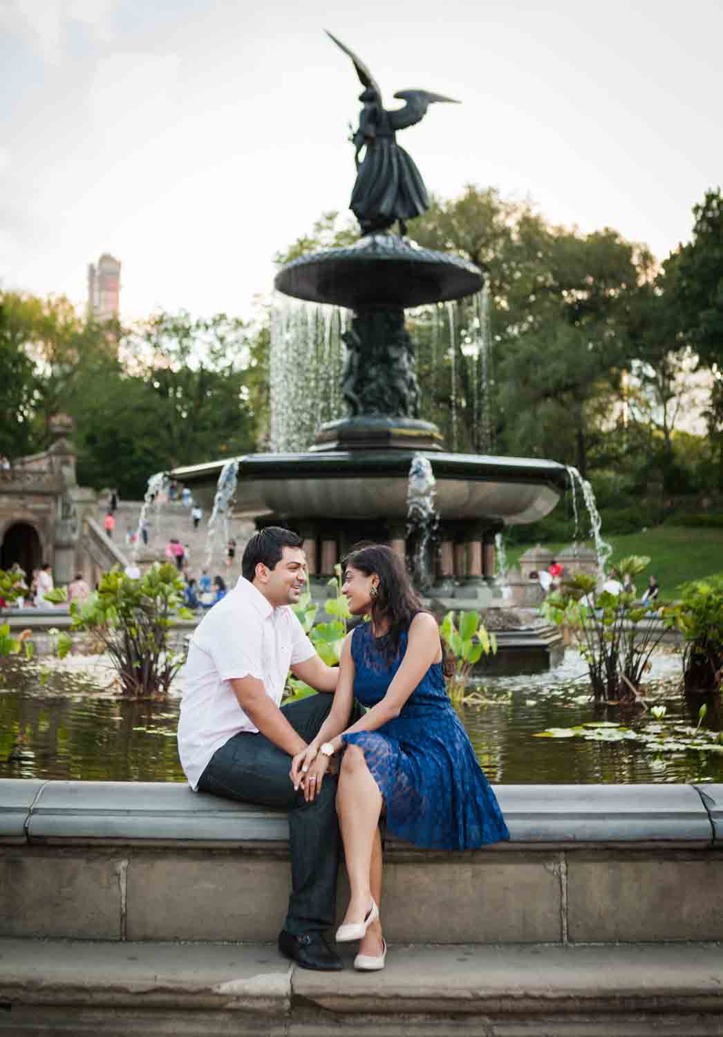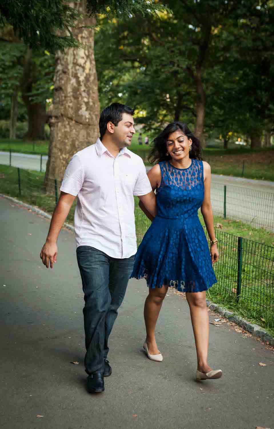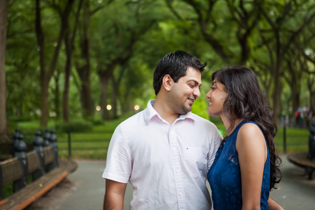 Urvi and Chinmay knew they wanted to take in all that the park has to offer, and that is exactly what we did during the Central Park engagement shoot. We started the day at Strawberry Fields, near the 72nd Street west side entrance. From there we moved to Bow Bridge and took our time walking past the lake. Bow Bridge was predictably crowded, but with a little patience, I was able to make it seem like we had the entire park to ourselves.