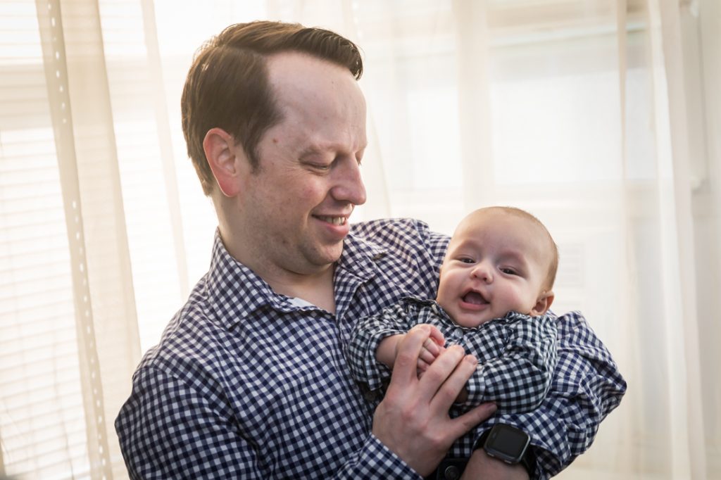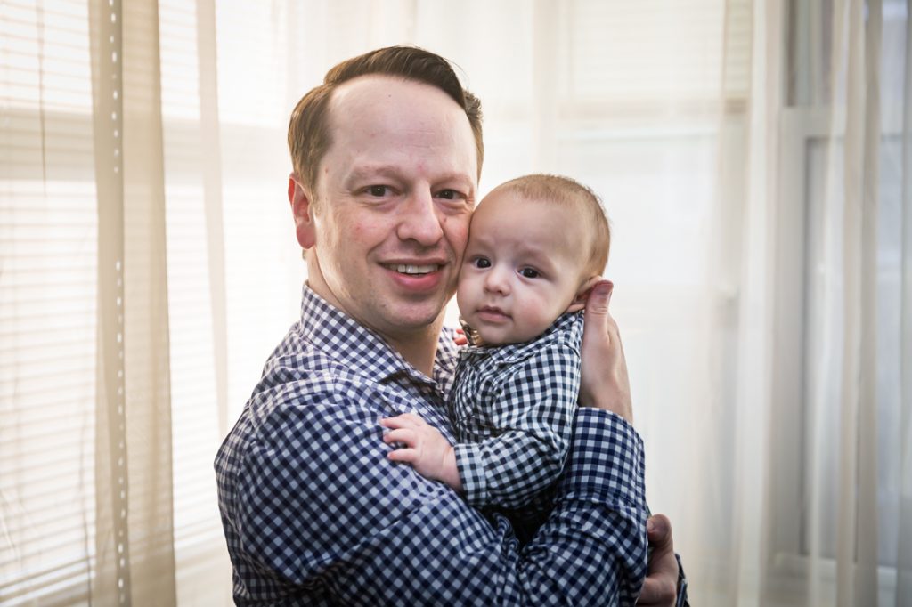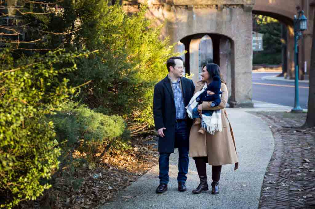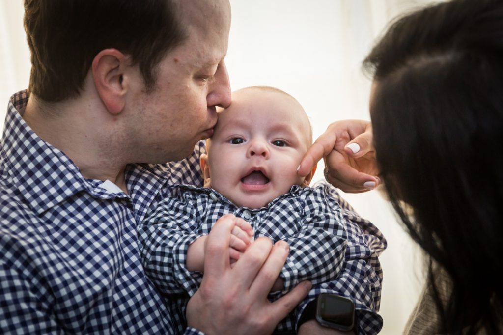 As such, it was time to get the band back together again, so to speak, and take a family photo in their Forest Hills neighborhood. And while the sun was out and the quaint, cobblestone streets looked great, it was 30 degrees outside. Needless to say, the little one lasted about 30 minutes in the cold before we had to bring this Forest Hills baby portrait session back indoors.