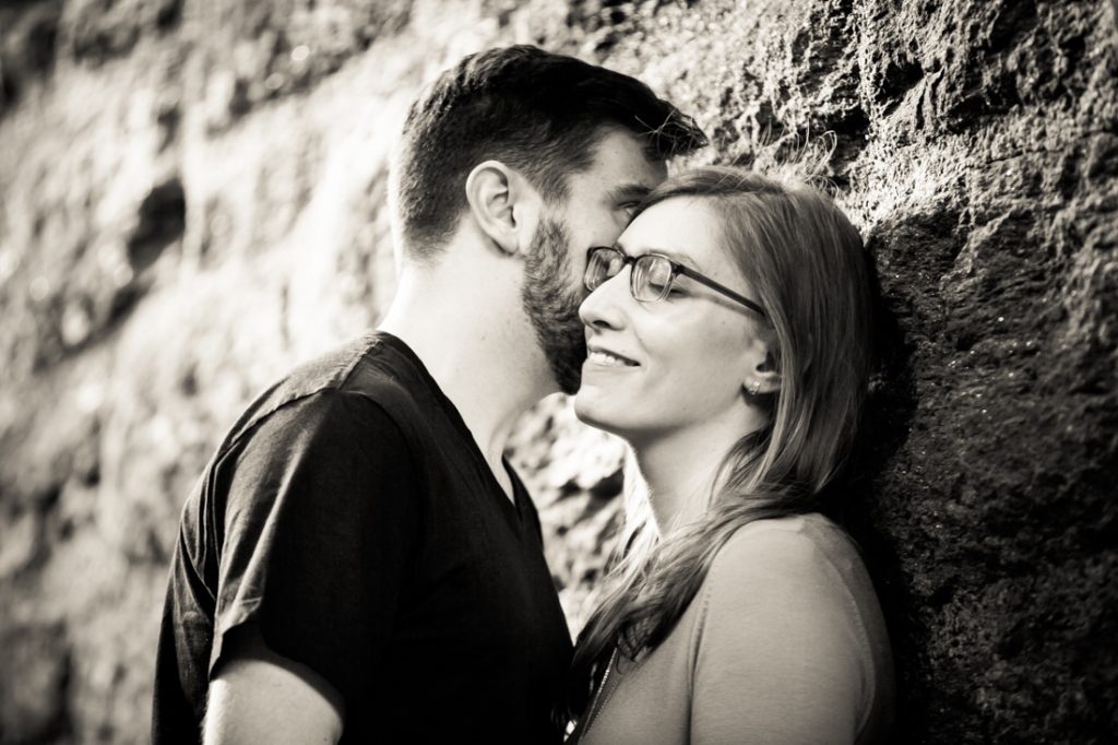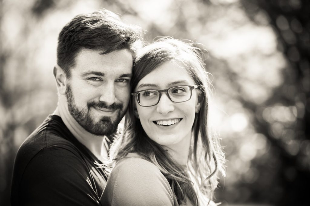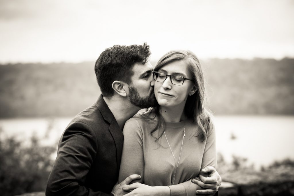 The couple passed this ‘test’ with flying colors! We started the engagement session as all great sessions do — by including the family furbaby in the photo shoot. Sneakers is Emily and Ben’s seven-year-old cat. And while Sneakers was not pleased at having her weekend disturbed by my camera, she did sit still long enough for a few photos. It helps that I brought along some salmon-flavored cat treats to bribe her into sitting pretty.