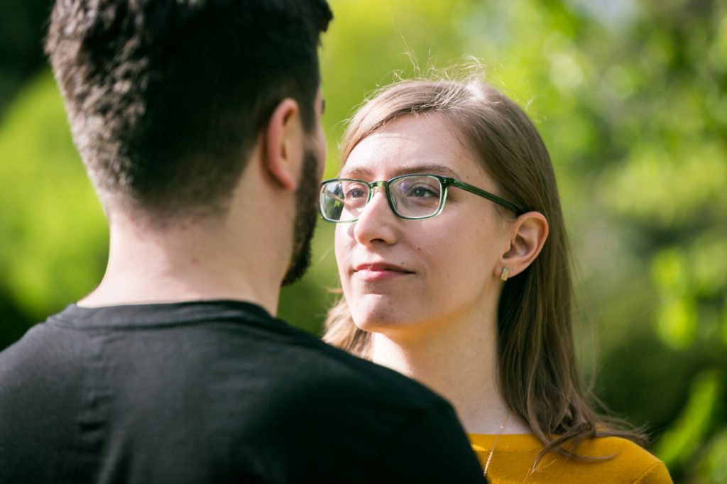 I think most of my clients can relate to Emily and Ben. They aren’t into posed photos, and are not interested in traditional, mushy demonstrations of affection. Rather, Emily and Ben are a fun loving couple with a few kisses here or there, but much more at home trying off their karate moves or high-fiving for the camera. (Reminds me a bit of Nina and Thom’s engagement session at the Brooklyn Botanic Garden, no?) Originally, the couple had not even scheduled an engagement shoot. But with their wedding day drawing near (on July 22), Emily and Ben both thought it might be a good idea to do an engagement shoot as a test run for their bride and groom portraits.