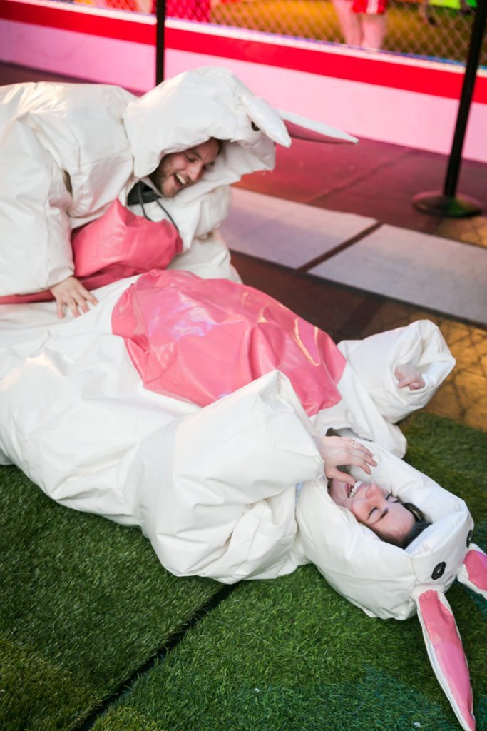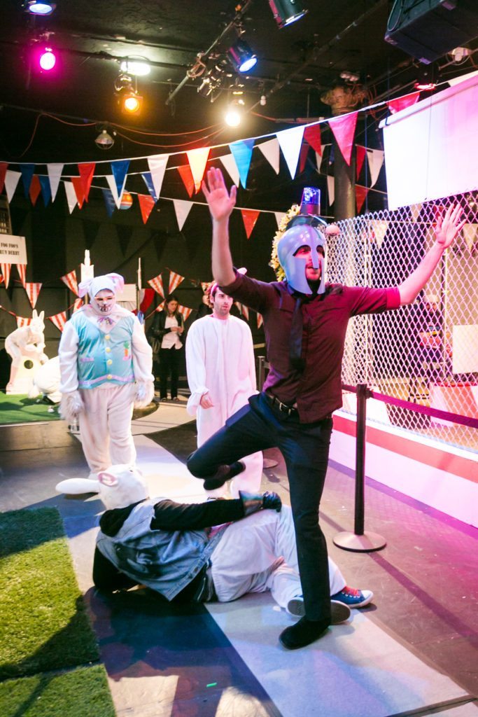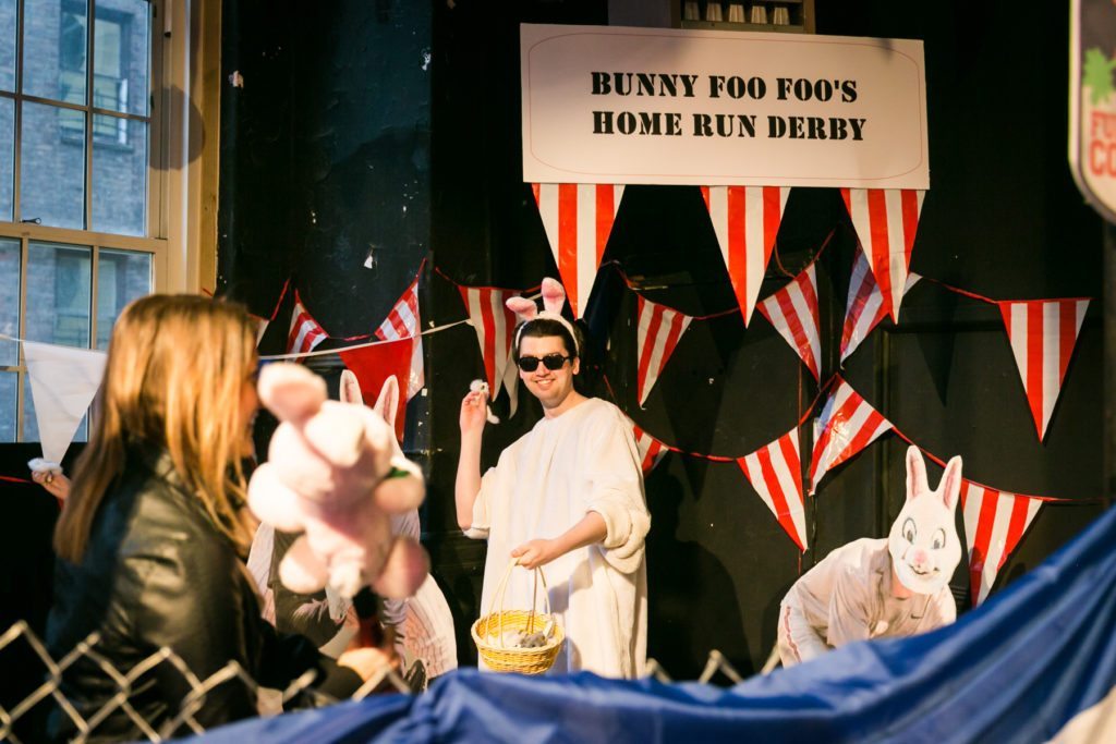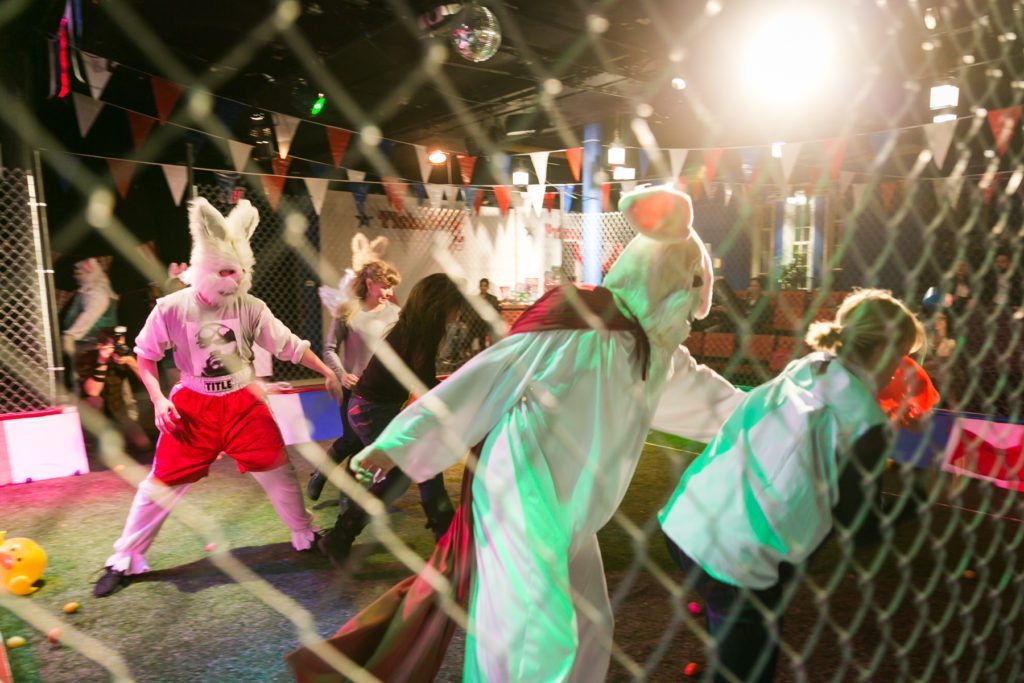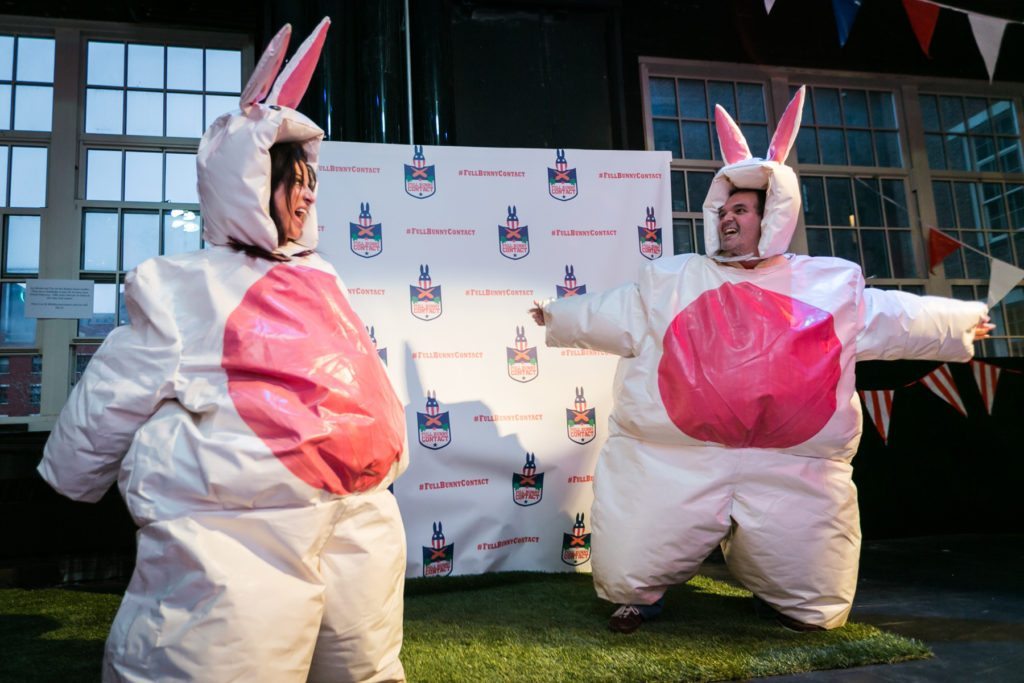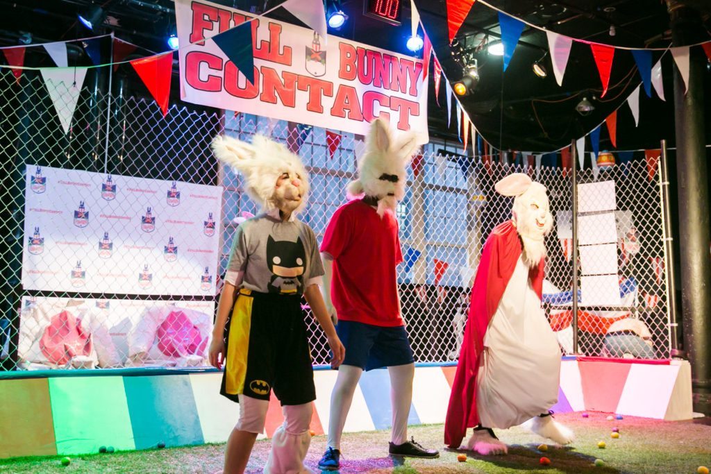 Looking for a warped way to celebrate Easter? Well, if you’re in New York City then there is no better way than attending Full Bunny Contact. Think of it as all of your Easter nightmares combined with the Olympics. Interested in battling it out in a giant bunny sumo suit? Check. How about bopping a stuffed mouse on the head with a bunny bat? Check. Best of all, get the chance to climb into the ring with four scary bunnies who are trying to prevent you from gathering Easter eggs. Pure ridiculousness, the event is best experienced with plenty of alcohol but it is absolutely fun. (Did I mention the full bar?) The event runs through Sunday at the The Clemente Soto Vélez Cultural & Educational Center in the Lower East Side. I’ll be there again on Saturday to photograph the ‘Temper Tantrum Easter Candy Contest’ (????), so stay tuned for more photos later. Seriously, if you thought Easter was all about bonnets and decorating eggs, think again. Easter done so wrong, it must be right.