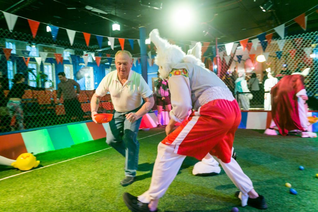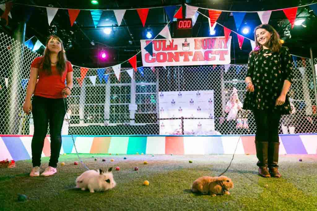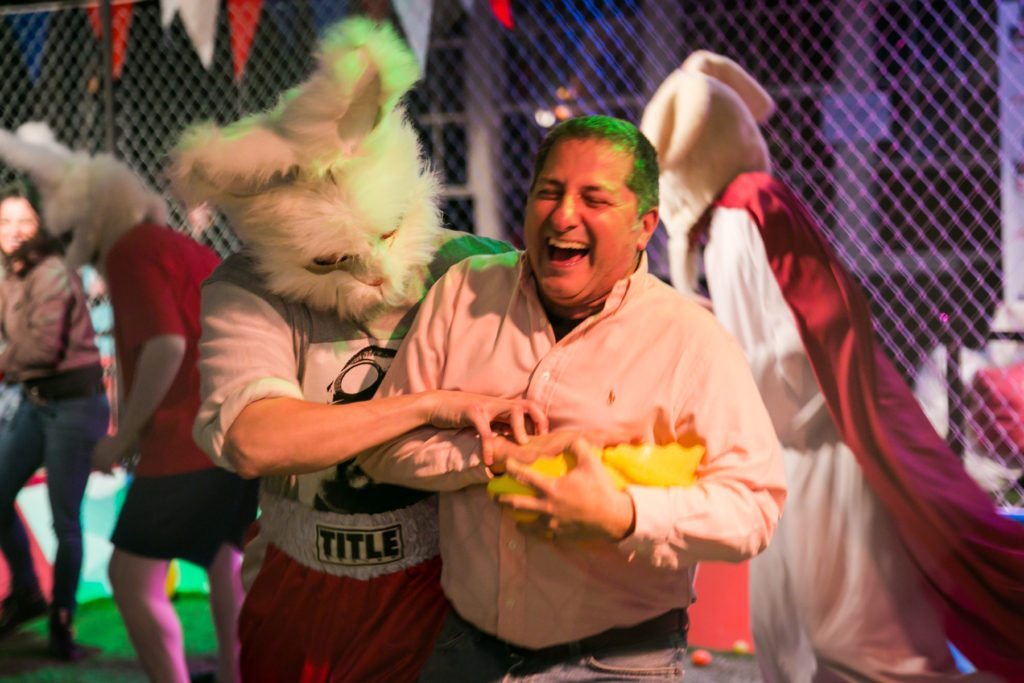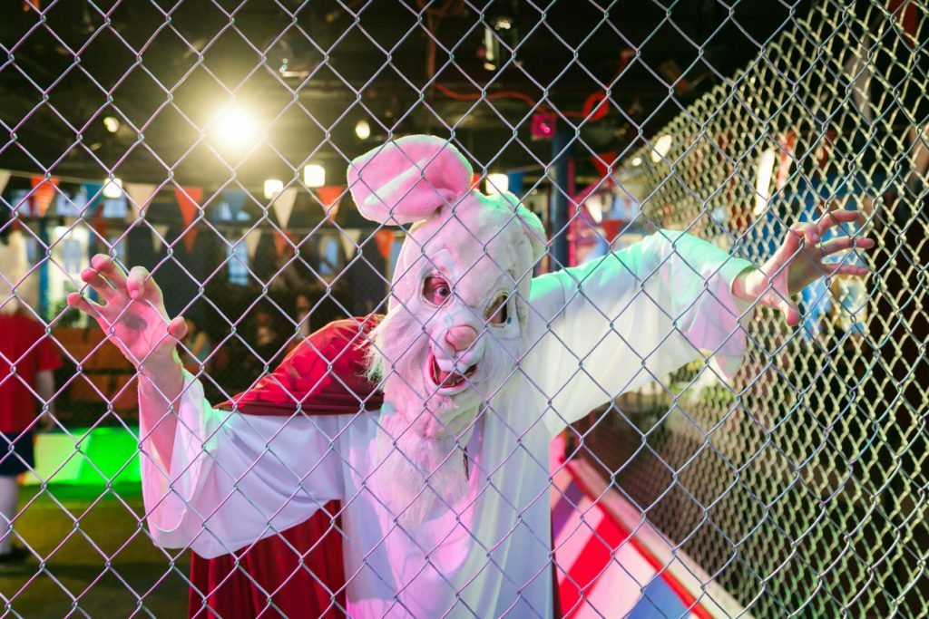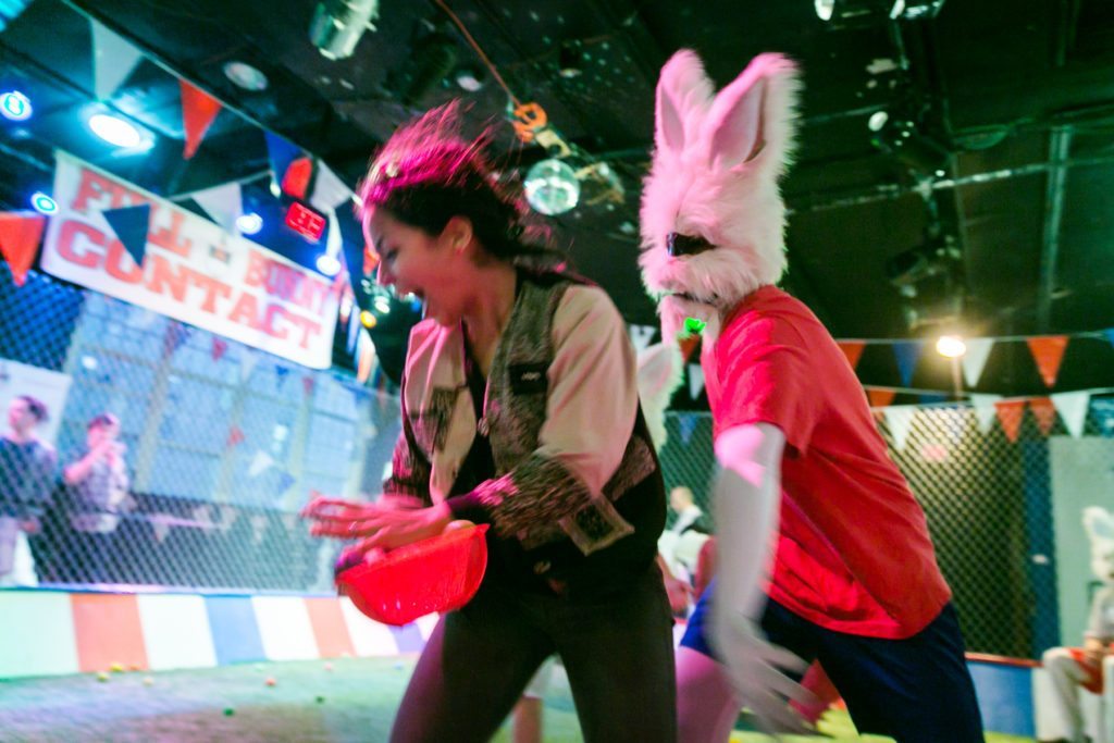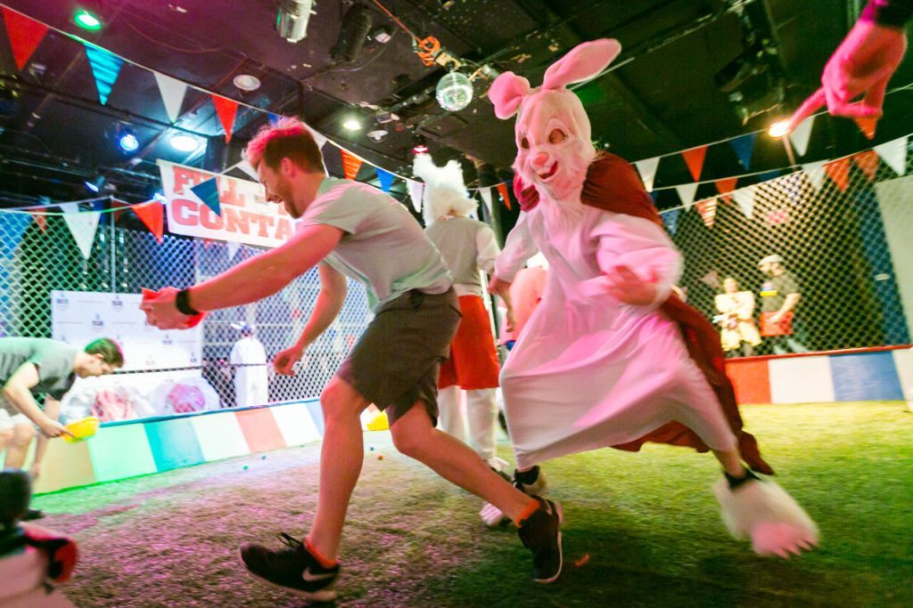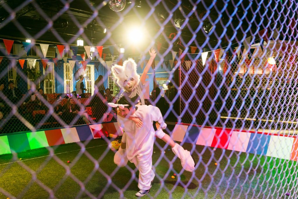 Looking for a warped way to celebrate Easter? Well, if you’re in New York City then there is no better way than attending Full Bunny Contact. Think of it as all of your Easter nightmares combined with the Olympics. Interested in battling it out in a giant bunny sumo suit? Check. How about bopping a stuffed mouse on the head with a bunny bat? Check. Best of all, get the chance to climb into the ring with four scary bunnies who are trying to prevent you from gathering Easter eggs. Pure ridiculousness, the event is best experienced with plenty of alcohol but it is absolutely fun. (Did I mention the full bar?) The event runs through Sunday at the The Clemente Soto Vélez Cultural & Educational Center in the Lower East Side. I’ll be there again on Saturday to photograph the ‘Temper Tantrum Easter Candy Contest’ (????), so stay tuned for more photos later. Seriously, if you thought Easter was all about bonnets and decorating eggs, think again. Easter done so wrong, it must be right.